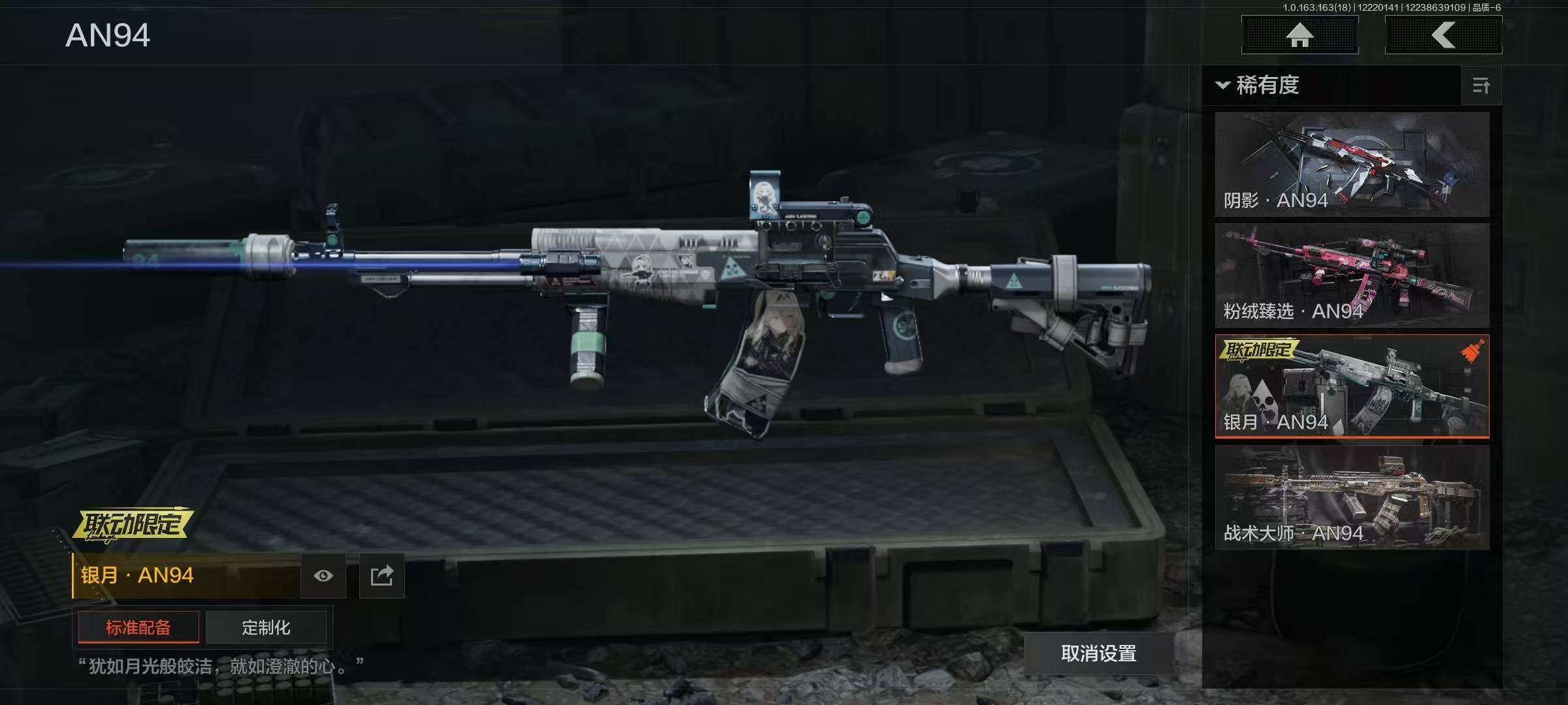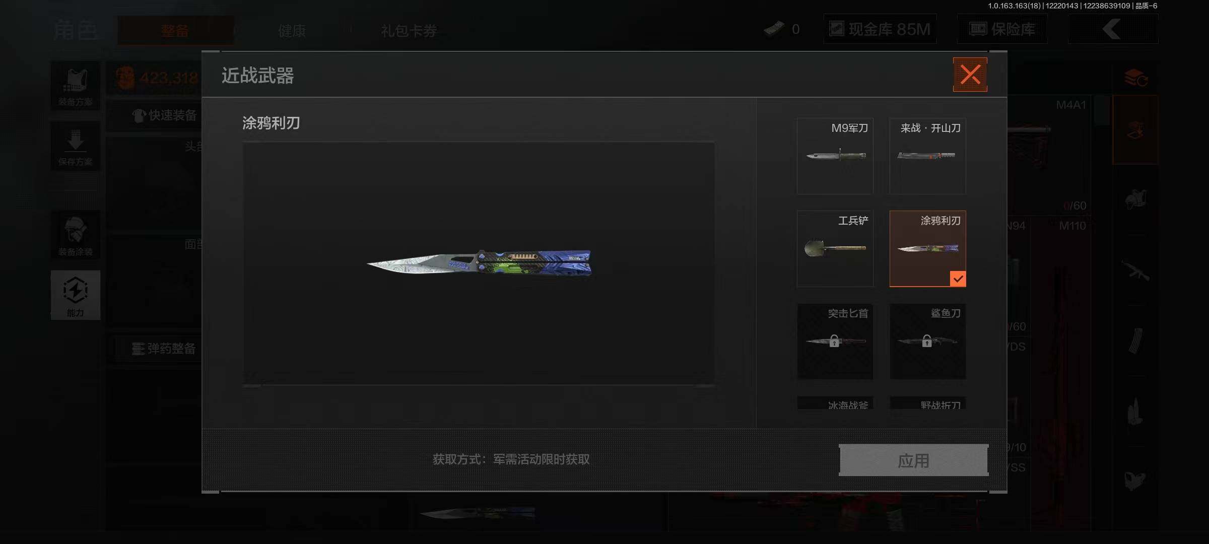 【AQZG748】等级:30/段位:大师/仓库价值(百万):120/柯恩币:85331599/工兵铲/涂鸦利刃/来战开山刀/脉冲马克西姆/告丧夜曲AUG/告丧夜曲AR57/战术大师AEK/银月AN94/战术大师AN94/旧王圣谕QBZ191/利齿风暴MPX