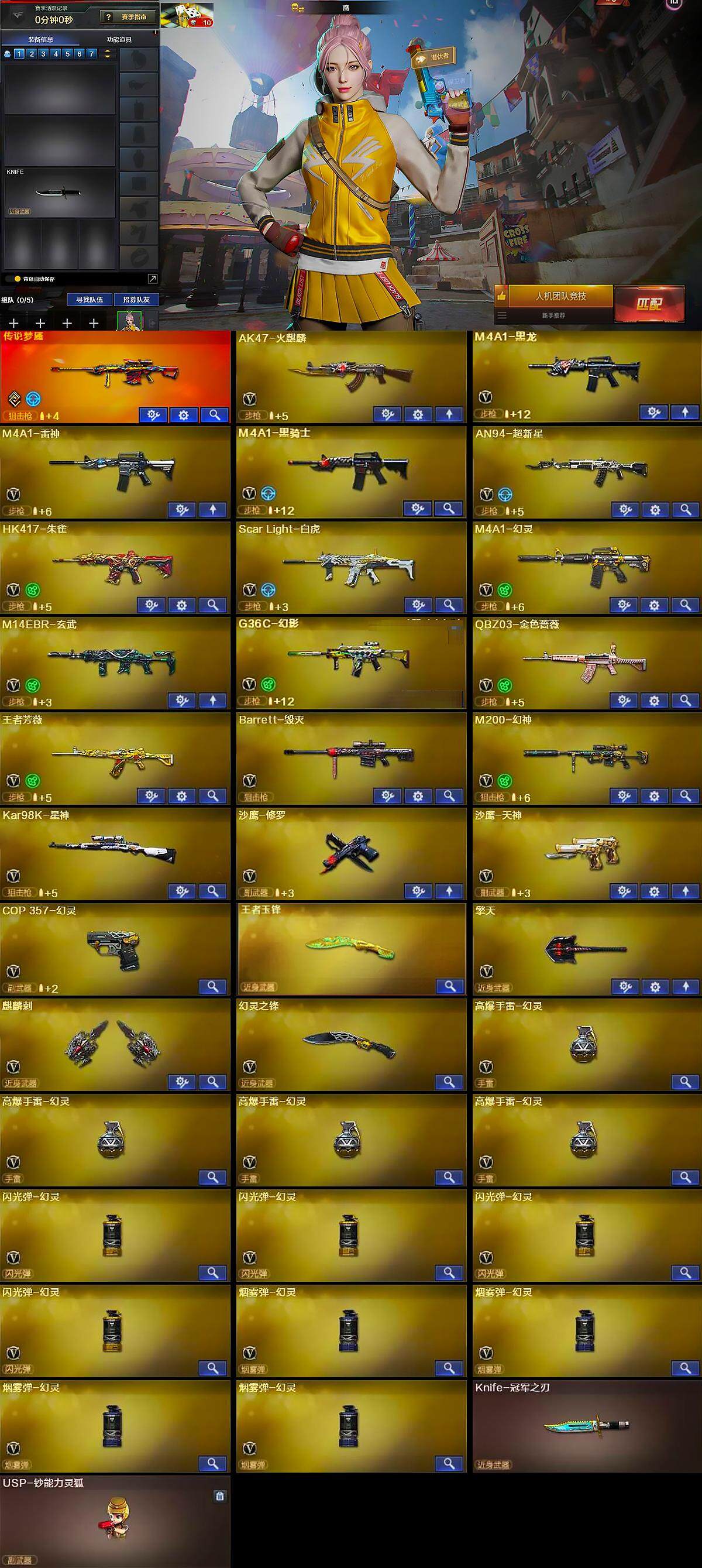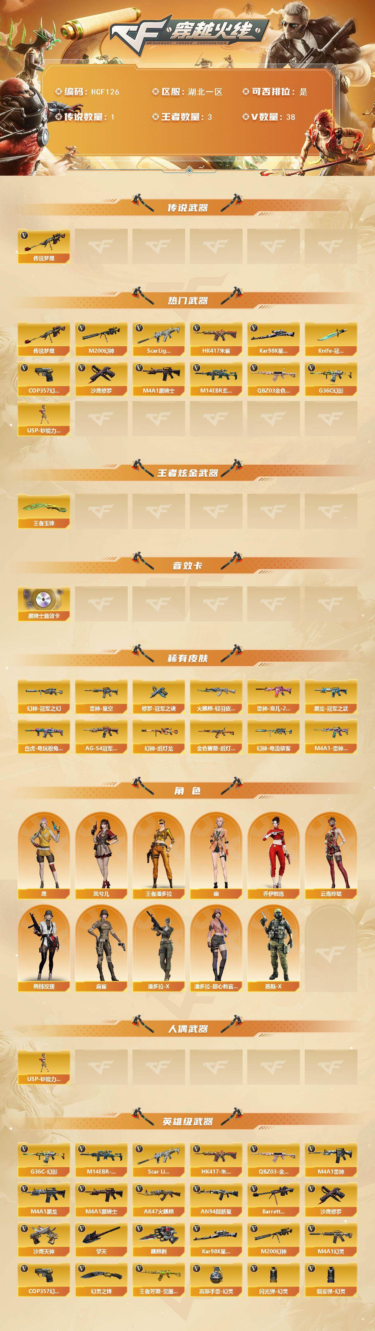 湖北一区-38V-3王者【豹子靓号】传说梦魇 M200-幻神 王者玉锋 G36C-幻影,QBZ03-金色蔷薇,M14EBR-玄武,Scar Light-白虎,HK417-朱雀,,Kar98K-星神,M4A1-黑骑士,USP-钞能力灵狐,COP 357-幻灵,沙鹰-修罗,Knife-冠军之刃