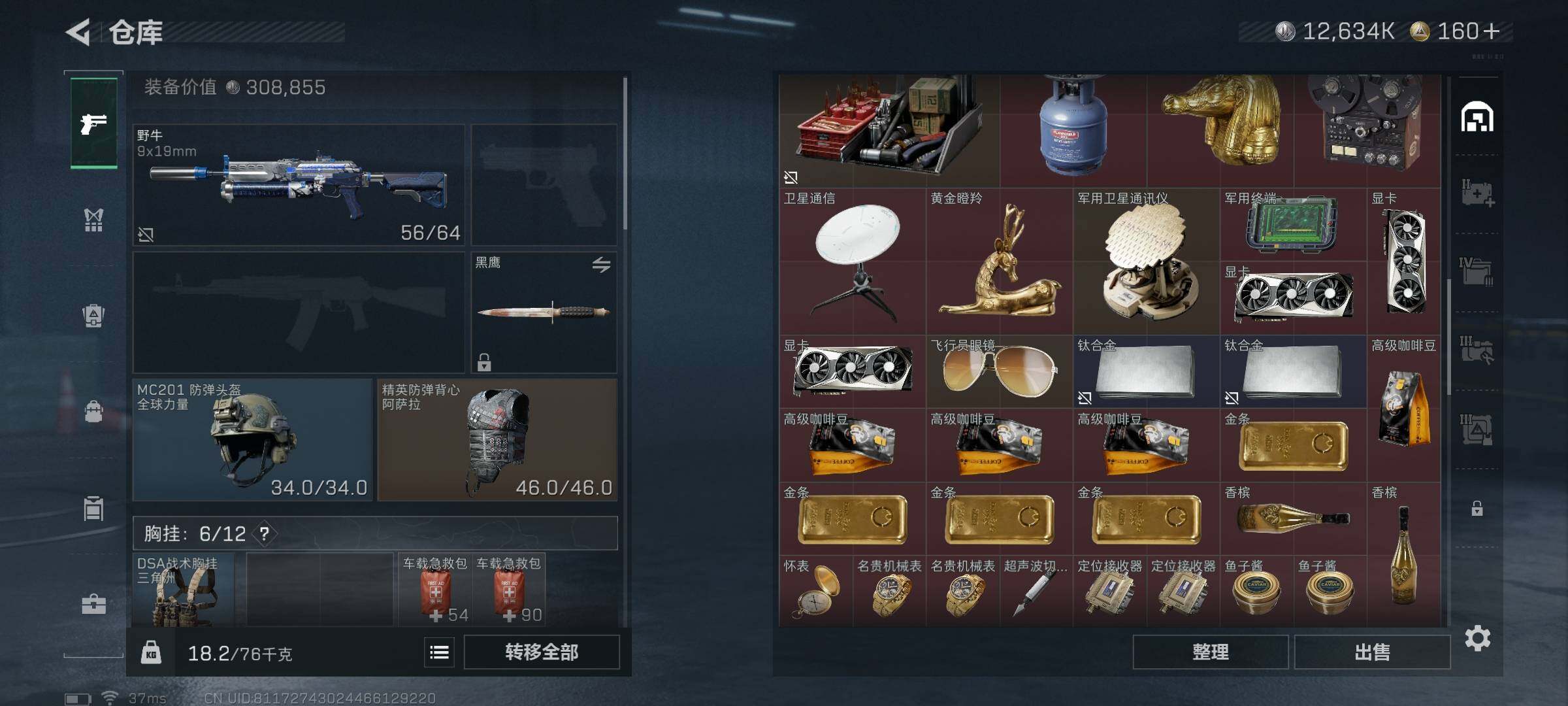 总资产(M):124M/哈夫币(K):12634K/全面战场等级:1_段位:无段位/烽火地带等级:60_段位:青铜/