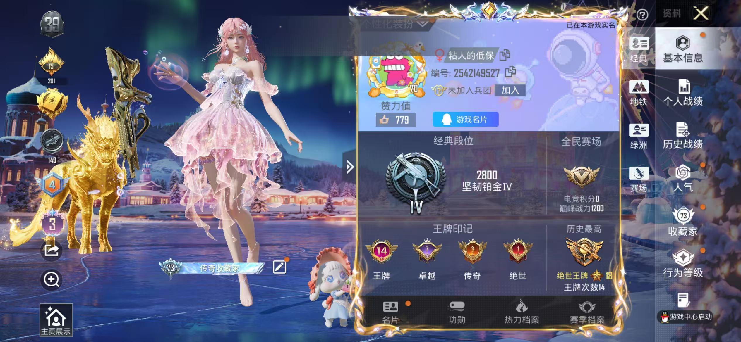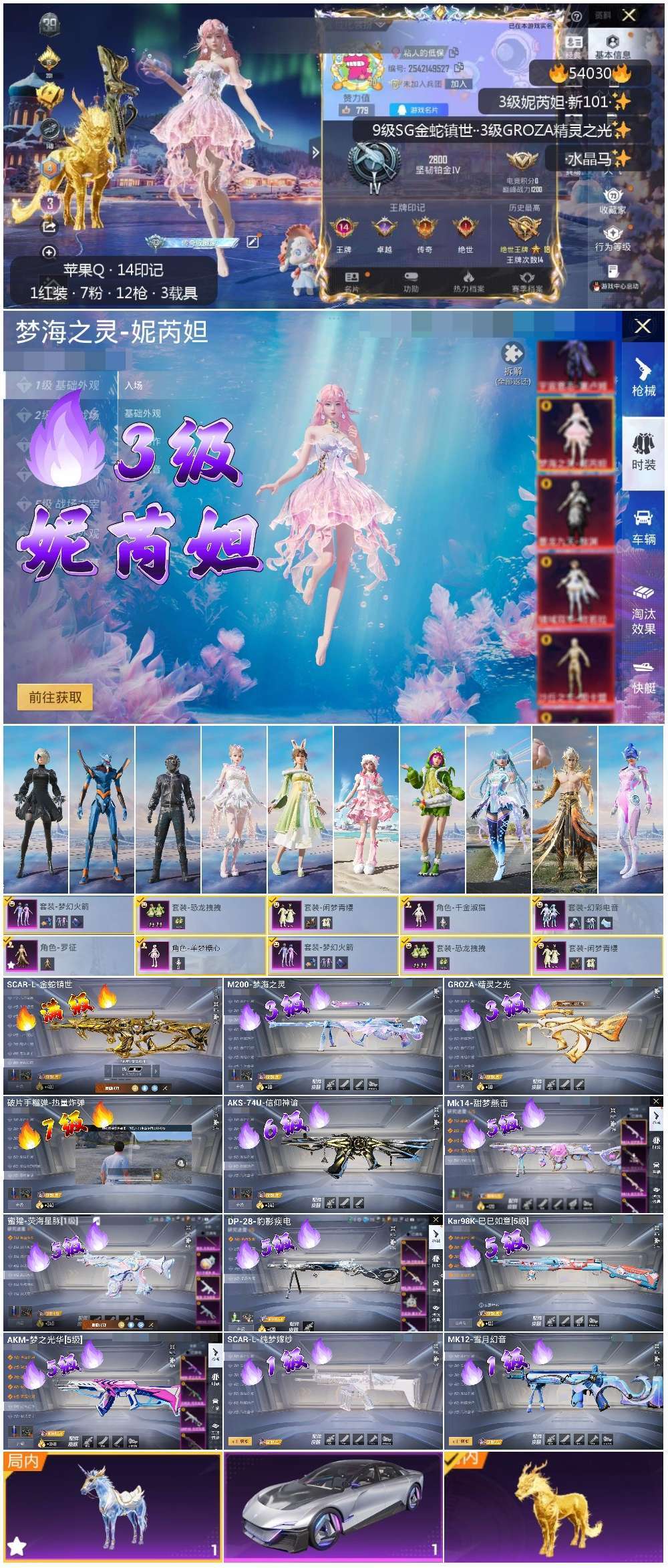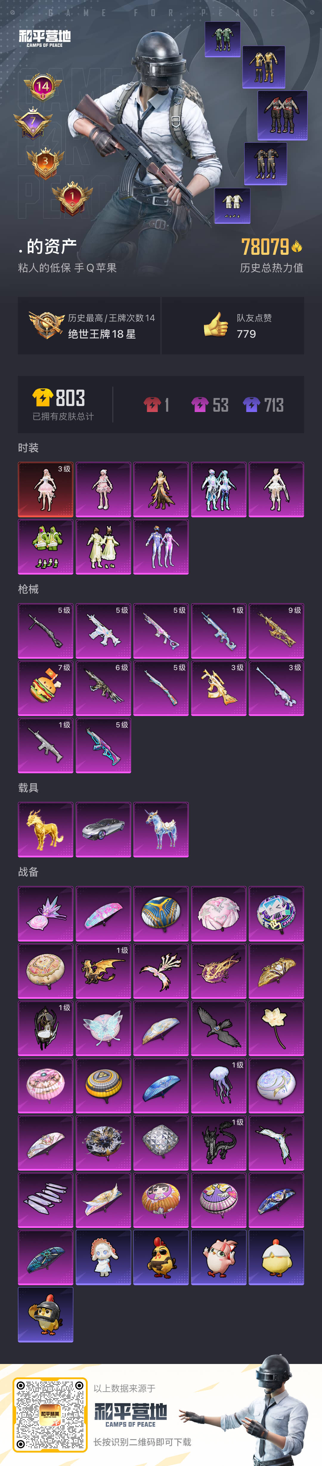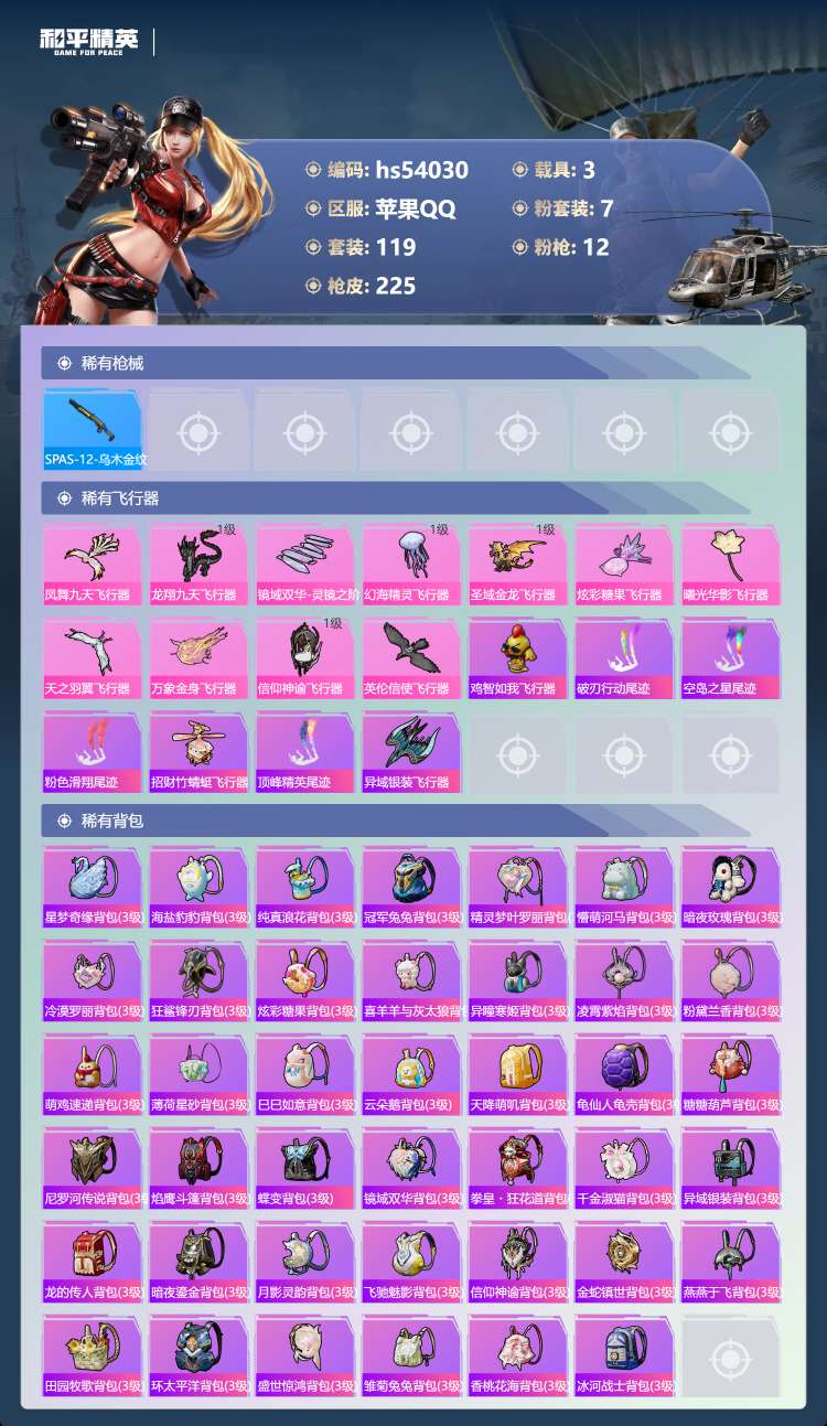 hs54030 苹果手Q-14王牌印记-1红装-7粉装-12特效枪-3载具-78079热力值-119