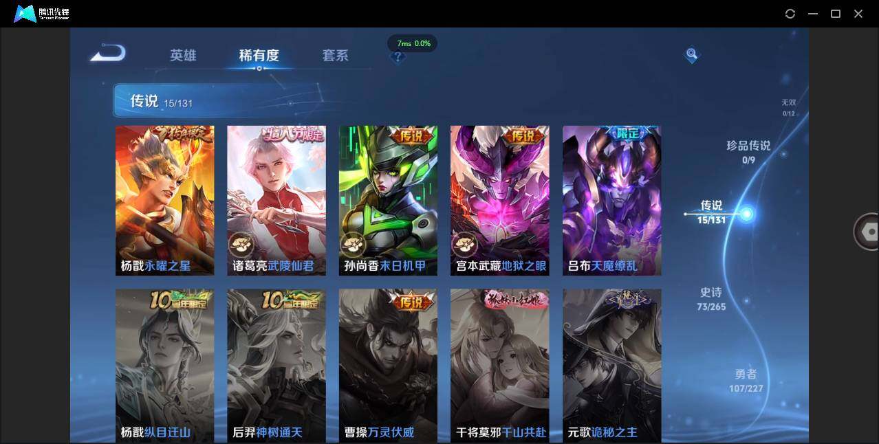 安卓QQ-3典藏-15传说-231皮肤-127英雄-绝世王者