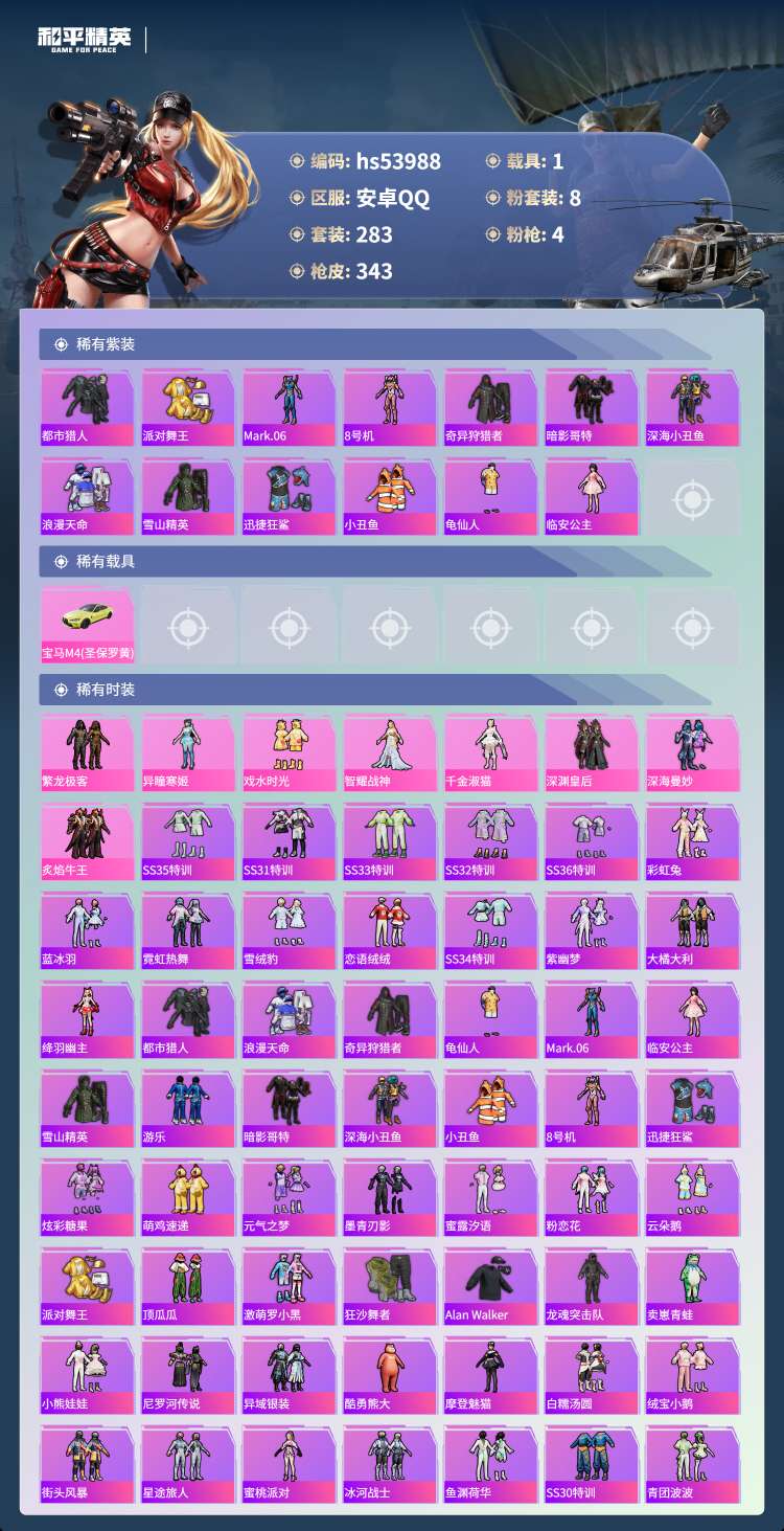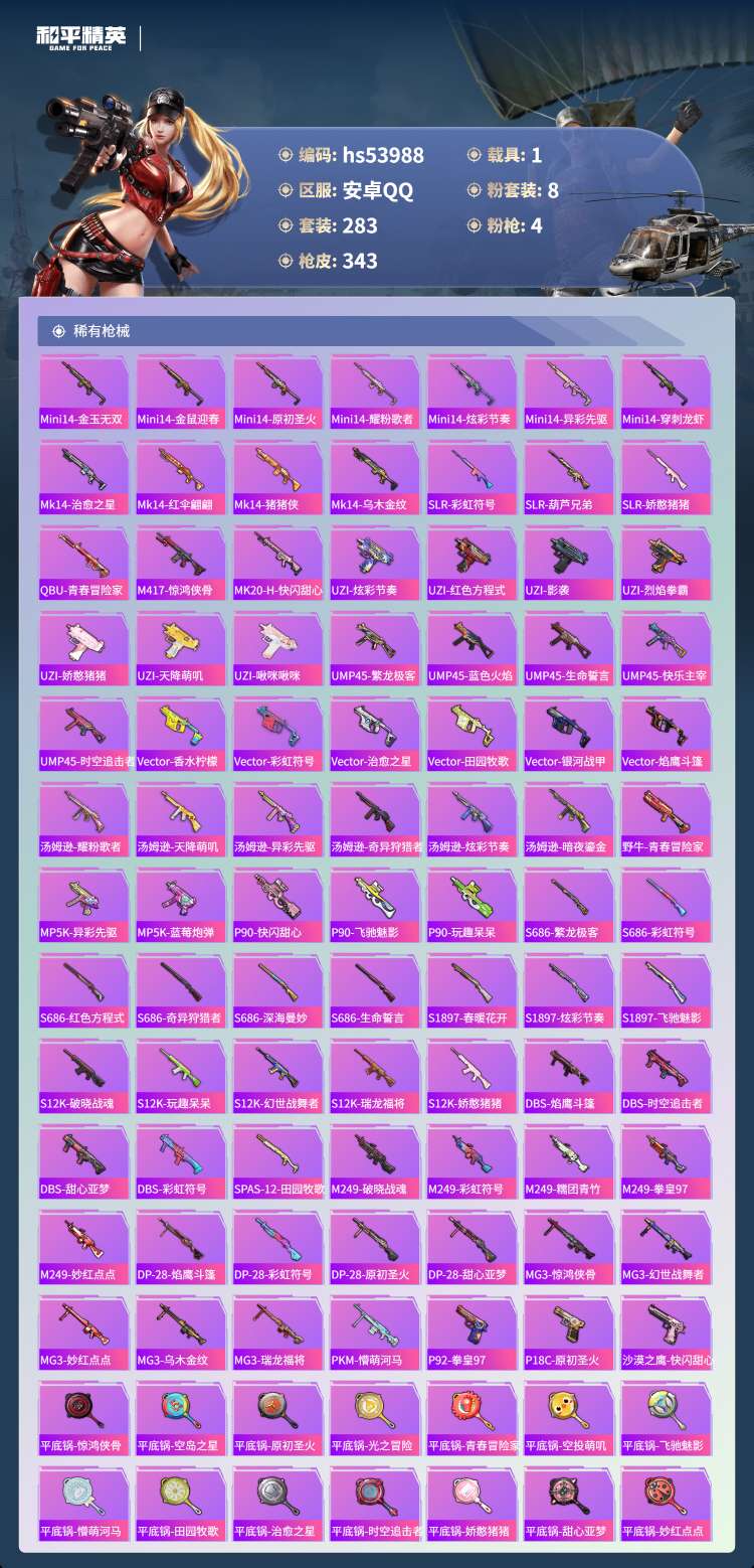 hs53988 安卓手Q-15王牌印记-8粉装-4特效枪-1载具-110061热力值-283套装-3