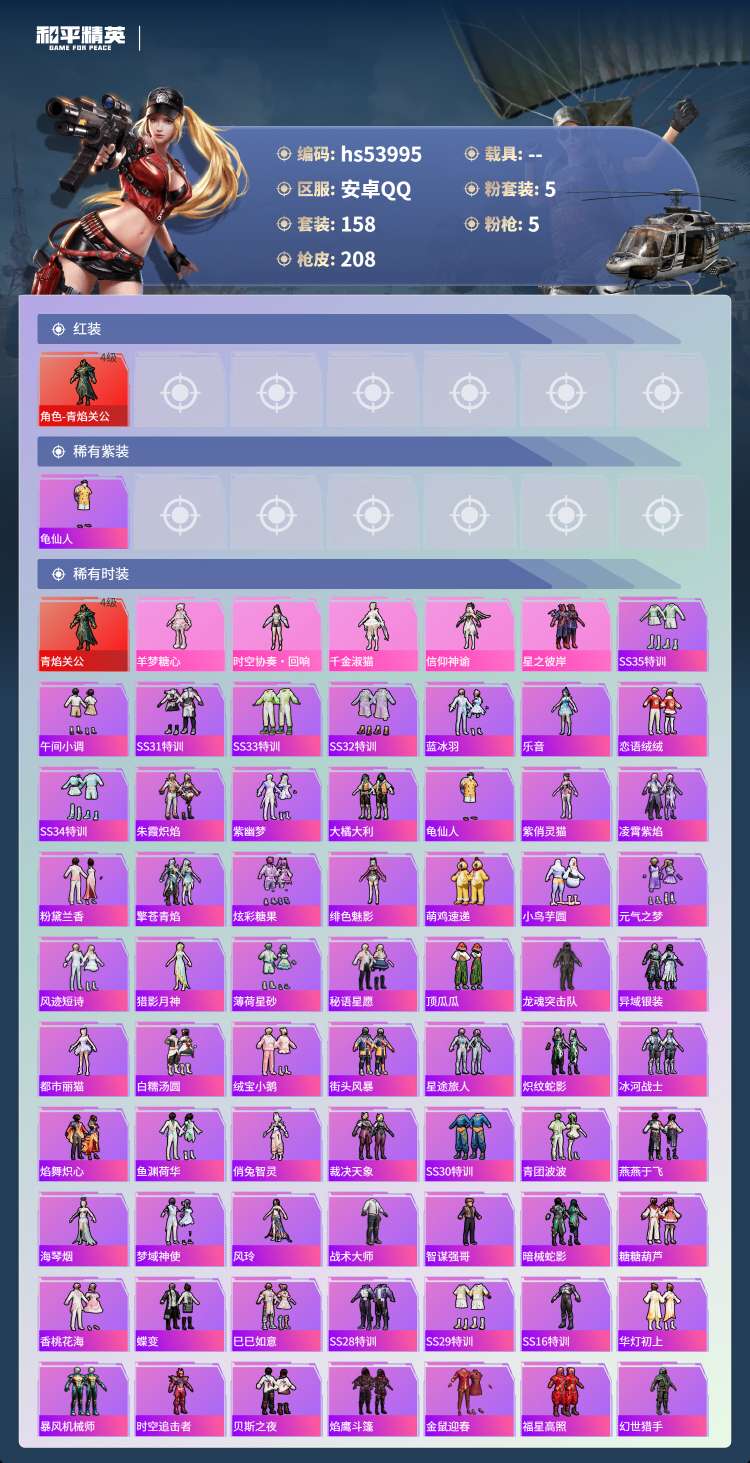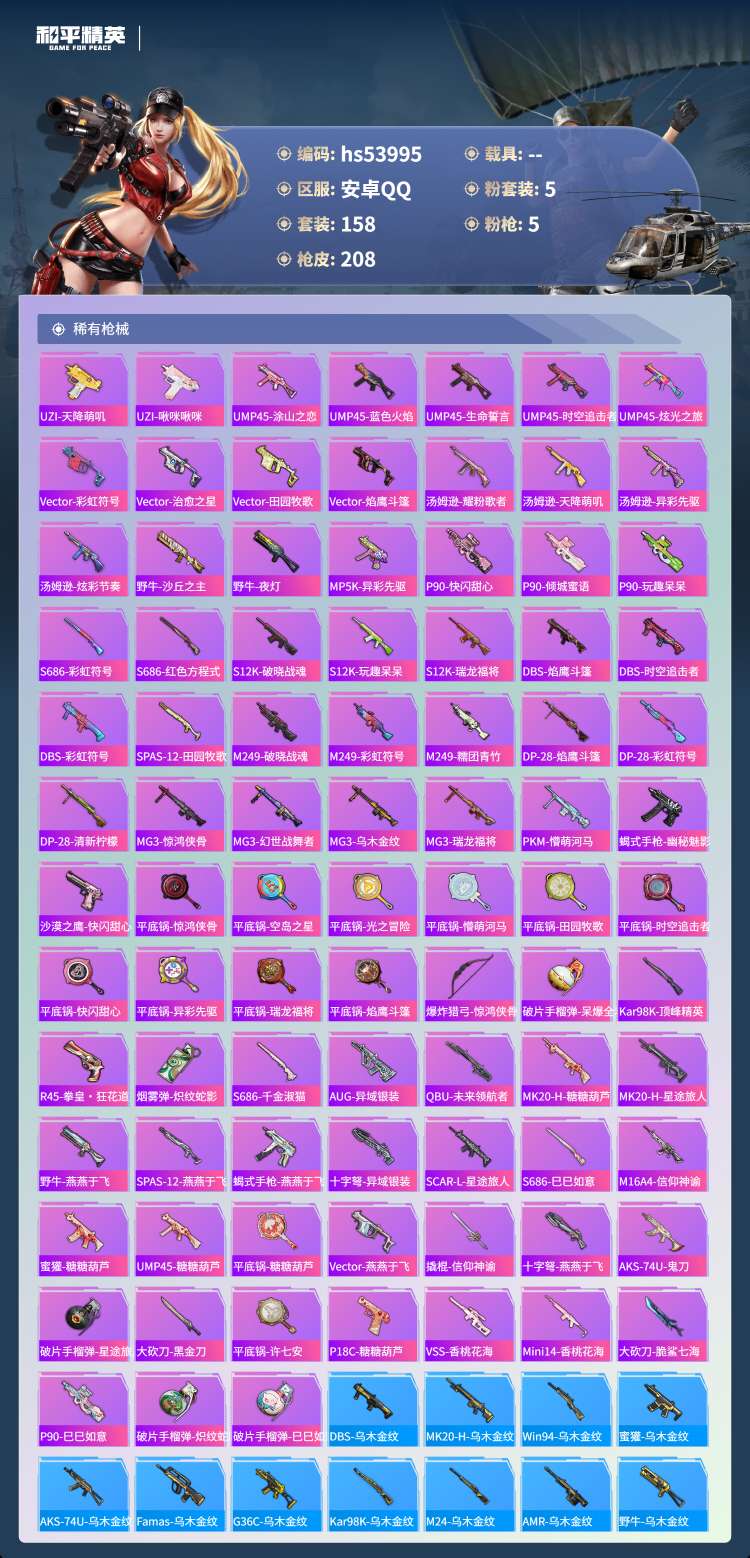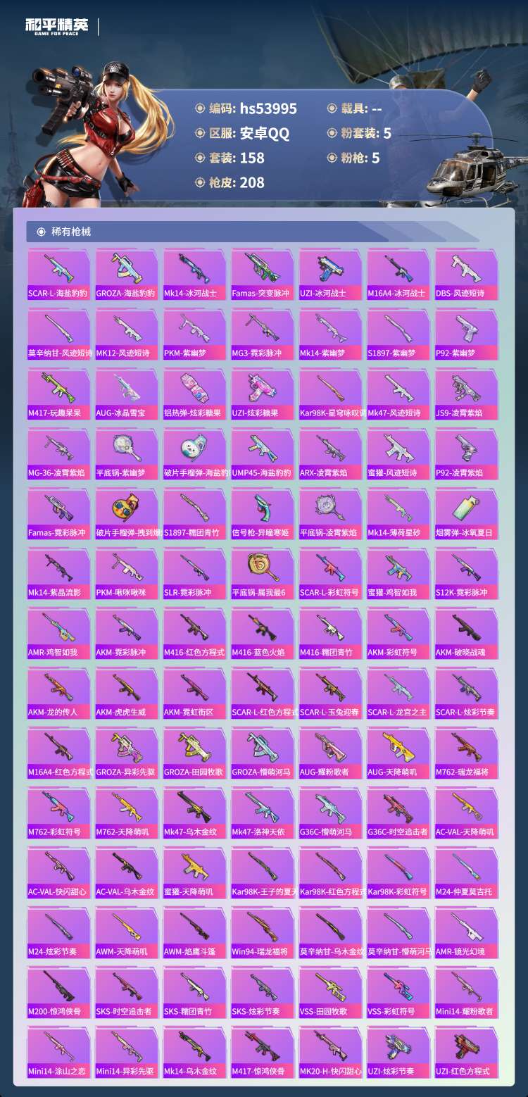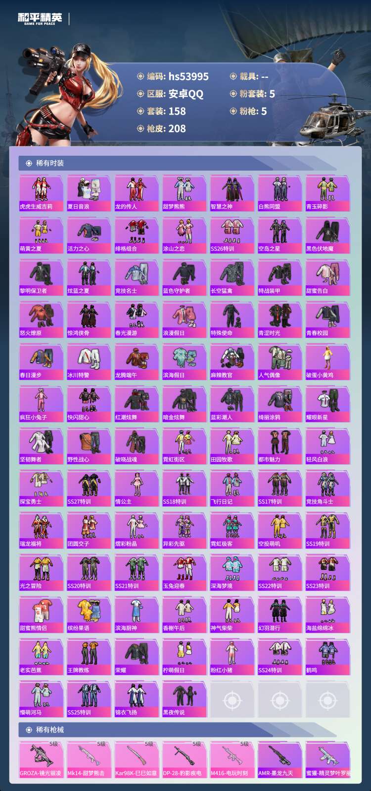 hs53995 安卓手Q-12王牌印记-1红装-5粉装-5特效枪-65637热力值-158套装-20