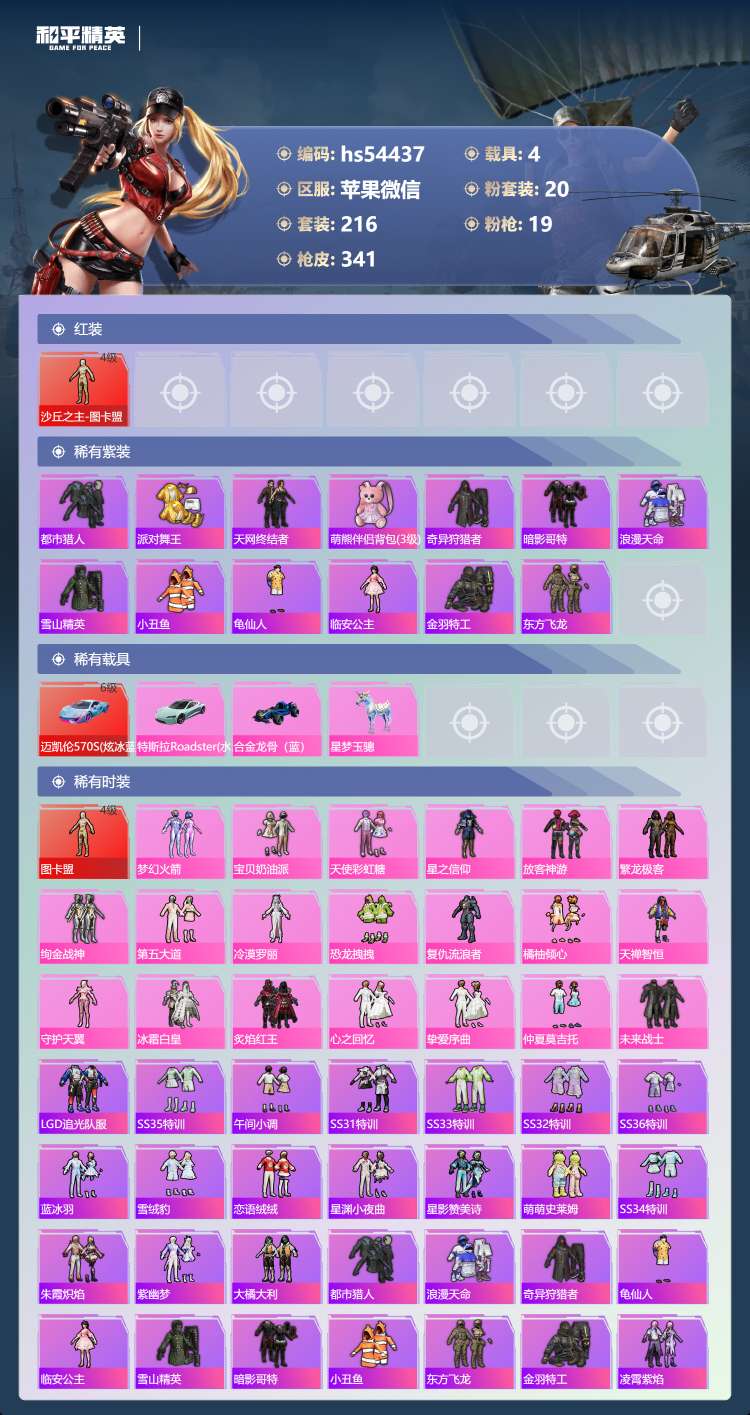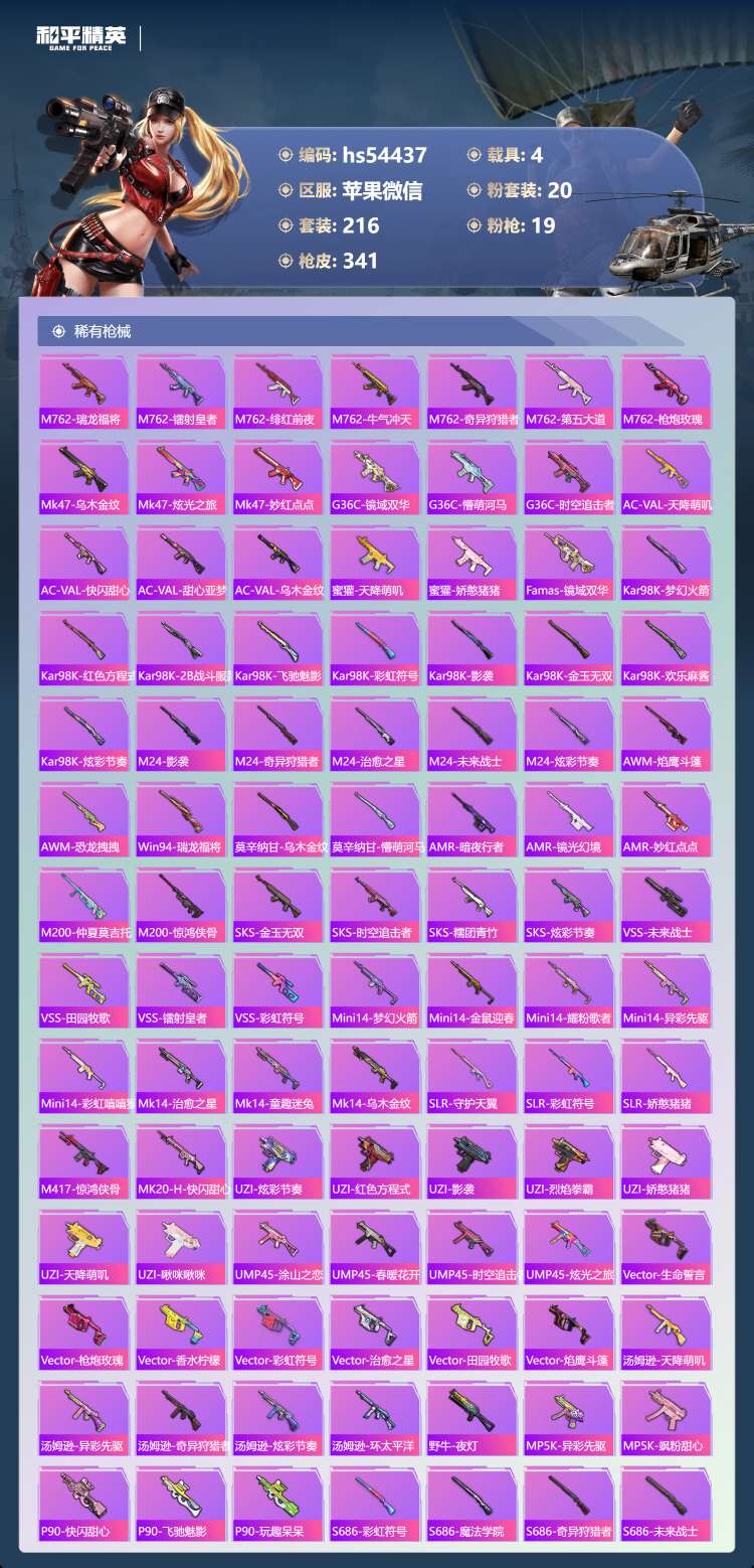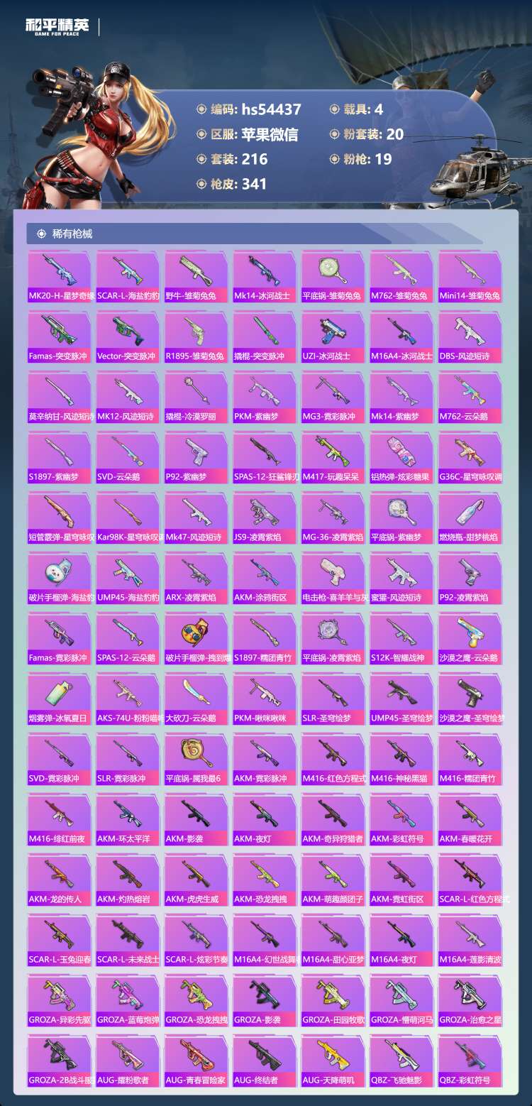 hs54437 苹果v-20王牌印记-有战神框-1红装-20粉装-19特效枪-4载具-124392