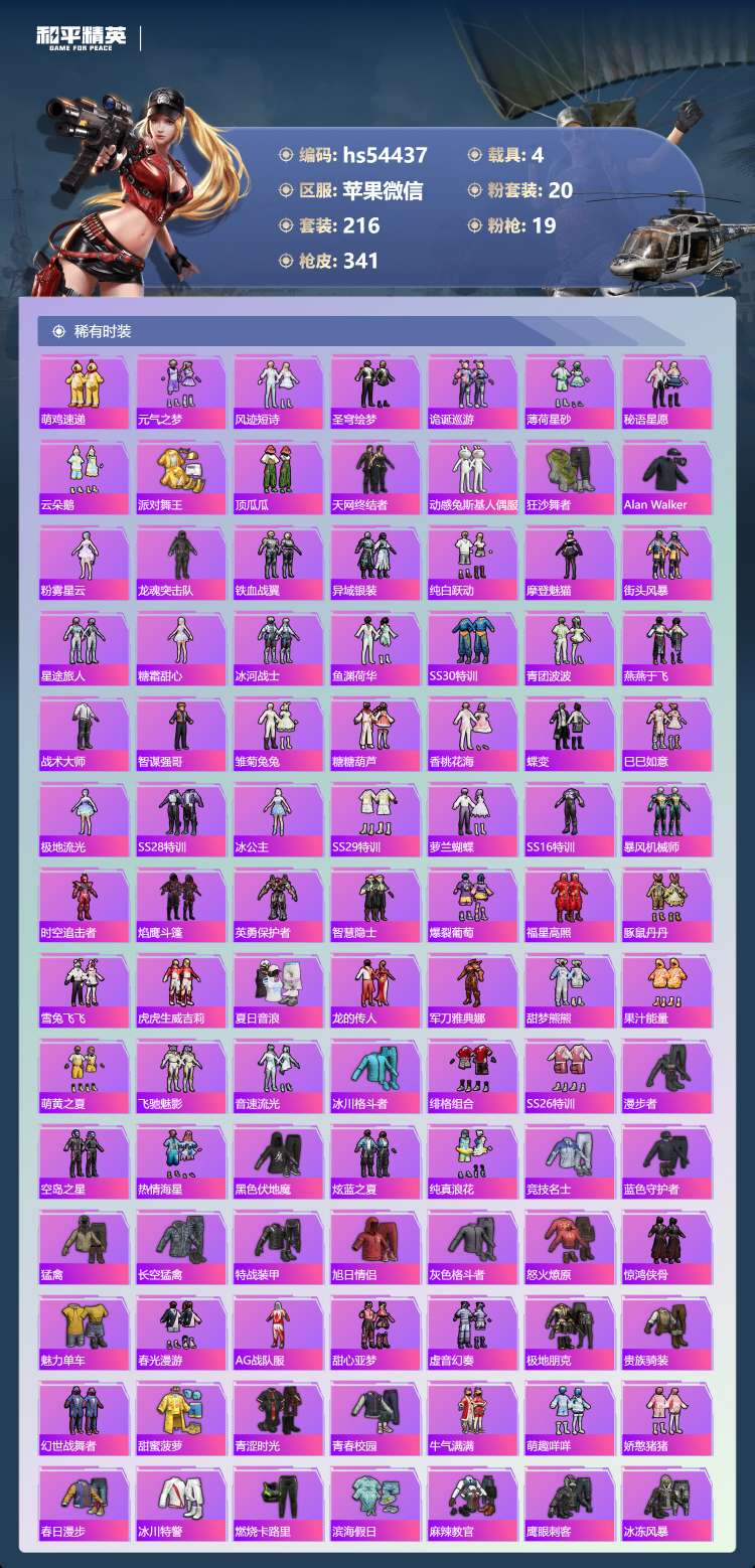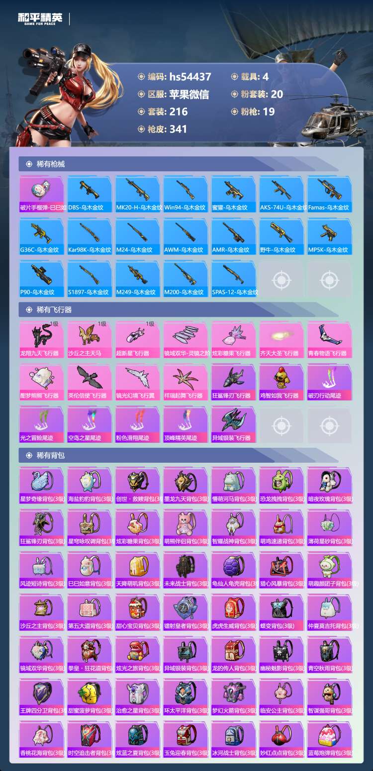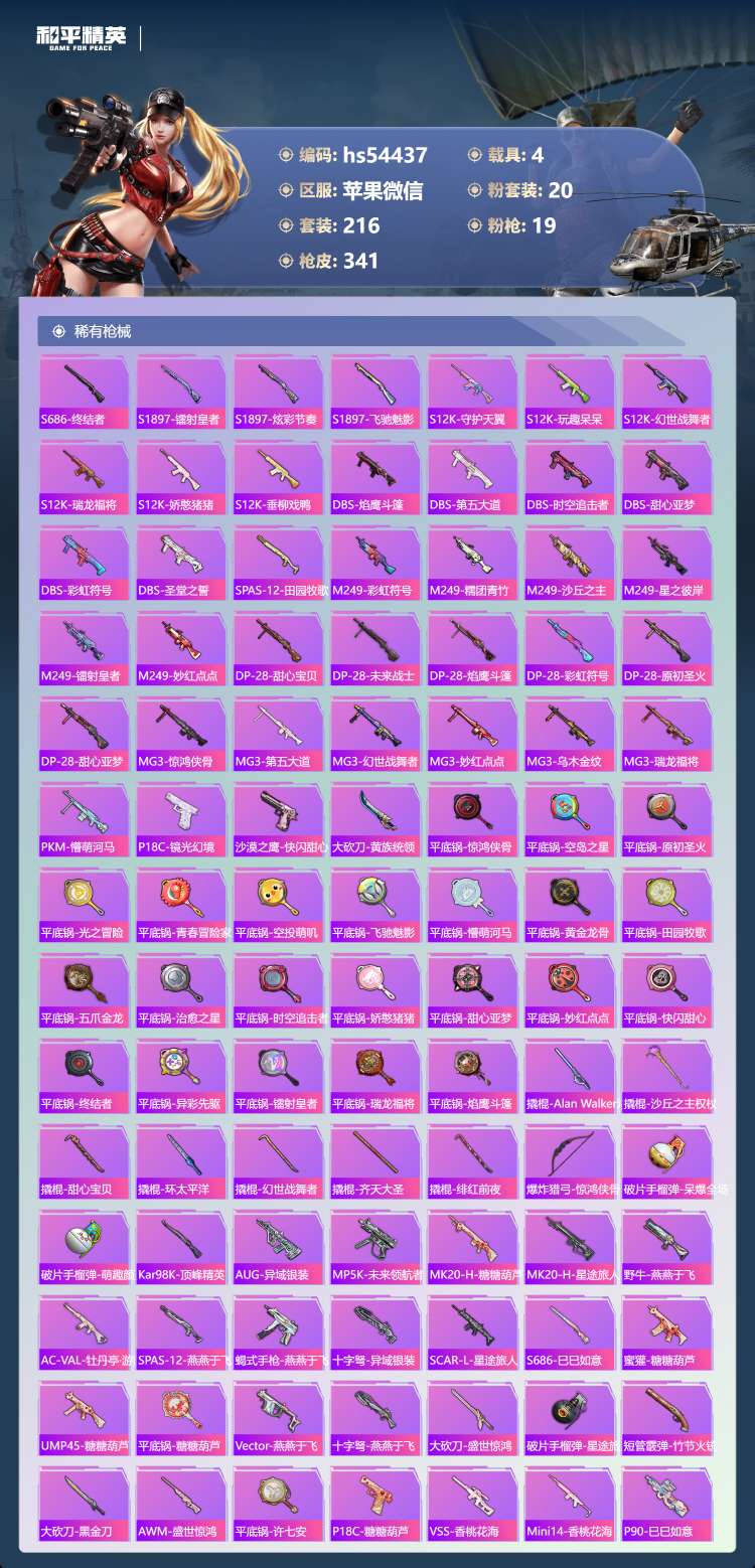 hs54437 苹果v-20王牌印记-有战神框-1红装-20粉装-19特效枪-4载具-124392