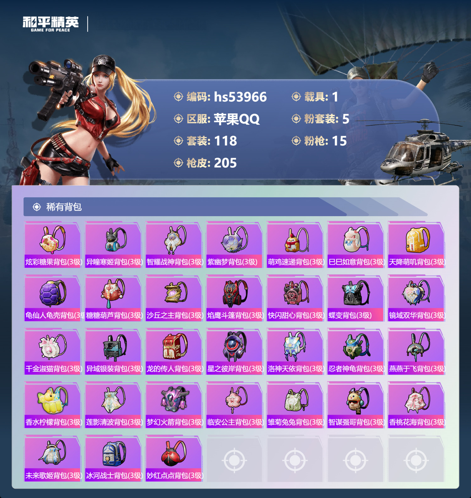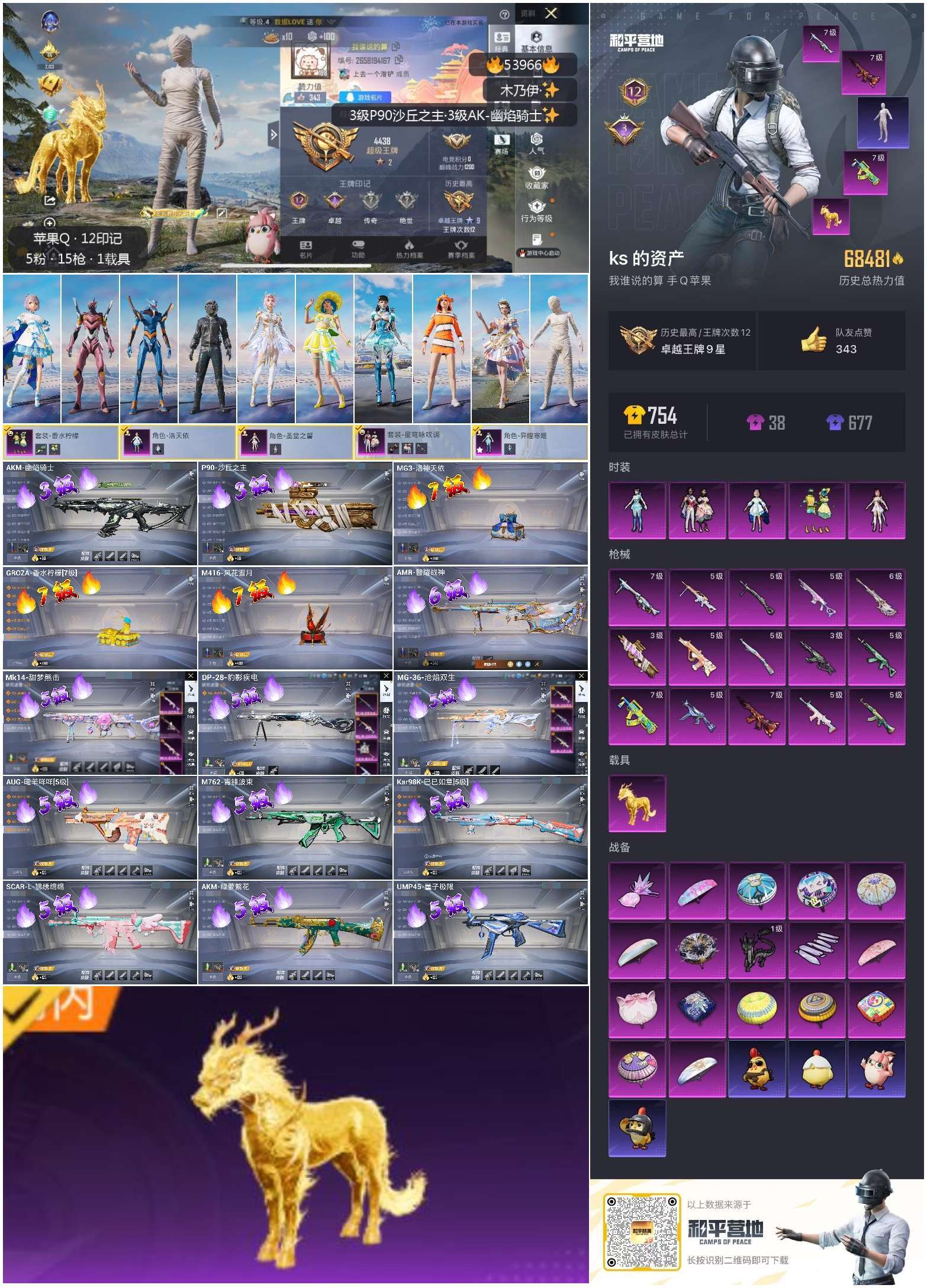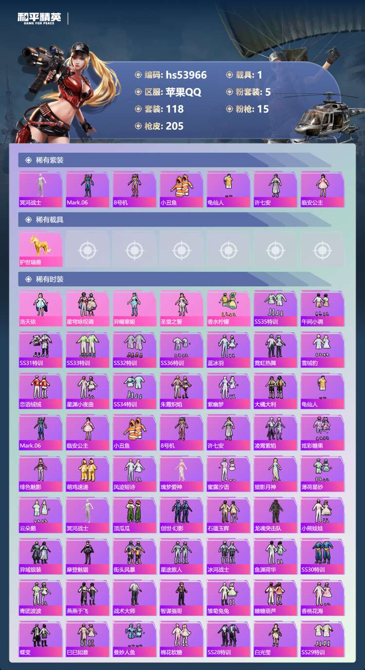 hs53966 苹果手Q-12王牌印记-5粉装-15特效枪-1载具-68481热力值-118套装-2