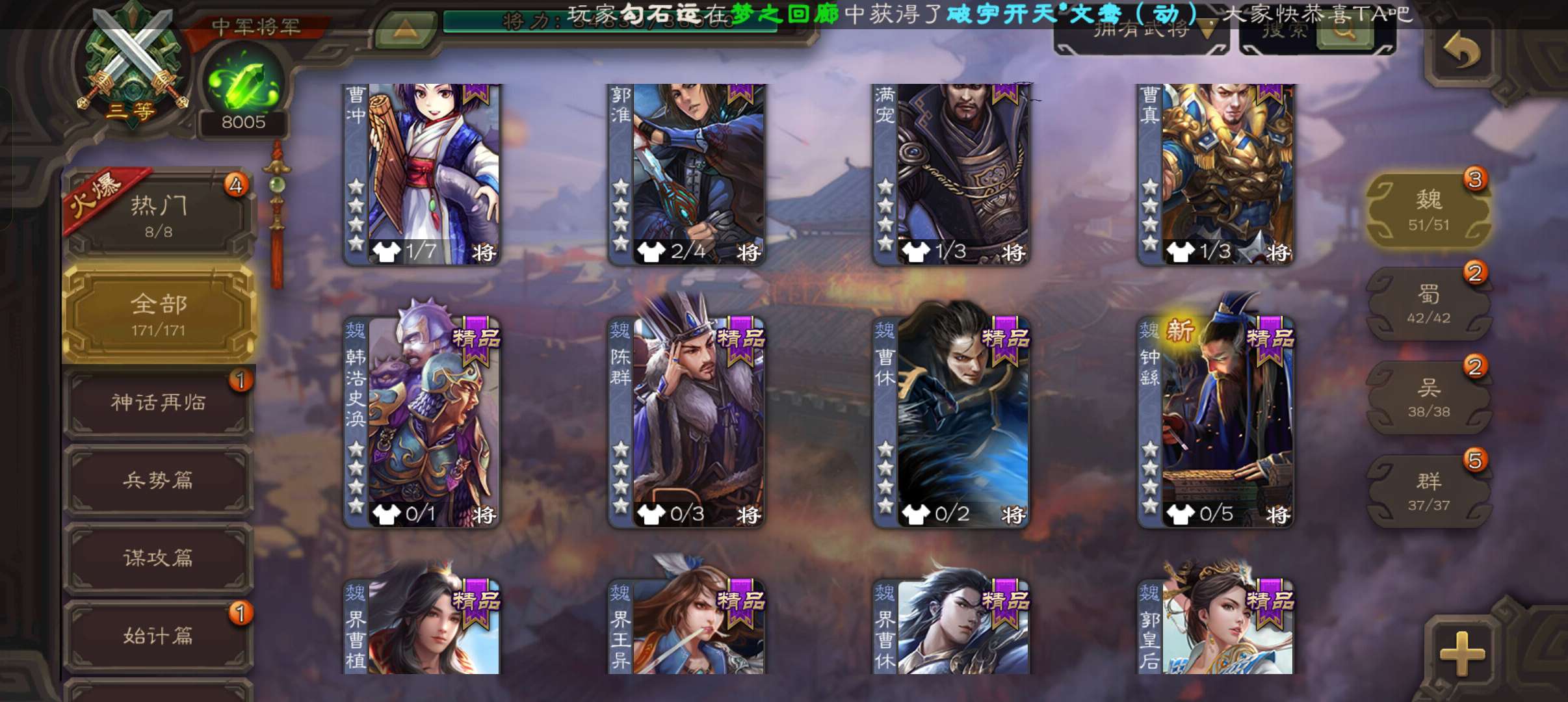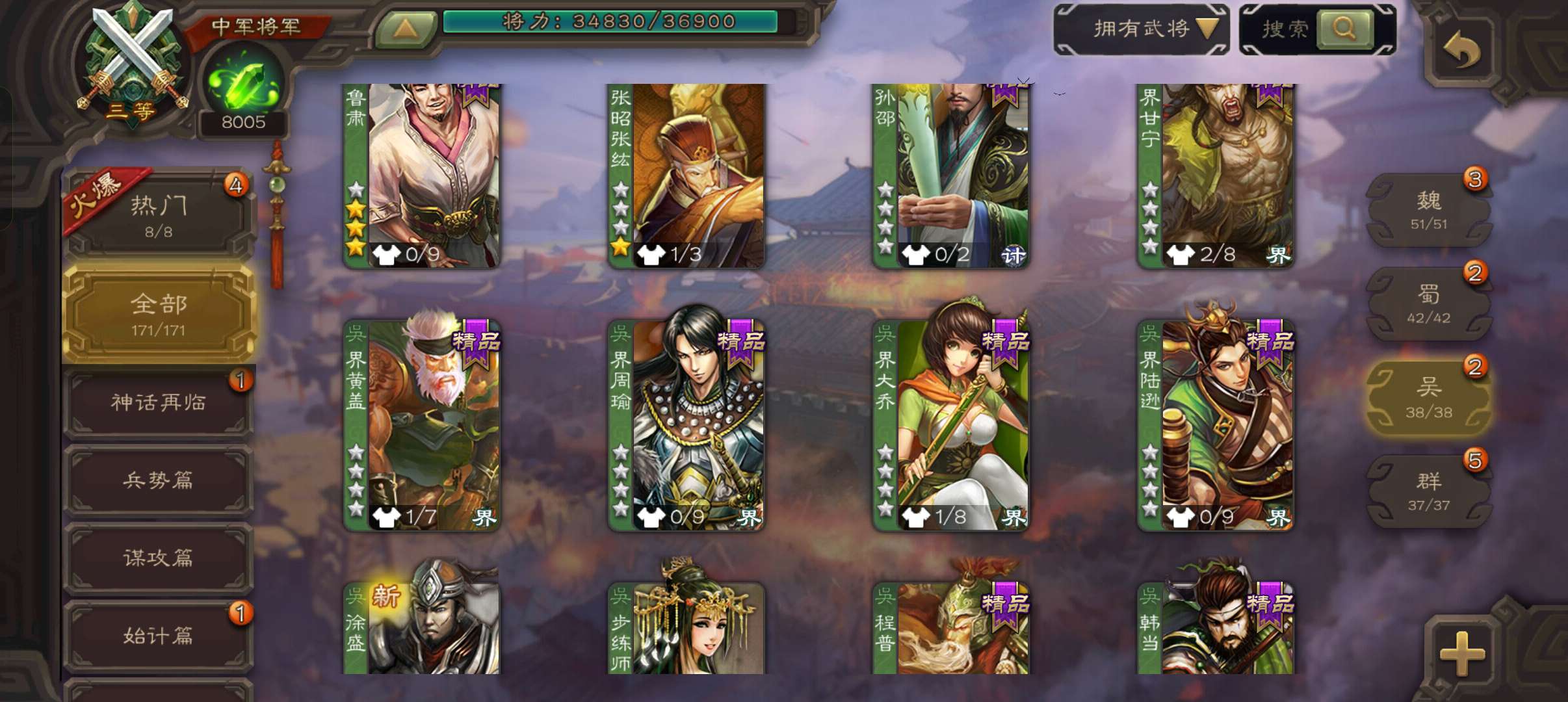 42宝珠9万羽毛8千将魂8万豆,势于吉神赵云神刘备曹婴谯周程昱6史诗中军,神吕蒙sp赵云鲁肃关银屏