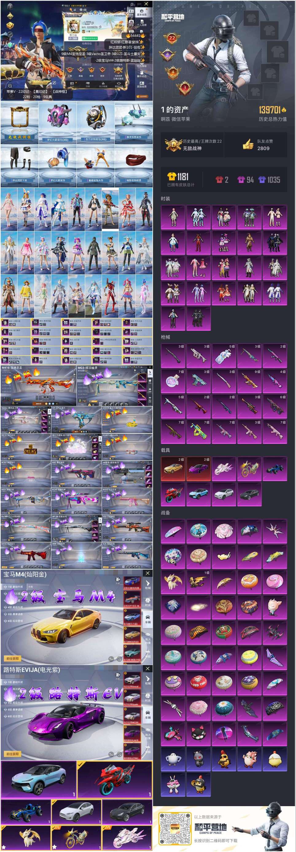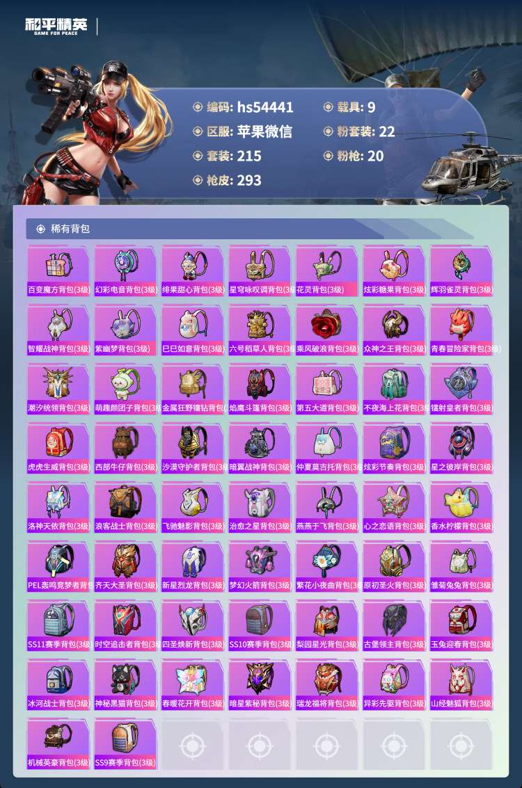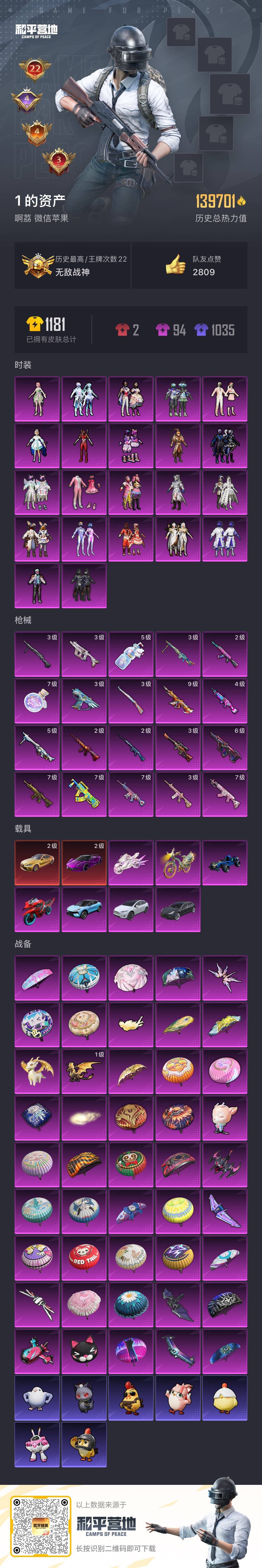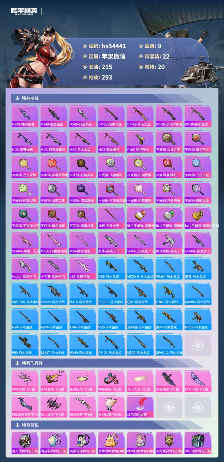 hs54441 苹果微-22王牌印记-有战神框-22粉装-20特效枪-9载具-139701热力值-