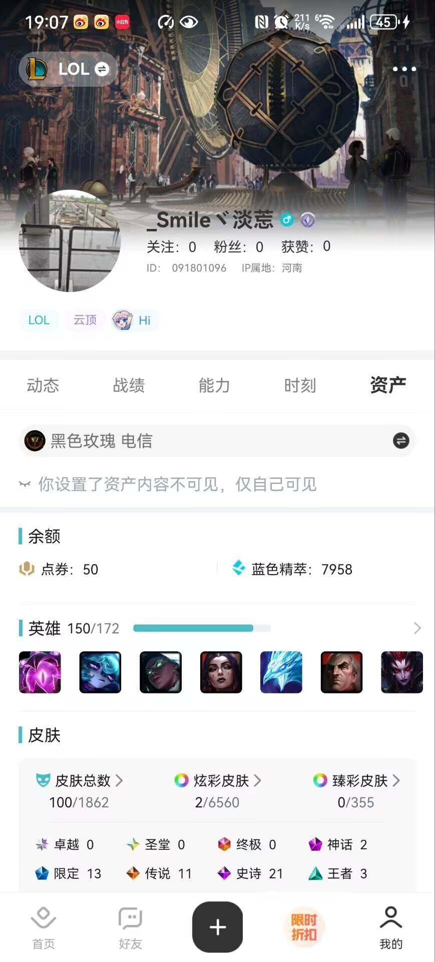 可二次【店主推荐捡漏号!可直接换绑】青铜段位-150英雄-100皮肤-2炫彩-0终极-2神话-13限定-11传说-21史诗