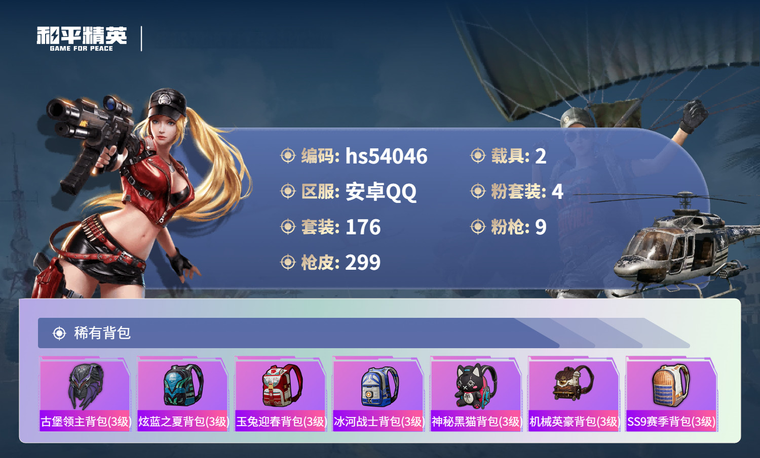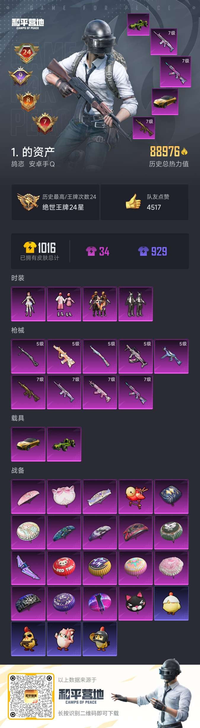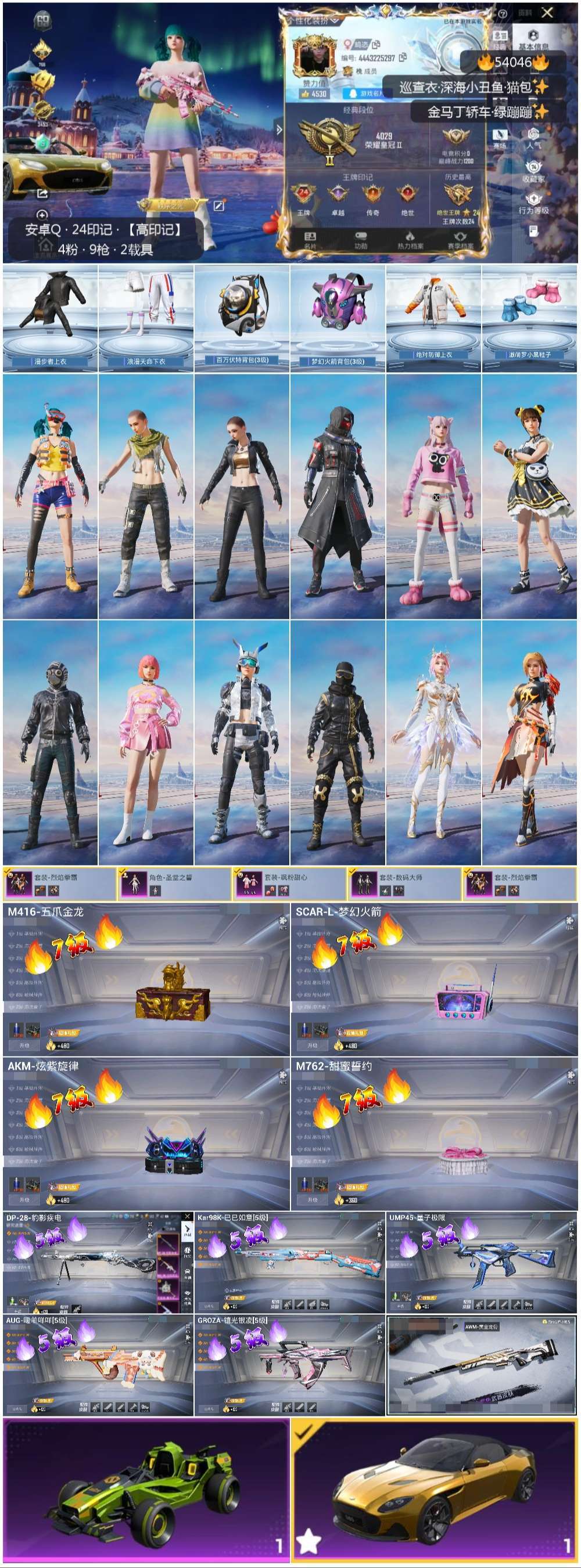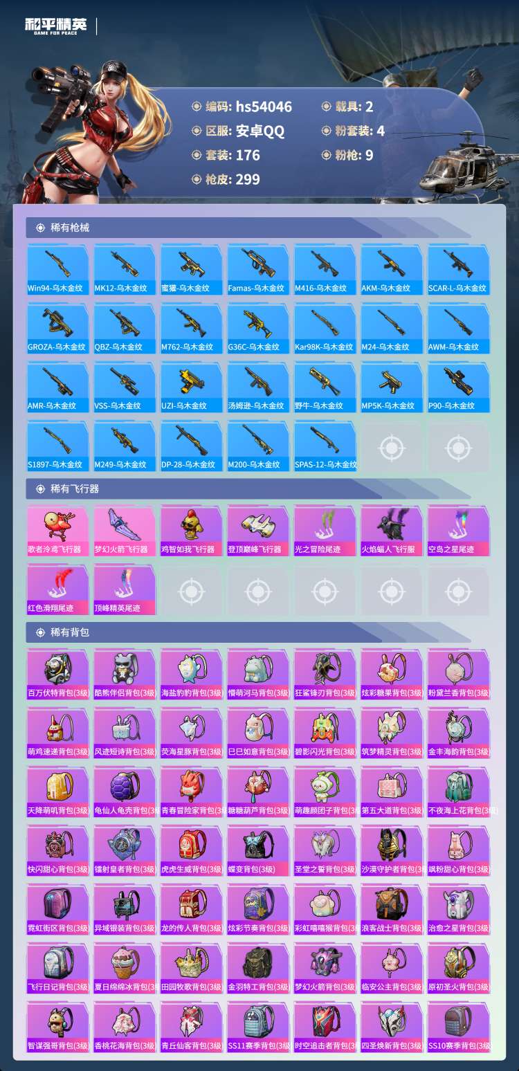 hs54046 安卓手Q-24王牌印记-4粉装-9特效枪-2载具-89962热力值-176套装-29