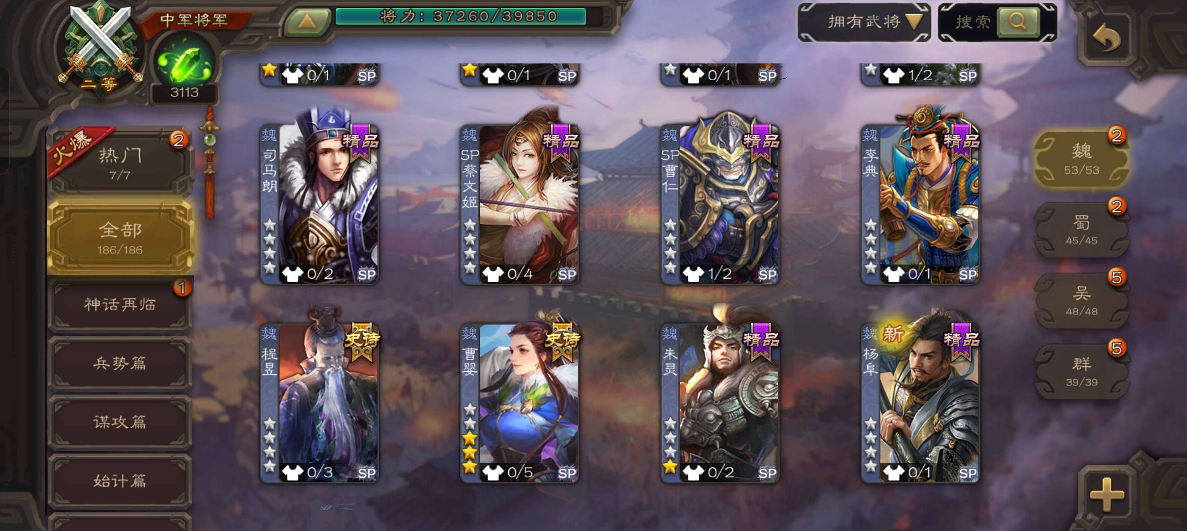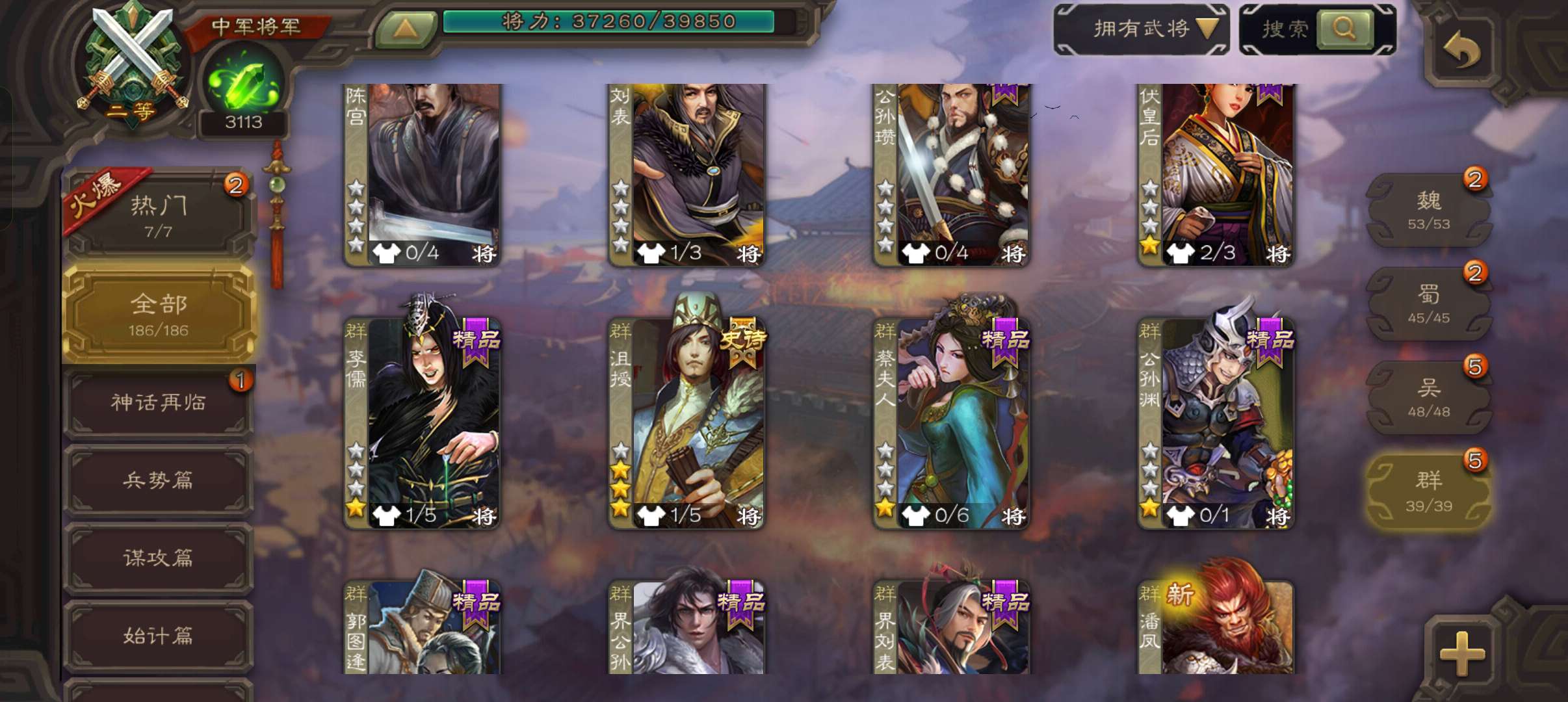 史诗武将数量: