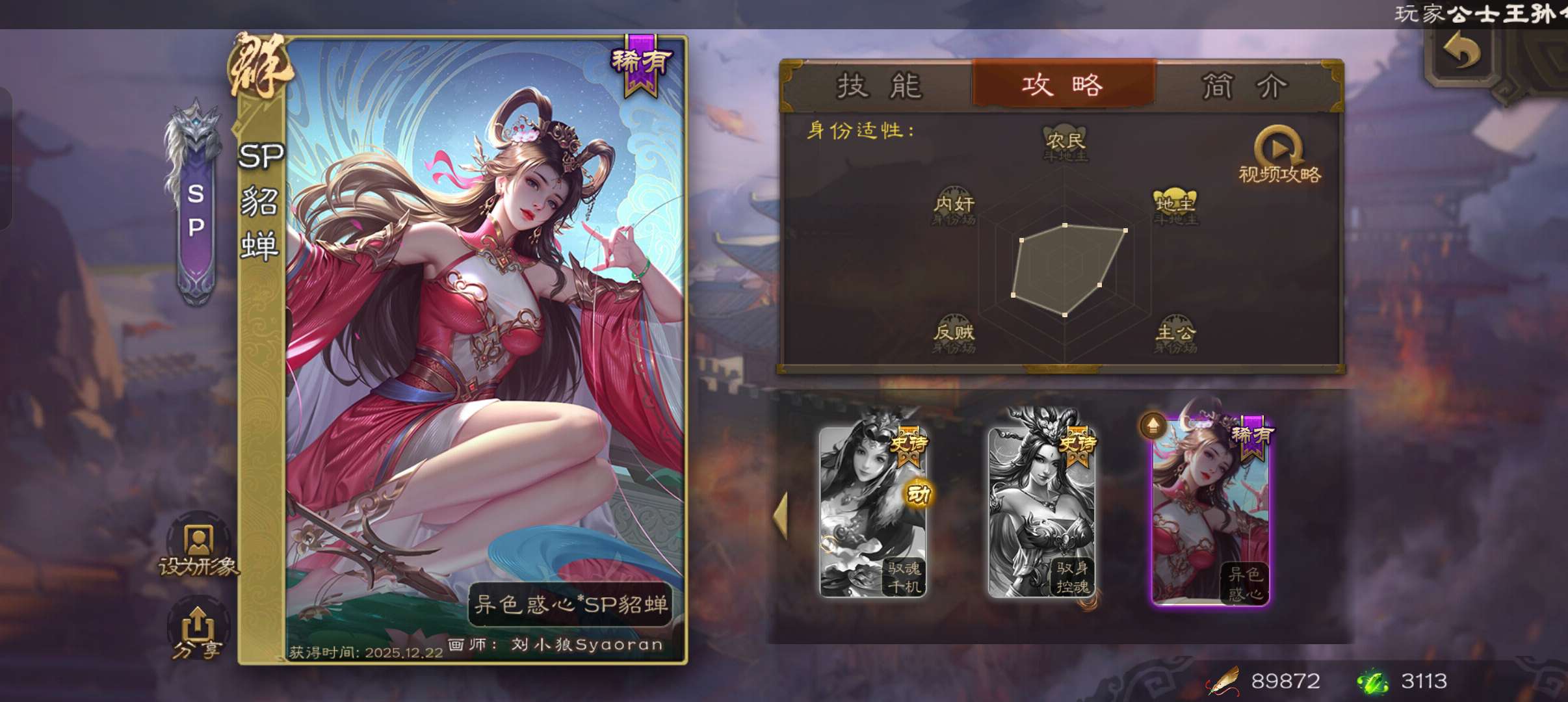 33宝珠9万毛3100魂,神赵云曹婴神刘备沮授左慈程昱6史诗中军,神吕蒙sp貂蝉sp赵云鲁肃关银屏