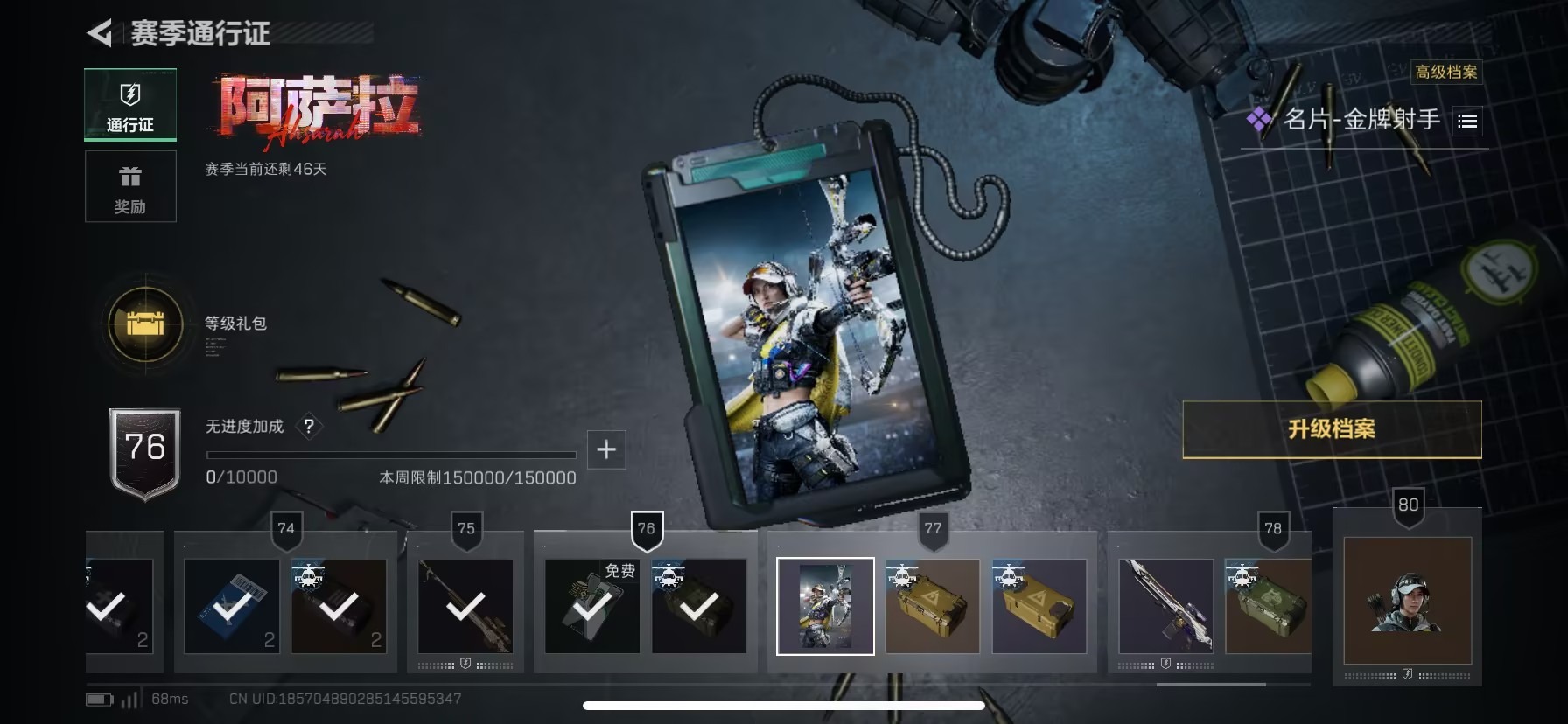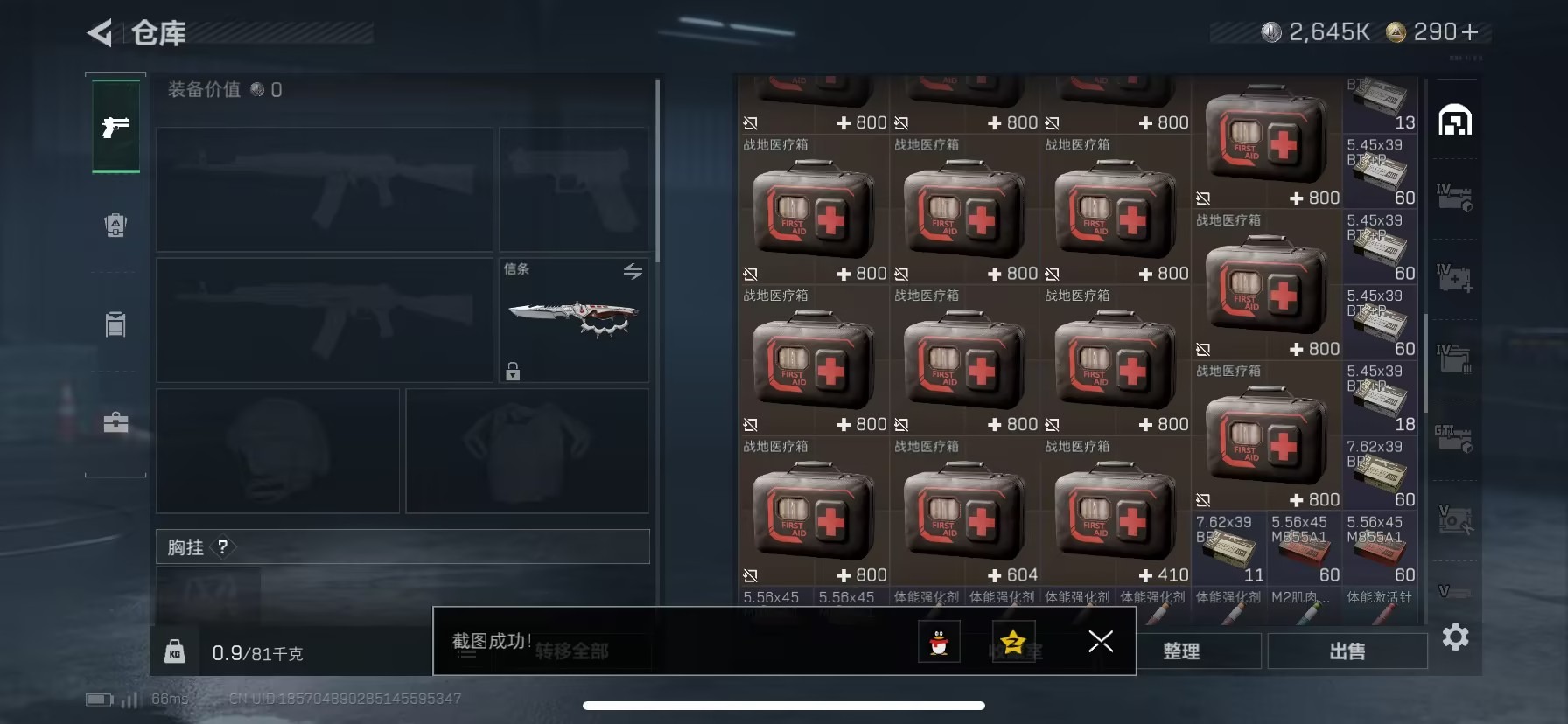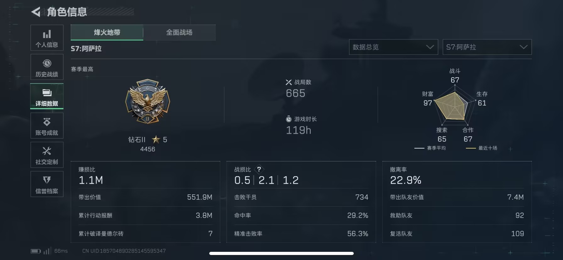 总资产:206.6M 2干员外观 1近战传说 10传说枪械 顶级安全箱(3*3)1.28号到期 哈夫