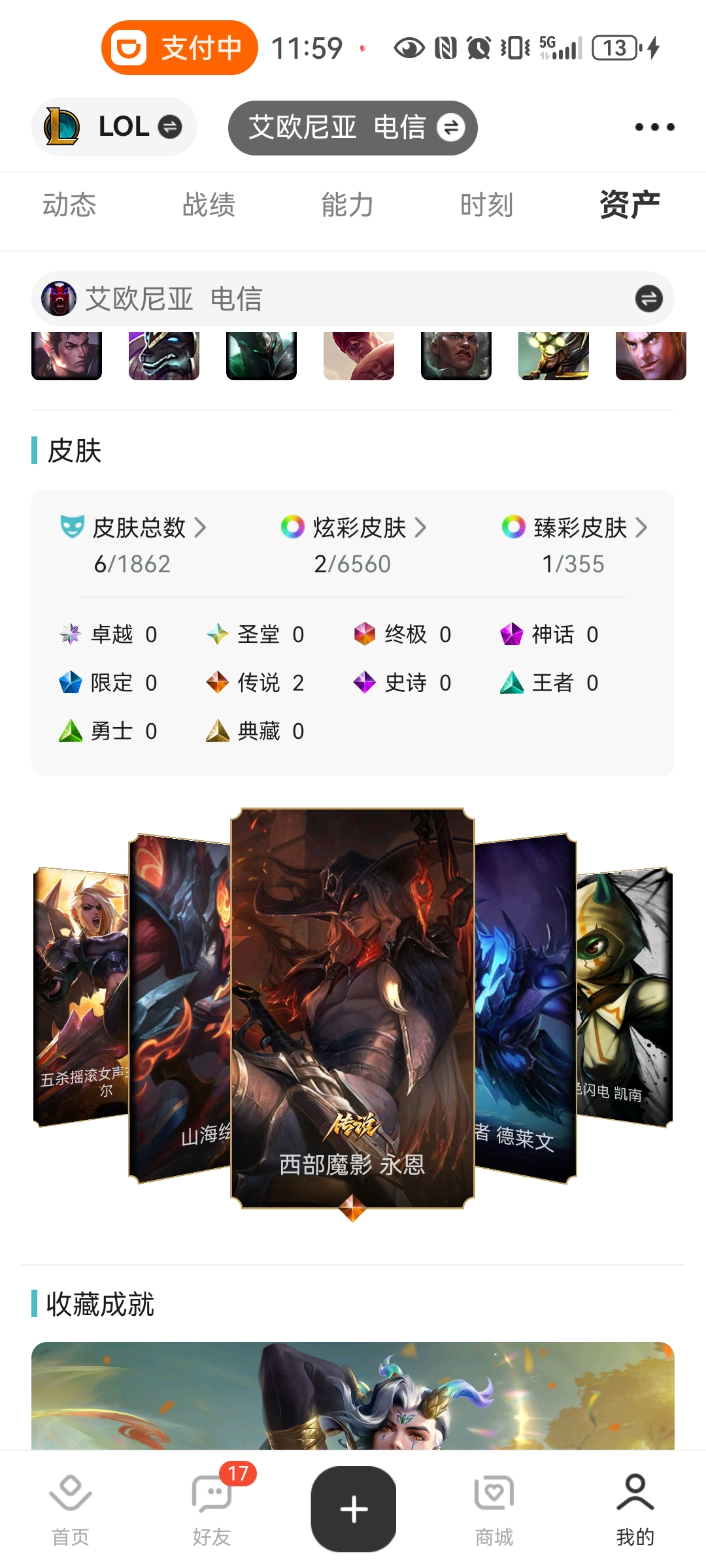 云顶神话和皮肤都有,自己看