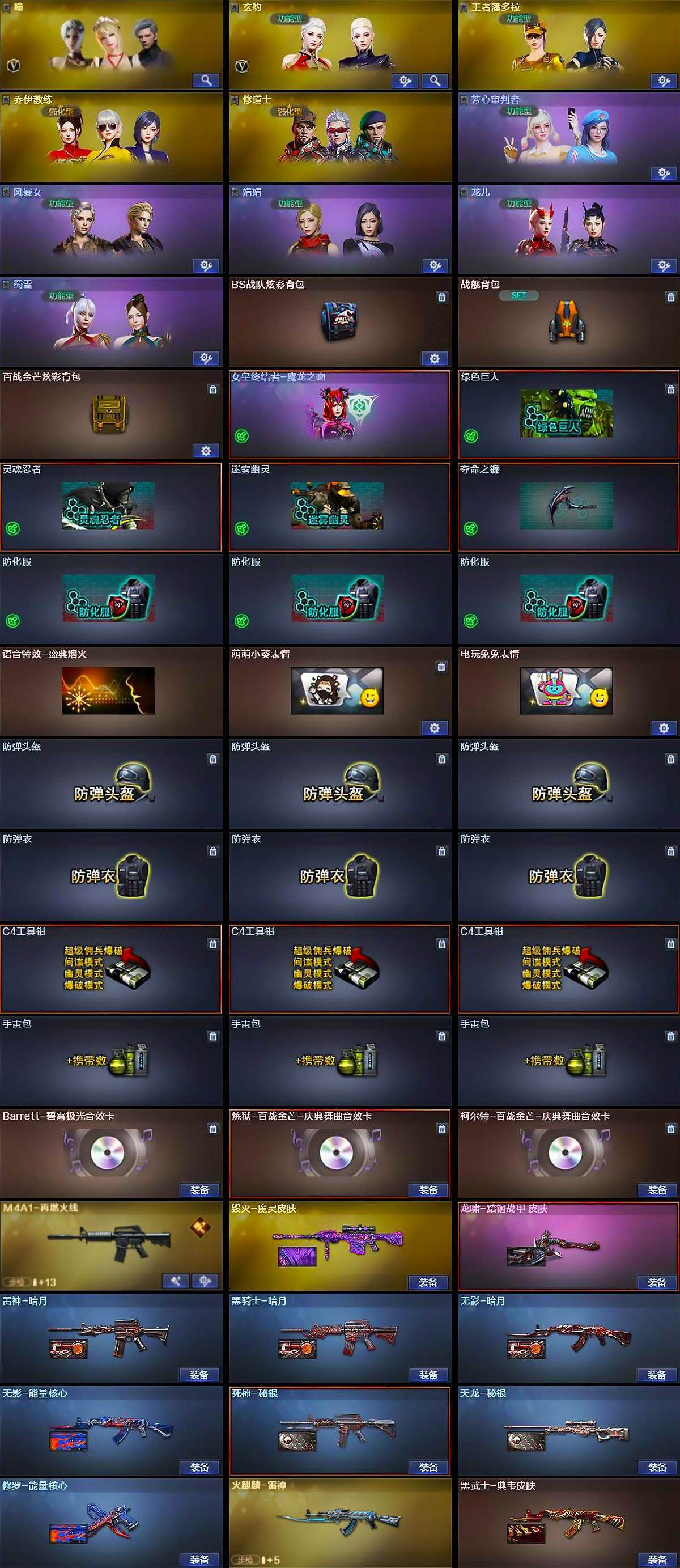 【皮肤】:雷神-暗月,M4A1-再燃火线,火麒麟-雷神,毁灭-魔灵皮肤,黑骑士-暗月,无影-暗月,无影-能量核心,死神-秘