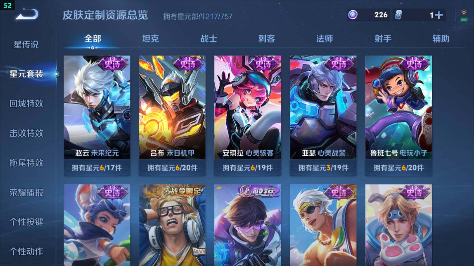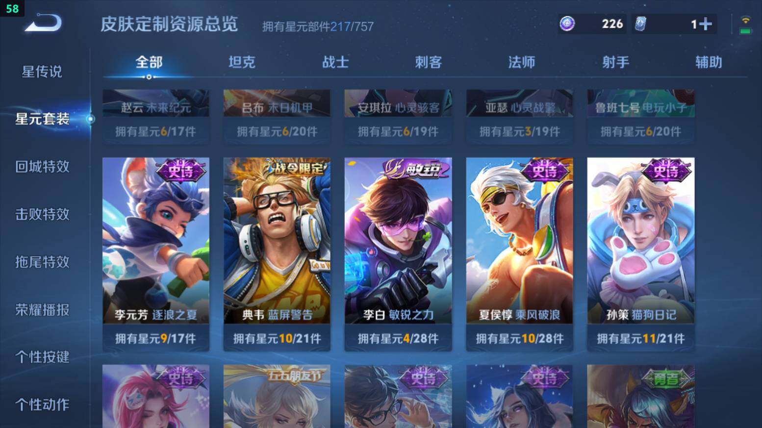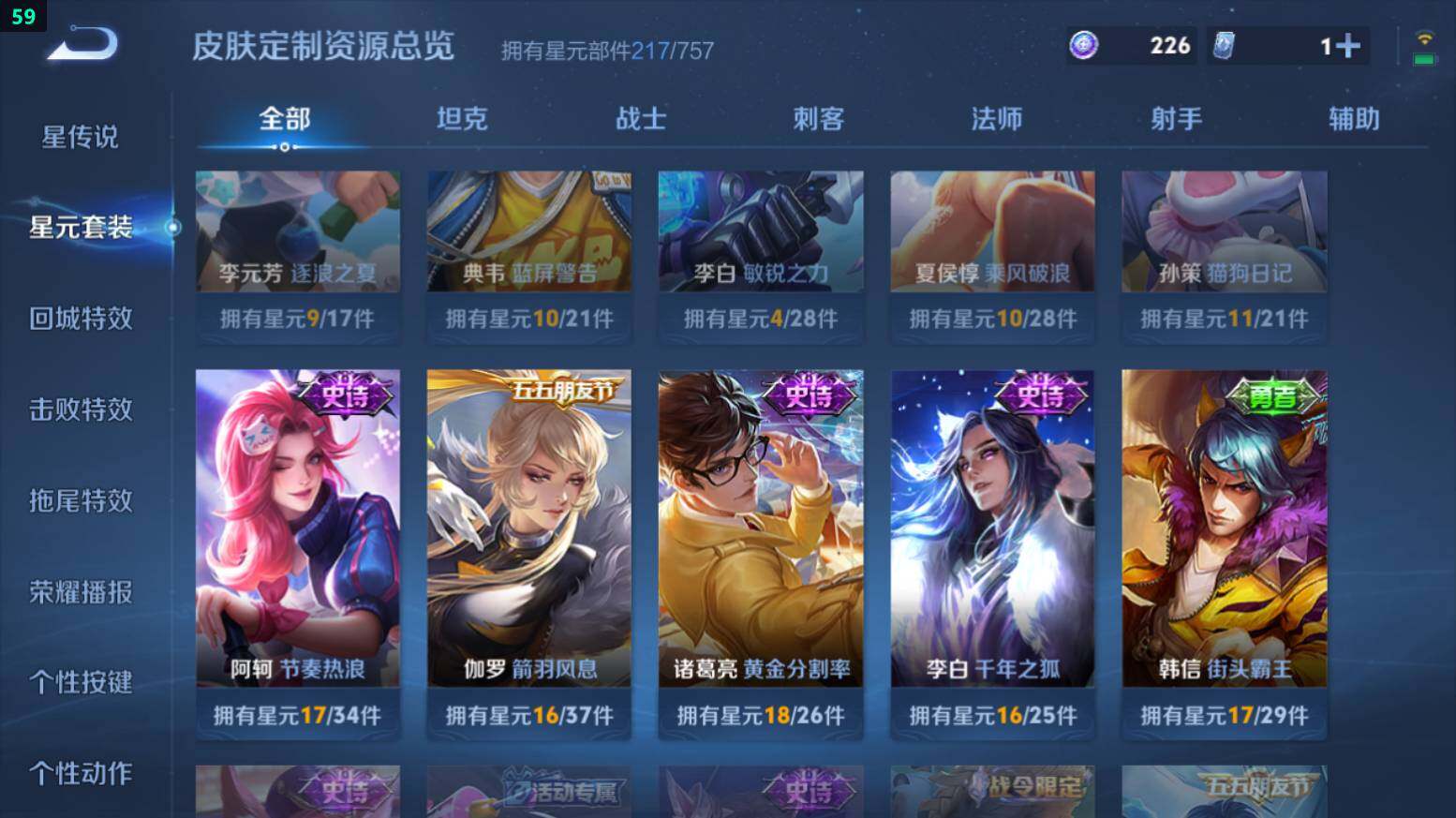 安卓Q-V8-236皮肤-10传说-64史诗-积分夺宝305抽-3星传说【传