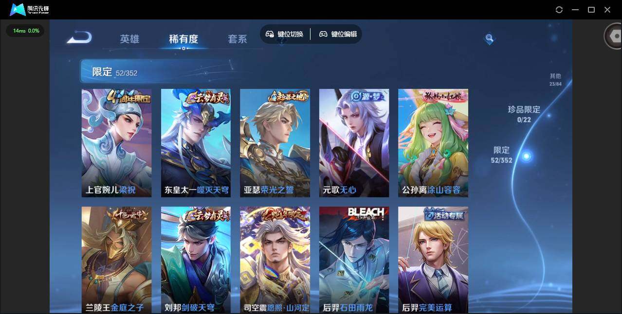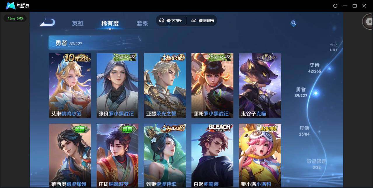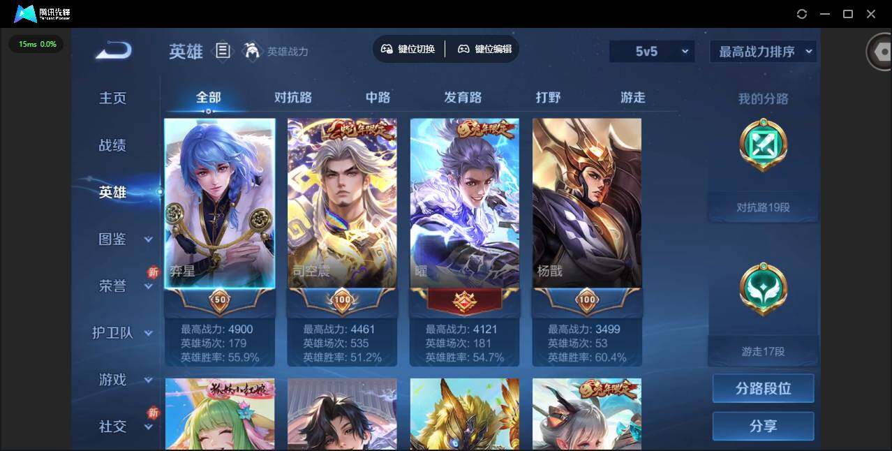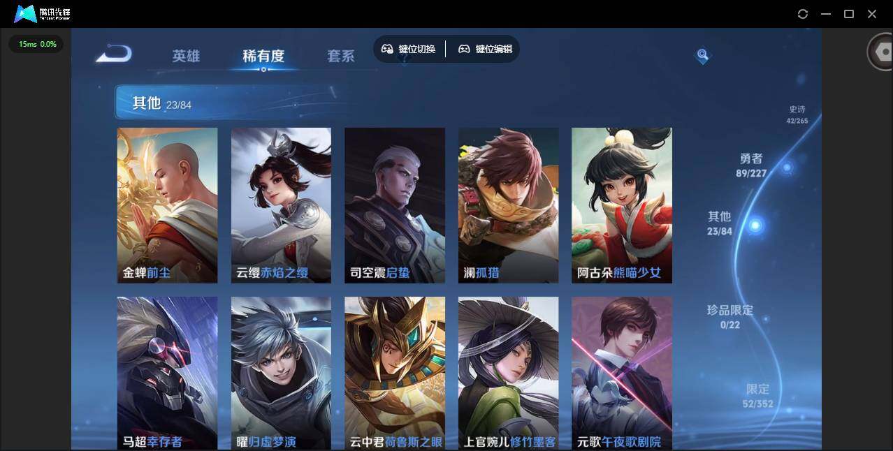 贵族等级: V2 英雄数: 125 皮肤数: 159 星传说: 幽冥火 传说皮