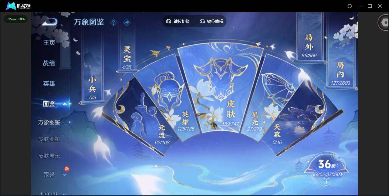 /贵族等级: V2 英雄数: 125 皮肤数: 159 星传说: 幽冥火 传说皮: 地狱火,胖达荣荣,山海·苍雷引 限定皮: 李小龙,梁祝,山海·碧波行,鸣野蒿,愿照·山河定