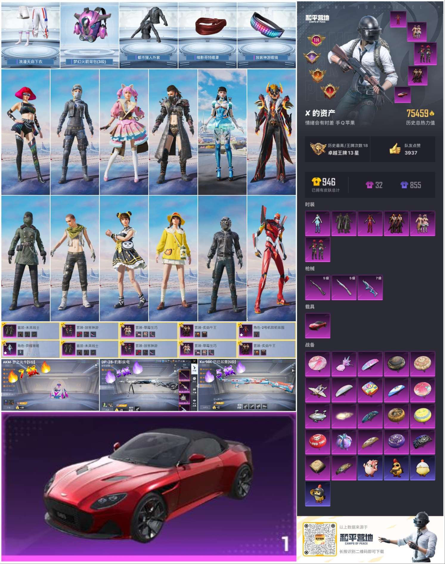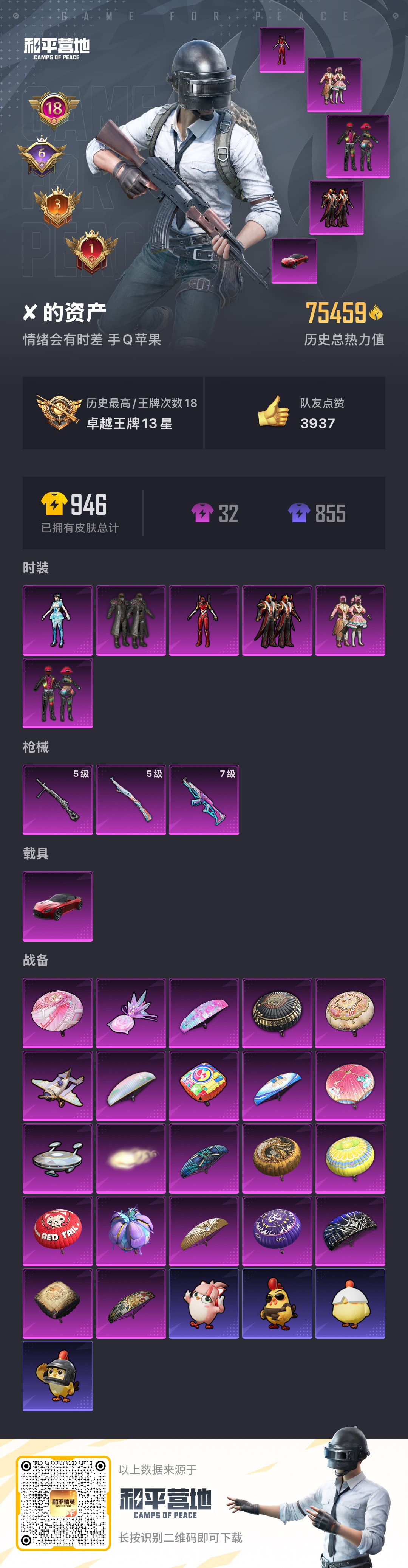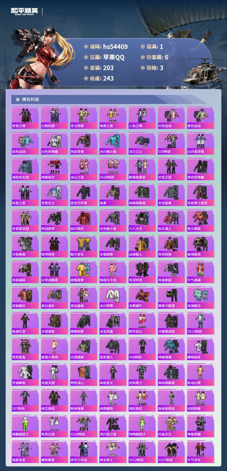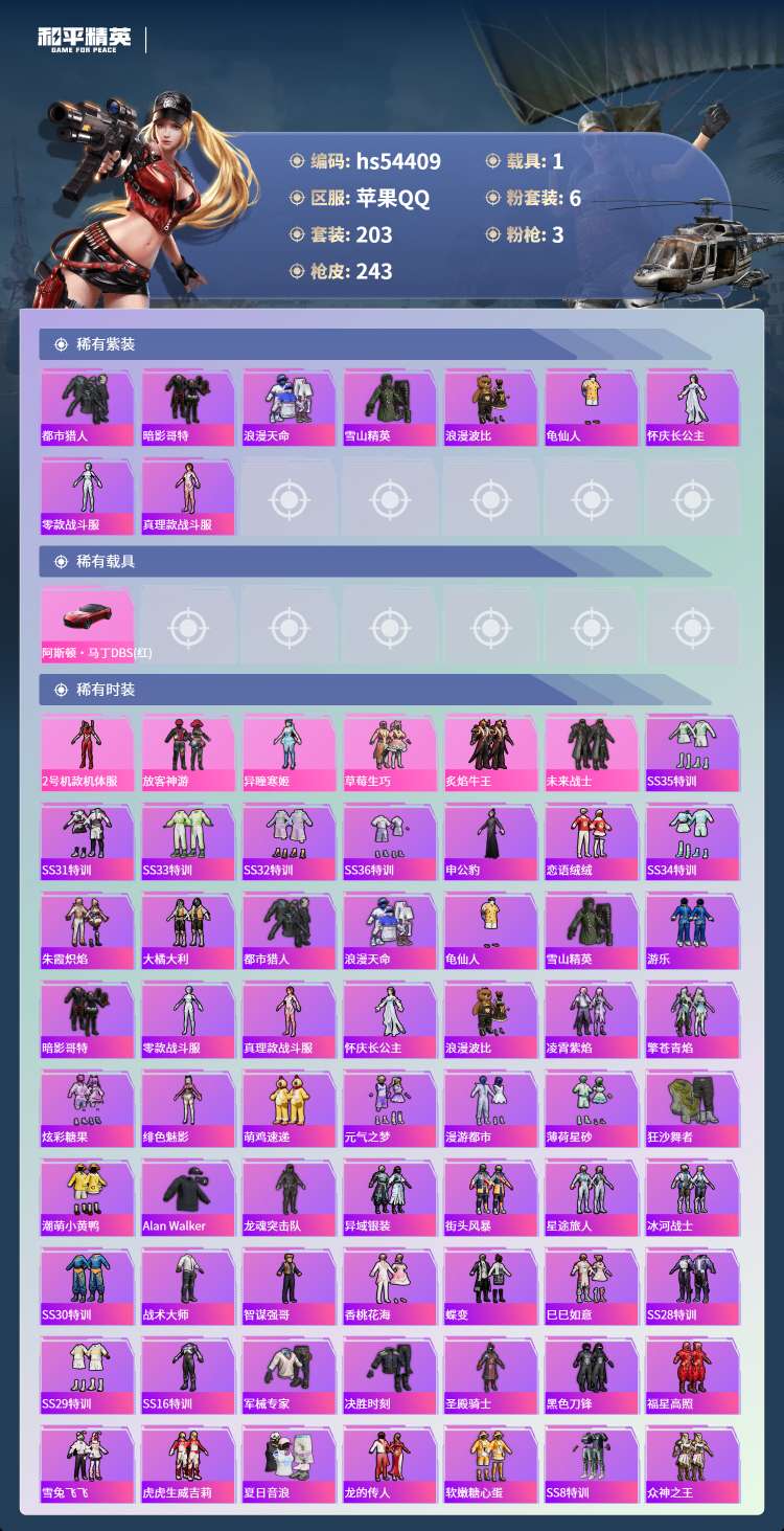 hs54409 苹果手Q-18王牌印记-6粉装-3特效枪-1载具-75459热力值-203套装-24