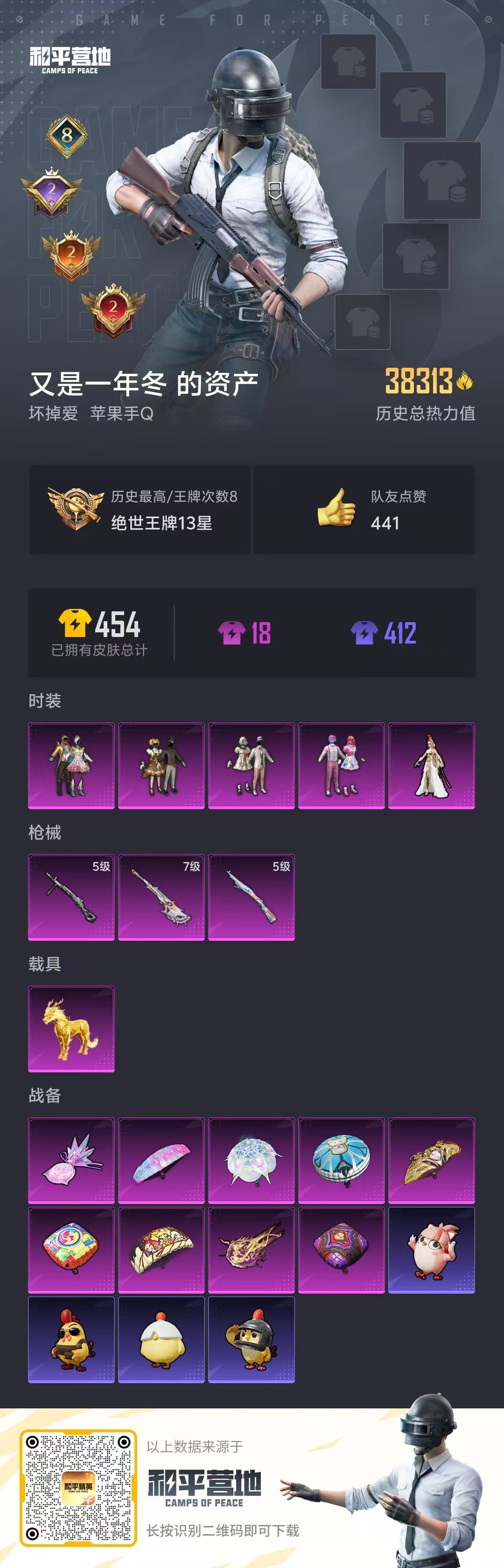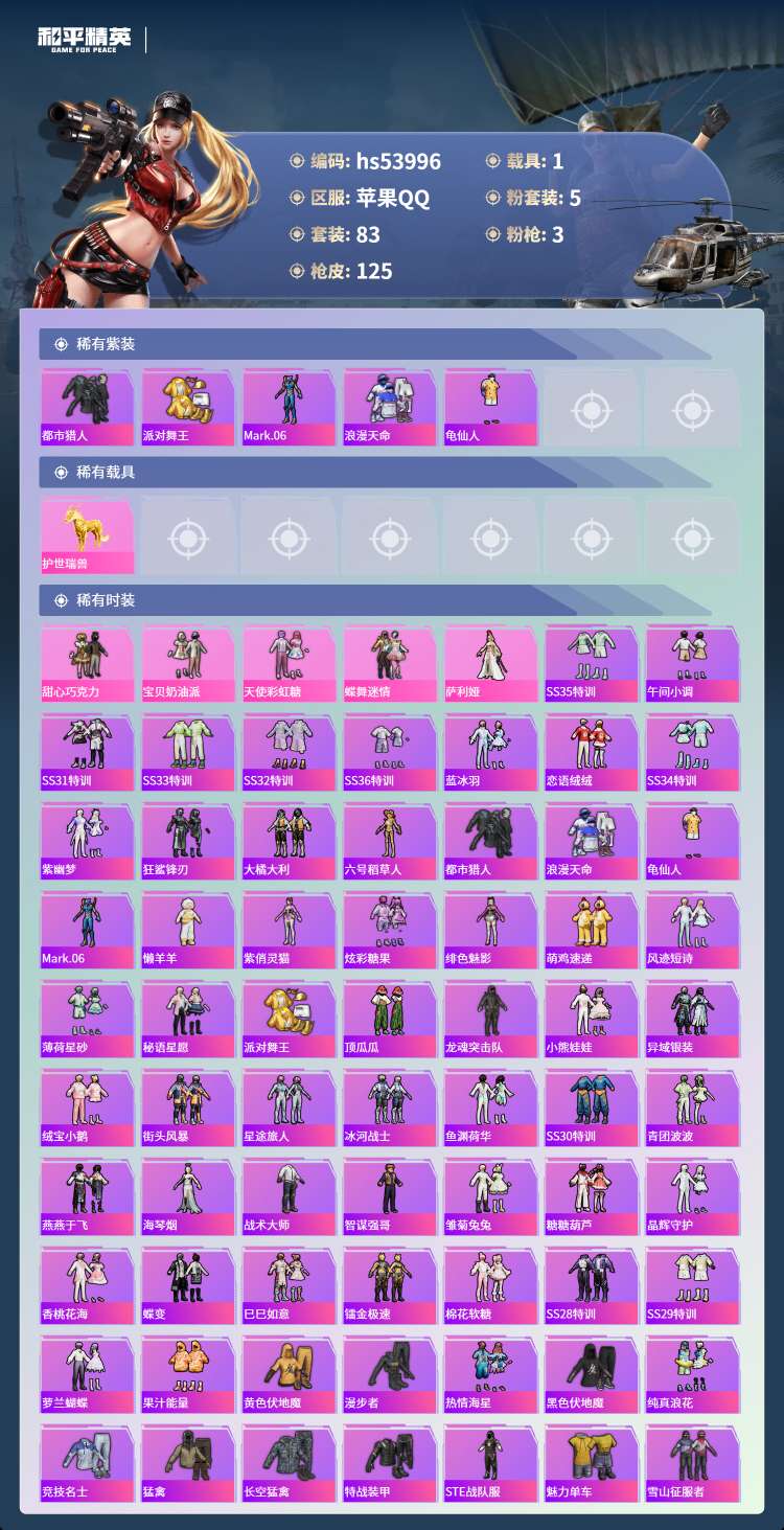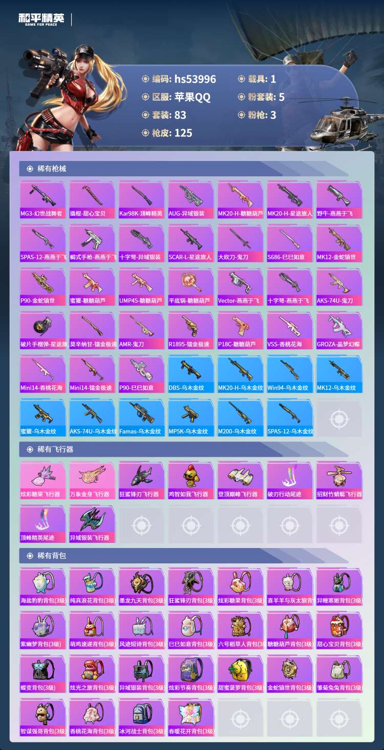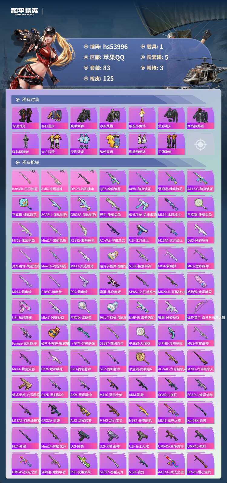 hs53996 苹果手Q-8王牌印记-5粉装-3特效枪-1载具-38313热力值-83套装-125枪