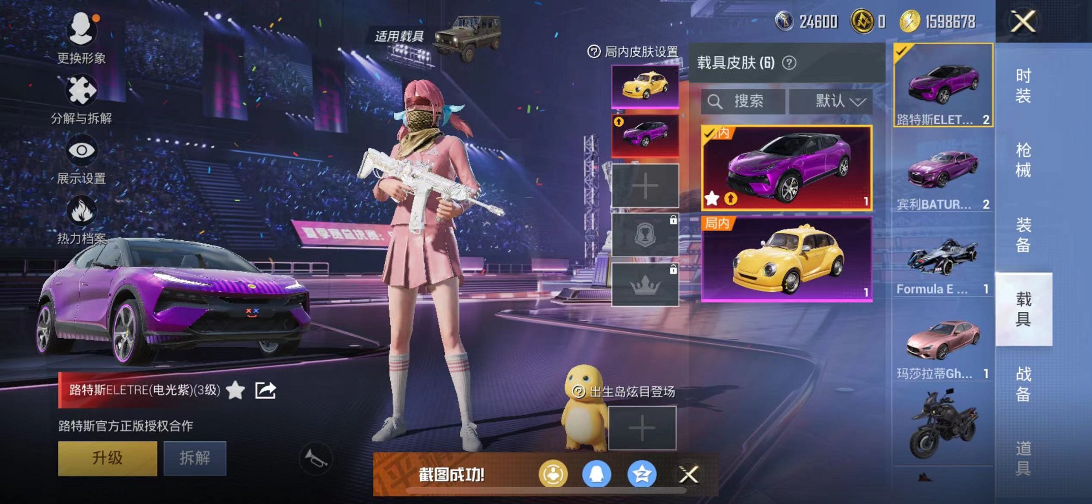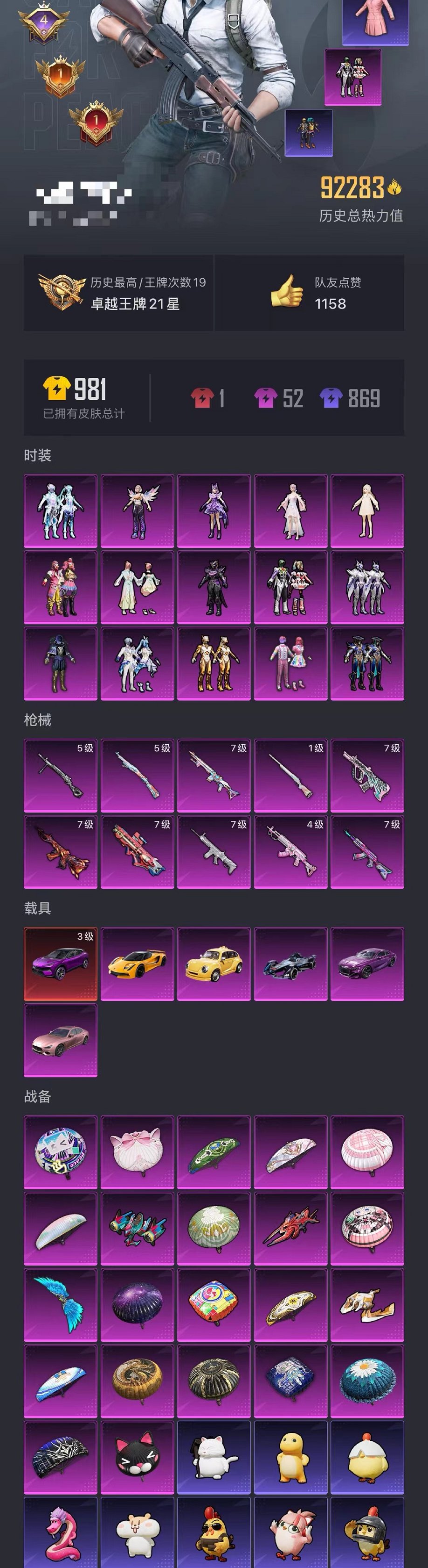 654-【双字ID老101 3级路特斯15粉装10特效枪6载具可秒换绑】 苹果Q区-92283热力值-19印记-202套装-252枪皮 【6载具】 路特斯EL紫色(3级) 路特斯EV黄色 玛莎拉蒂粉色 宾利BATTUR(极速紫) Formula E Gen2(幽光蓝) 越野奶龙龙【2稀有】 火箭少女101 奇异狩猎者【15粉装】 缤纷油彩(猪脸妹) 角色-严莉莉 天使彩虹糖 拂晓神骑 莲影清波 星云暗核 星之信仰 紫电风暴 碧穹智者 白勺歌姬 未来歌姬 灵感创作师 角色-烟云彩露 幻彩电音 角色