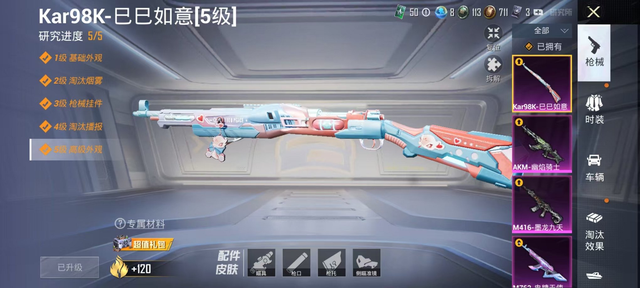 -可二次 3红装4级图卡盟欧若拉赵云9载具7特效枪3粉装