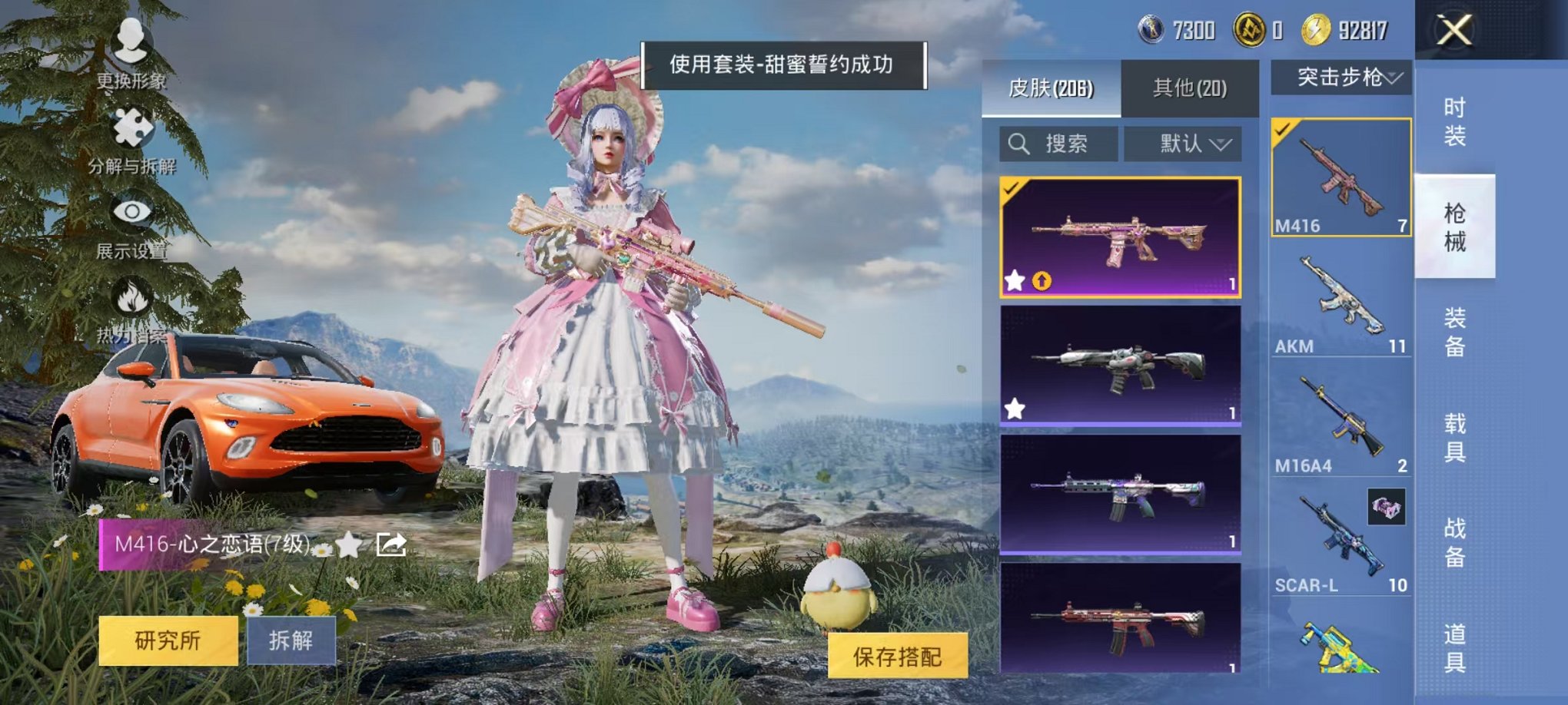 438-【女号梦幻火箭14粉装5特效枪6载具可秒换绑】 安卓Q区-83364热力值-3印记-201套装-205枪皮 【6载具】 玛莎拉蒂粉色 阿斯顿马丁X橙色 合金龙骨蓝色 双刃魅影绿色 黑曜夜骑 冰绡玉鳞【3稀有】 奇异狩猎者 浪客战士【14粉装】 梦幻火箭 宝贝奶油派 冰霜白皇 甜蜜誓约 心之恋语 极致幻想 草莓生巧 香水柠檬 蝶舞迷情 精灵迷巫 歌者泠鸢 迷蝶贵族 俏皮狐尾 角色-冷漠罗丽【5特效枪】 M416-心之恋语(7级) GROZA-香水柠檬(6级) Mk14-甜梦熊击(5级) D