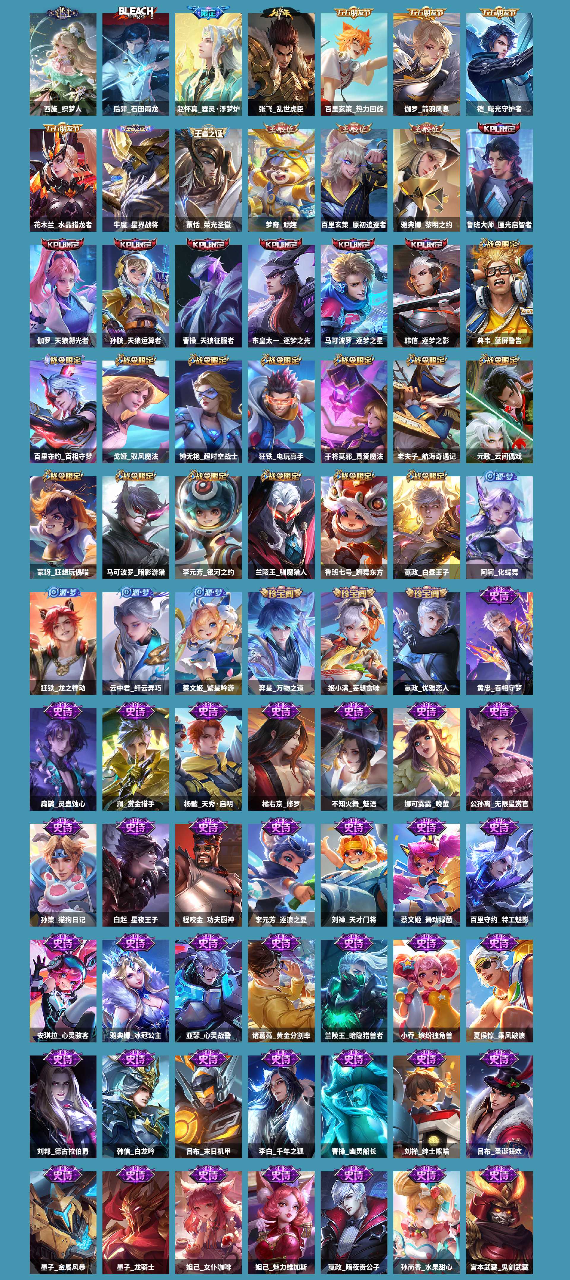 凯+李白典藏/2愿照/李逍遥/武圣/补天/诗剑行皮肤数量35