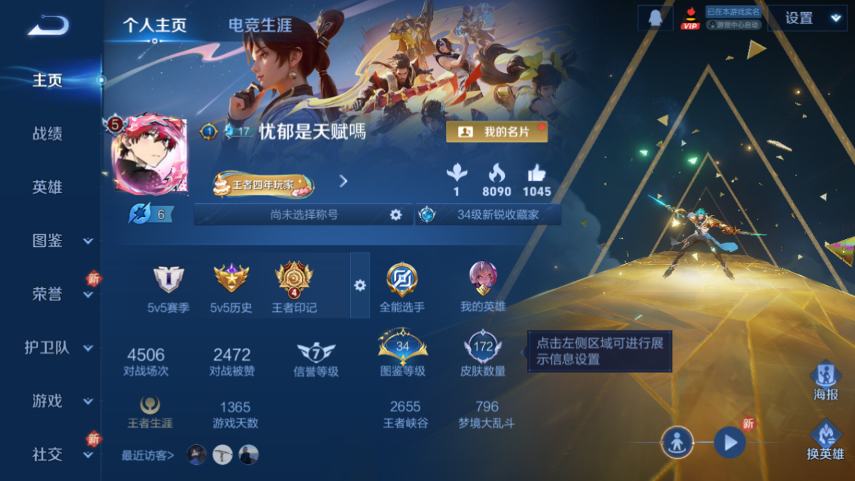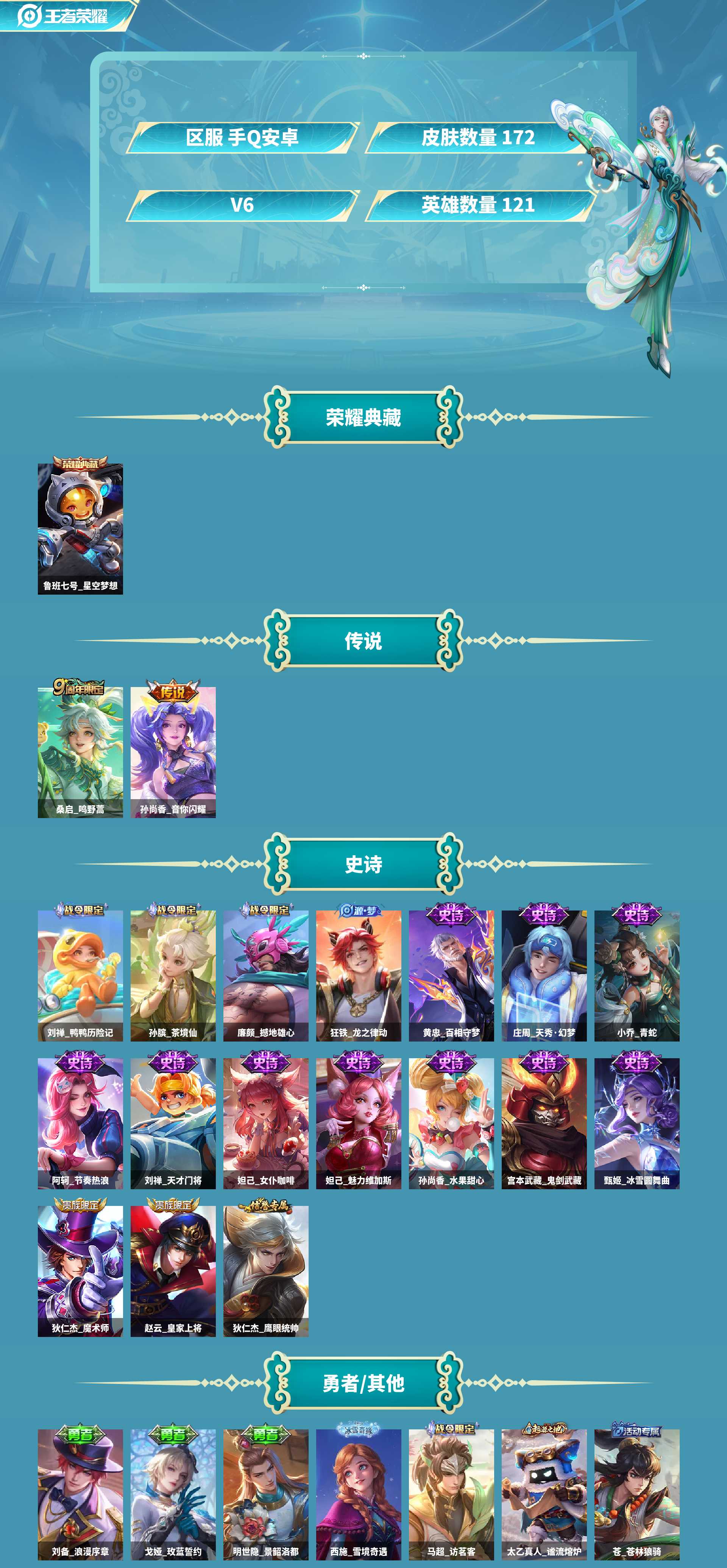 小射手!鲁班典藏+音你尚香皮肤数量172印记总数4V6永恒钻