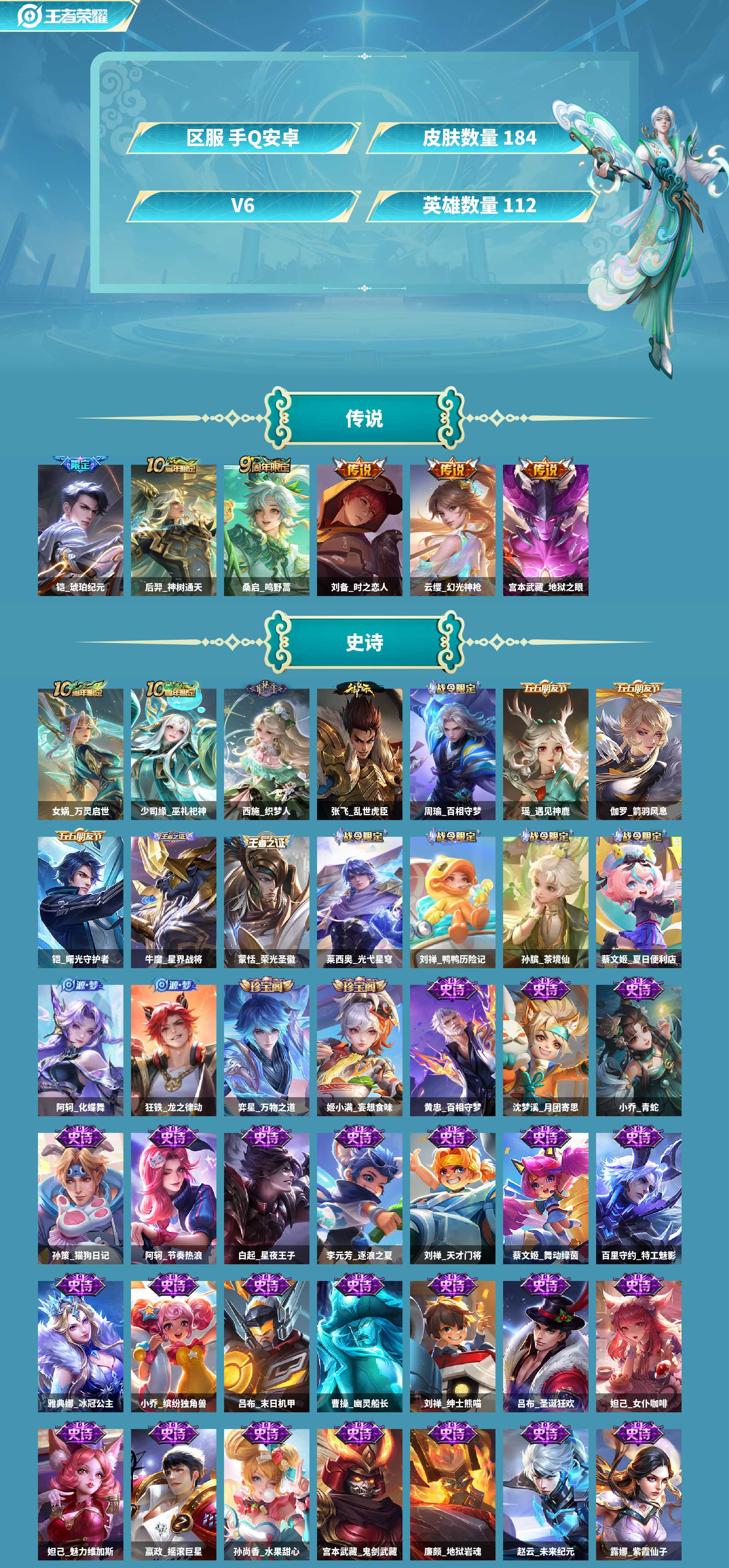 琥珀凯/时之思念刘备皮肤数量184印记总数8V6最强王者可修