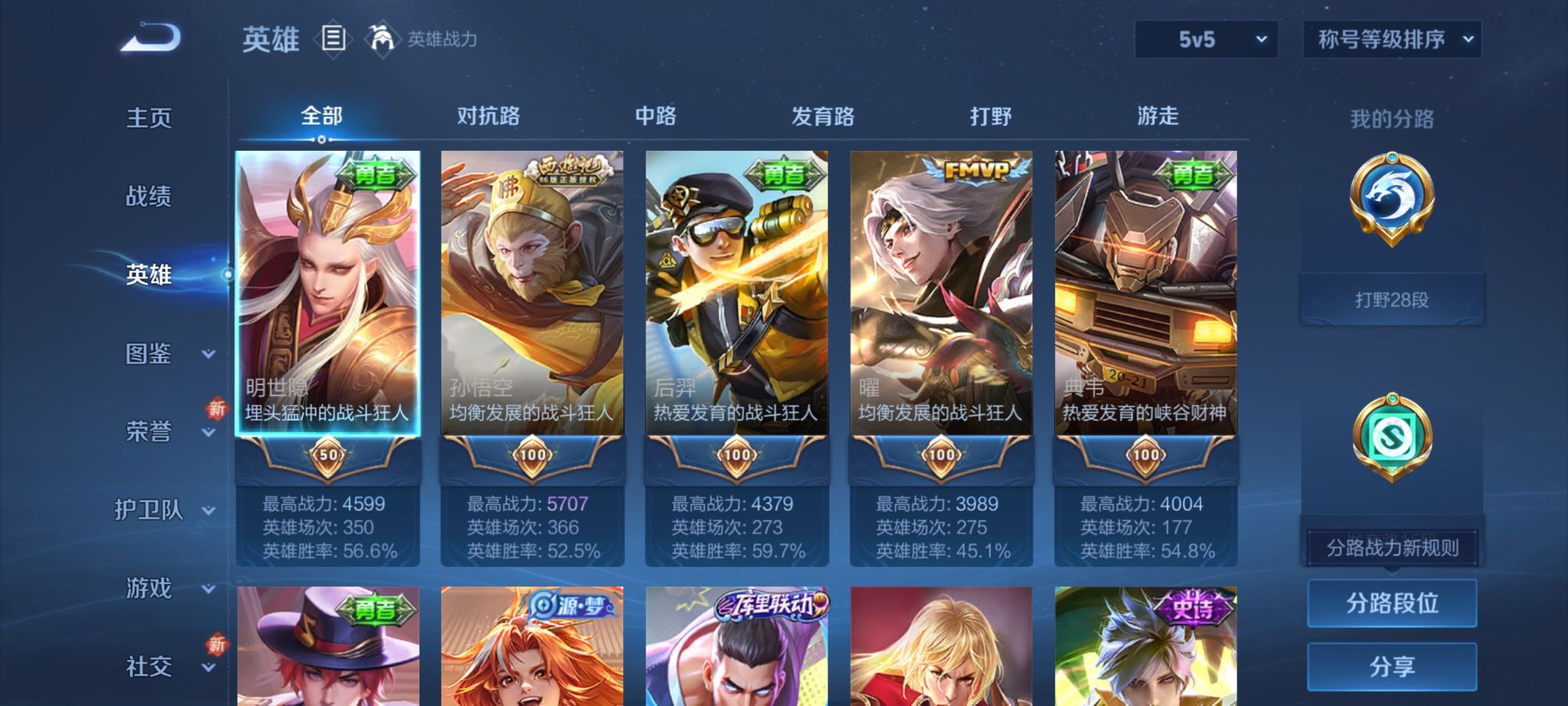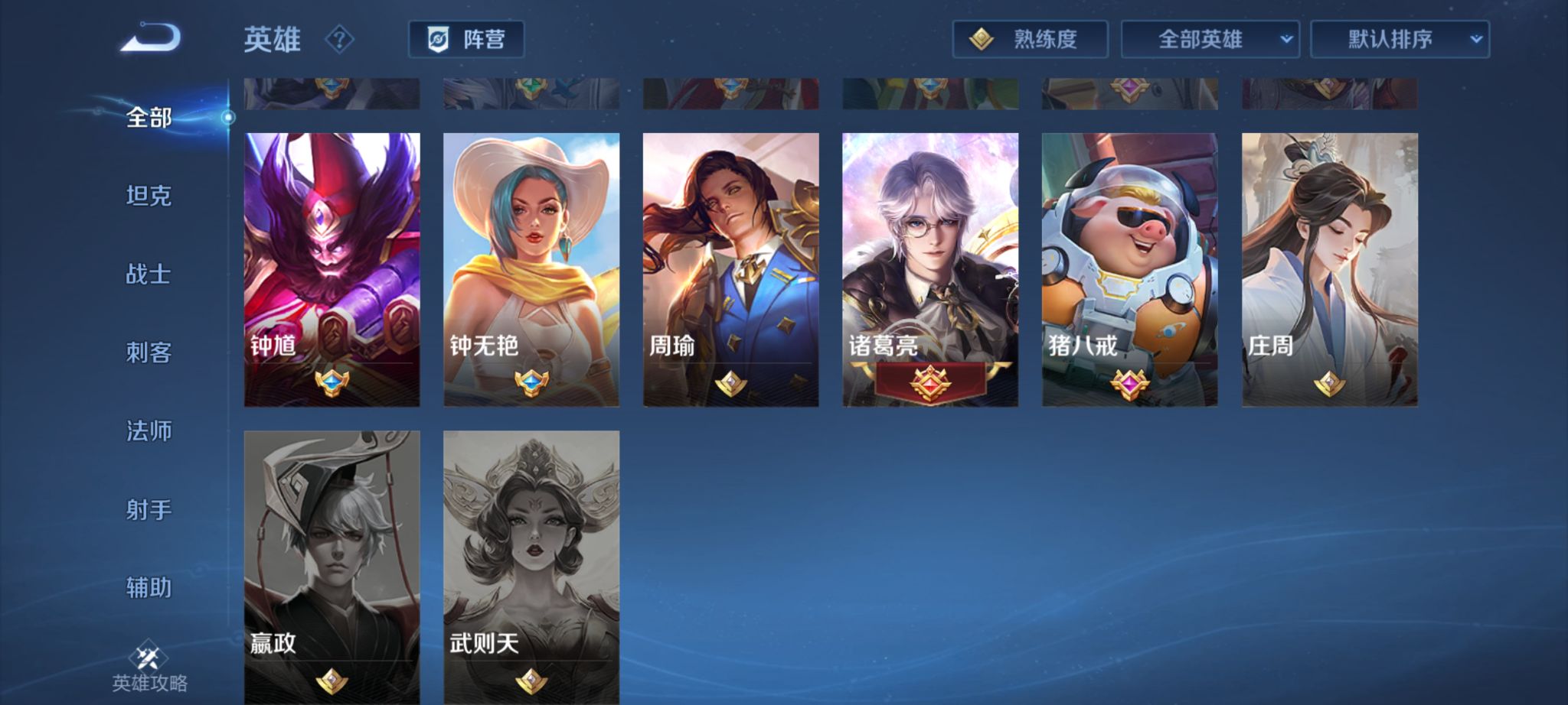 诸葛典藏+炽阳镜皮肤数量262印记总数7V7至尊星耀可修改荣