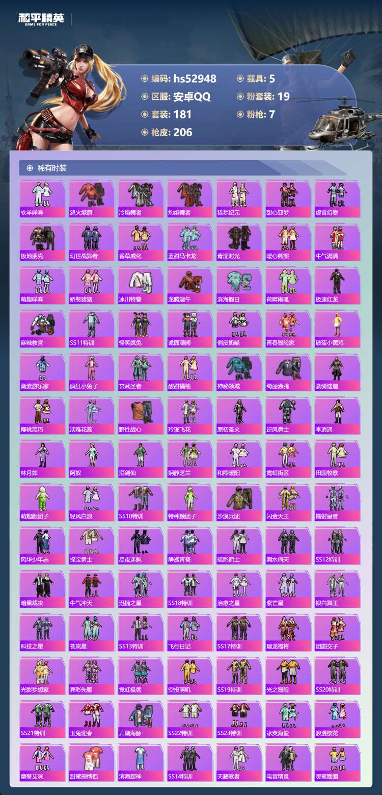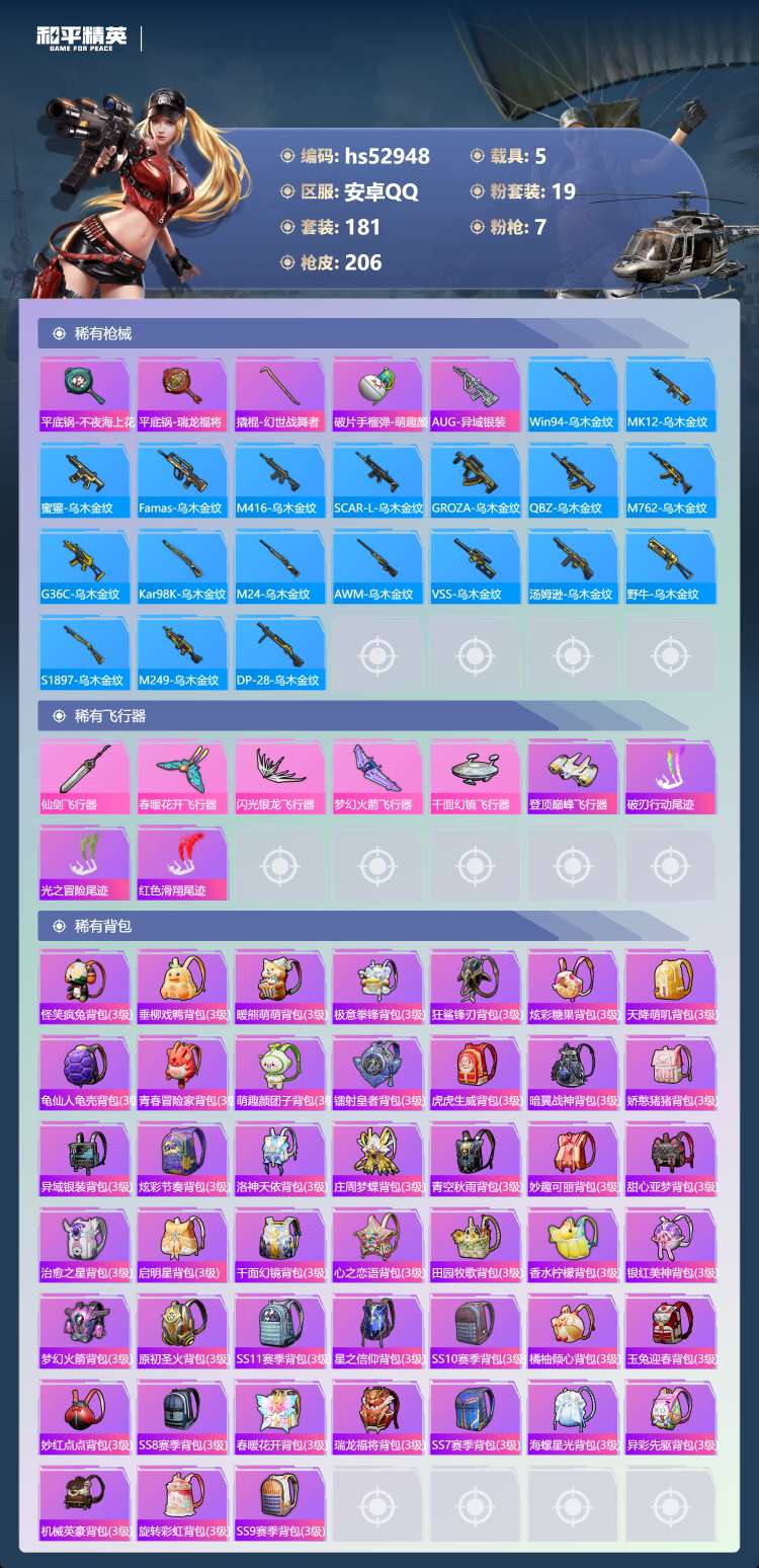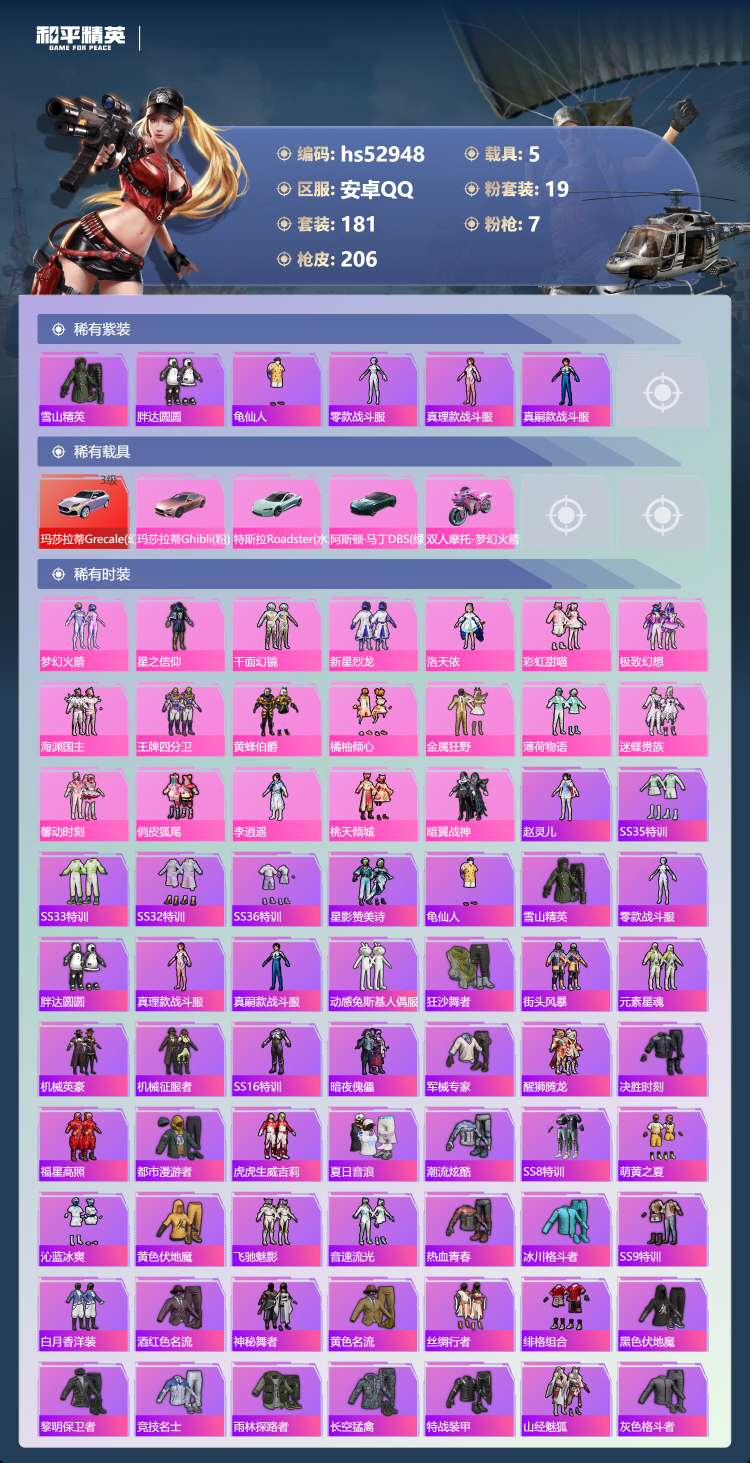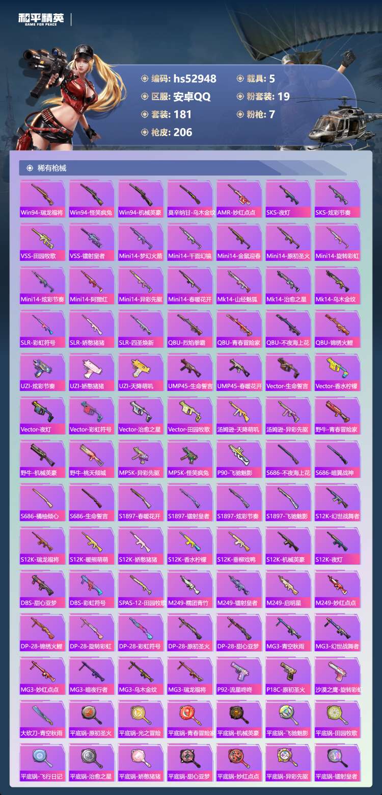 hs52948 安卓手Q-10王牌印记-19粉装-7特效枪-5载具-热力值-181套装-2