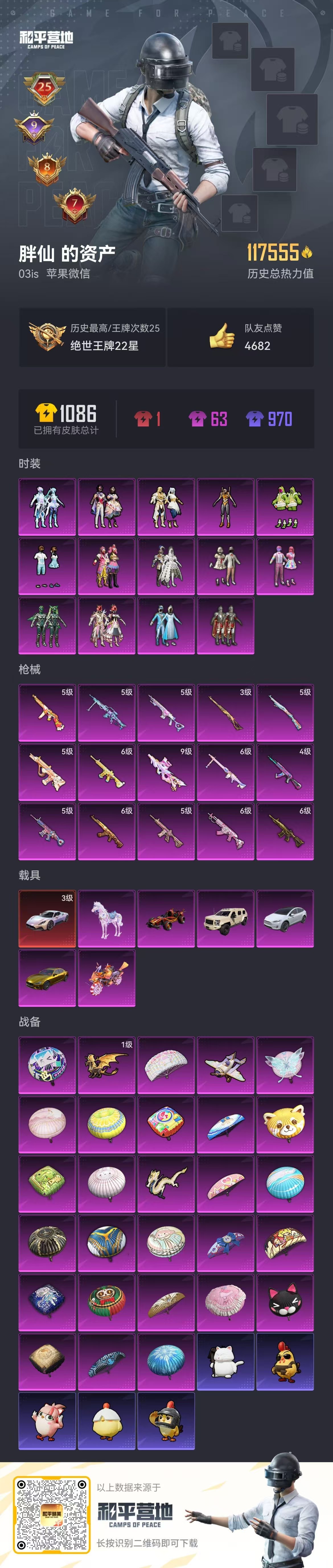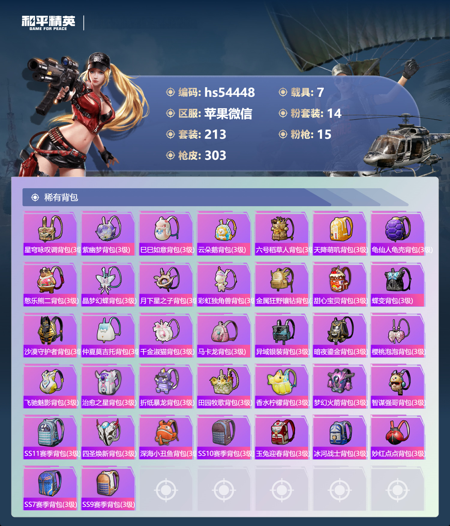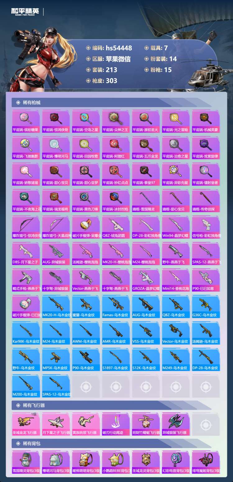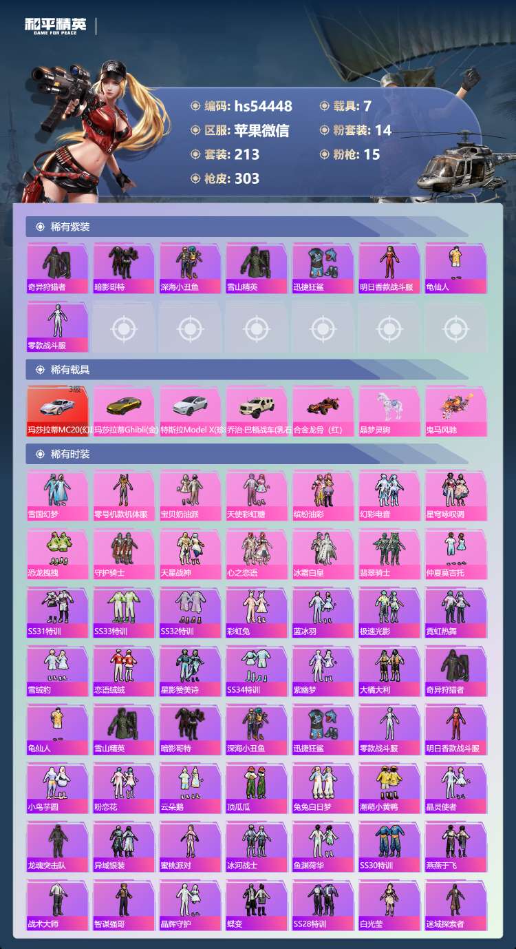 hs54448 苹果v-25王牌印记-14粉装-15特效枪-7载具-热力值-213套装