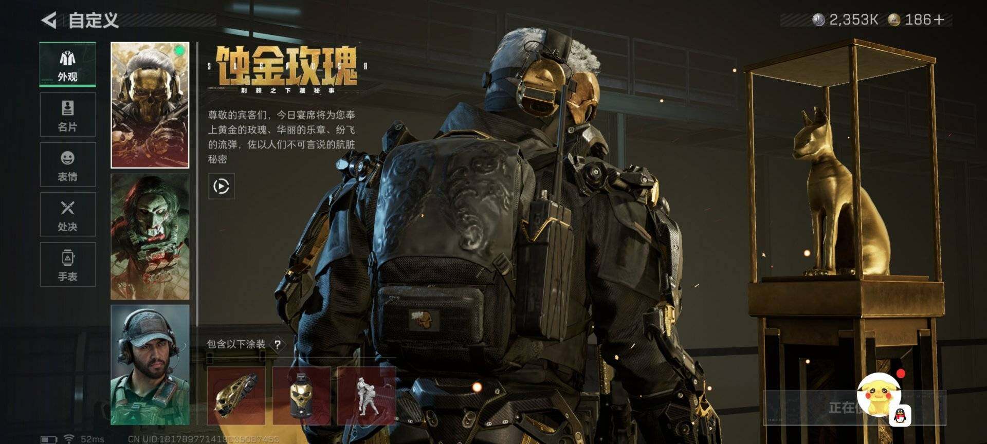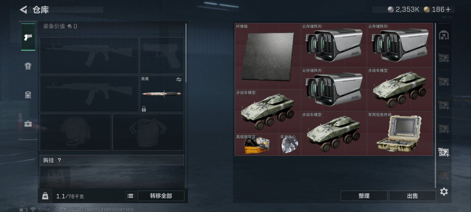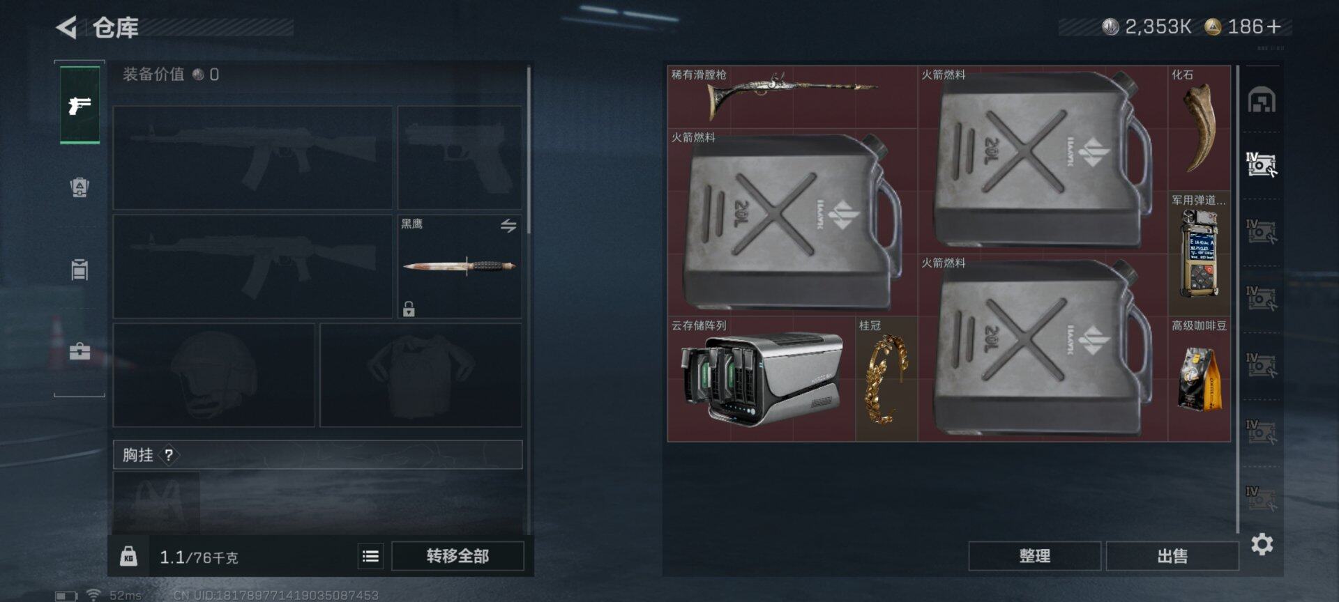 总资产153.8M哈弗币2353K近战武器-黑鹰红狼蚀金玫瑰,红狼电锯惊魂,骇爪维什戴尔无无AW子弹0发三角币186仓库LV.7进阶安全箱靶场LV.3训练中心LV.4统统拿走,红狼-蚀金玫瑰,红狼-电锯惊魂,骇爪-维什戴尔,近战-黑鹰,挂饰-统统拿走