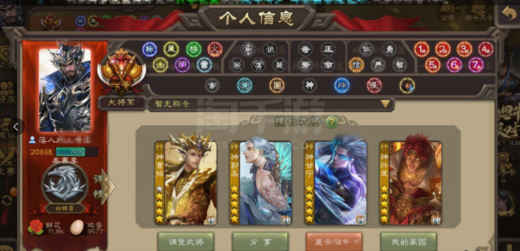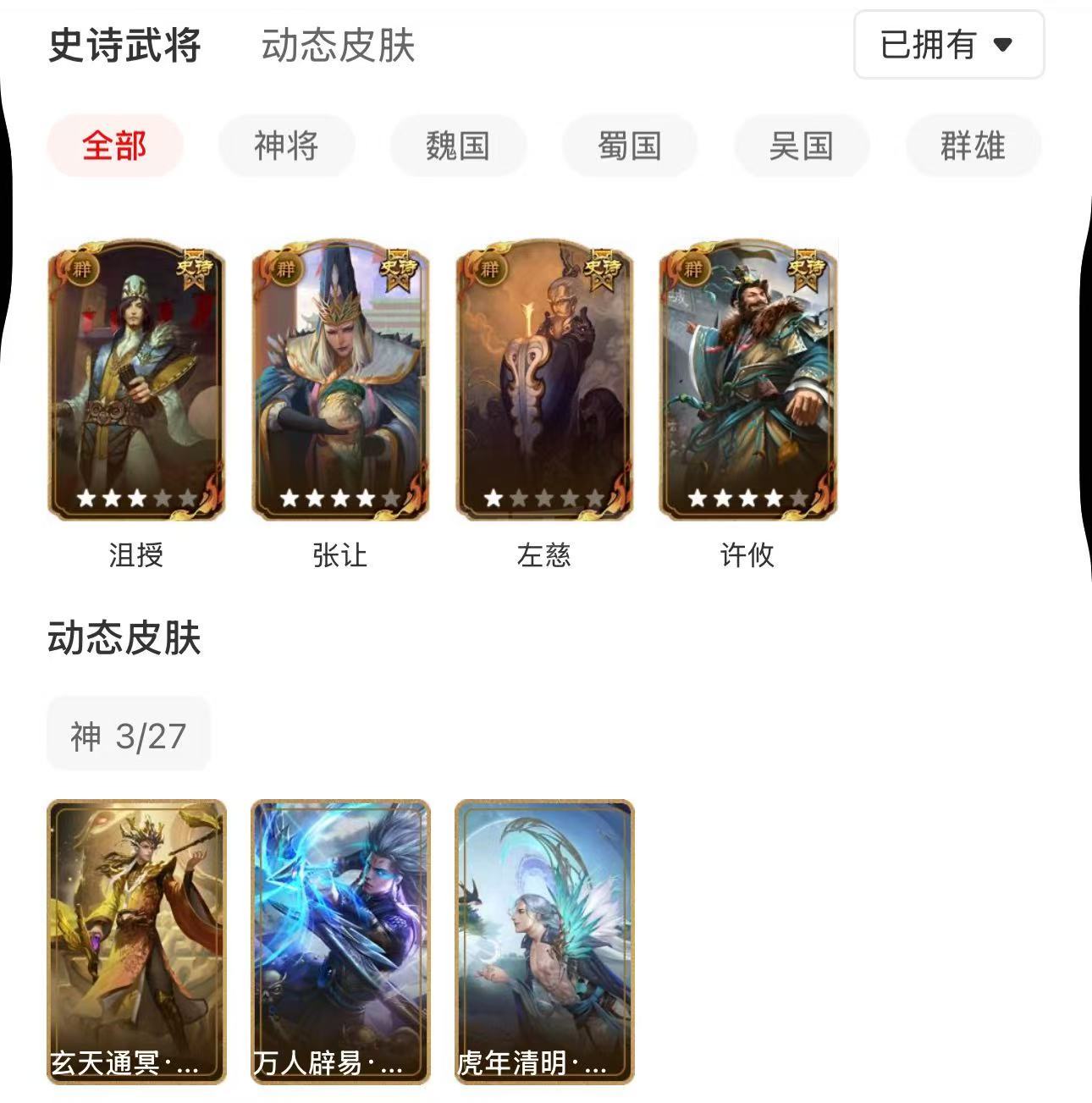 v13一等大将军,30宝珠,80多史诗武将,70多动态皮肤,6权一武将,超多权2权3