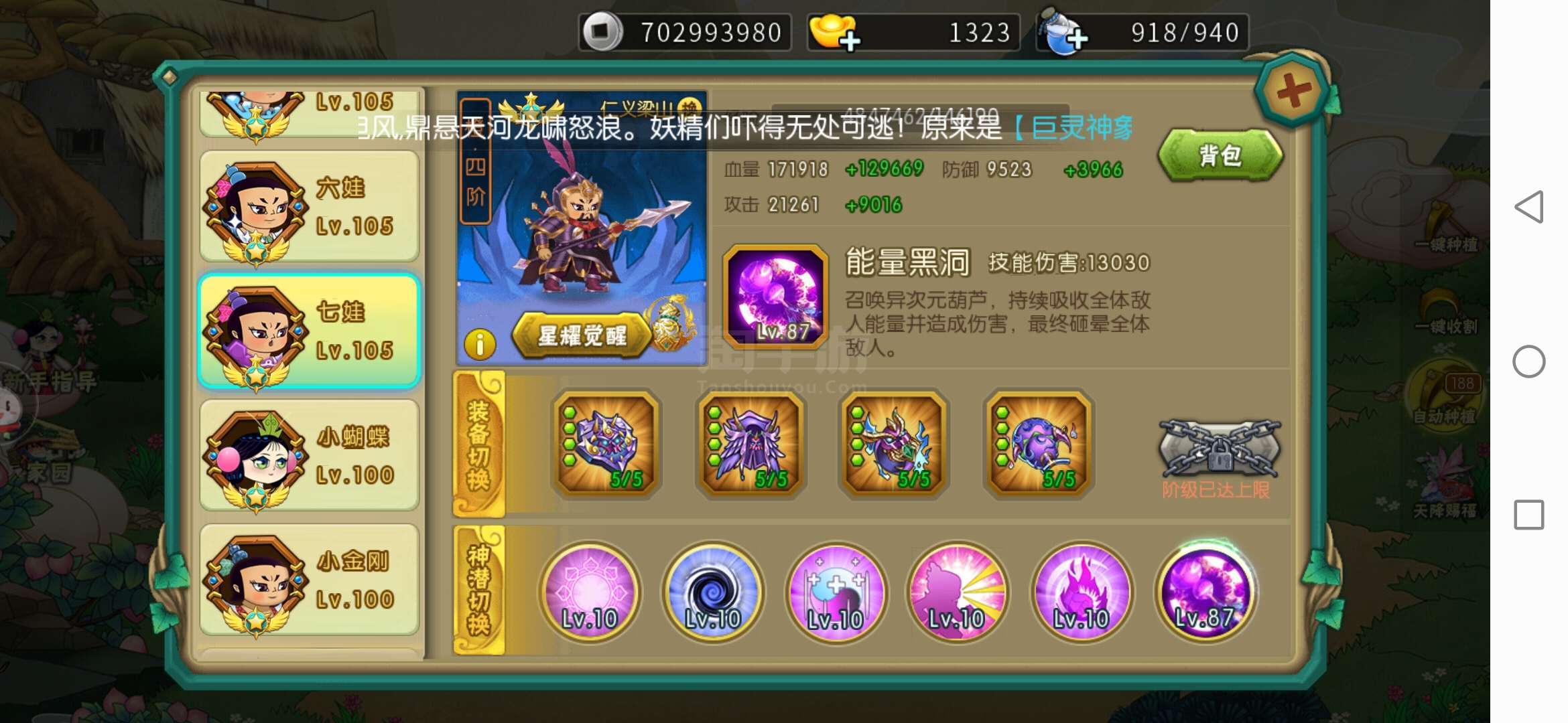 神兽有9只,大象觉醒2介神兽了,英雄全部橙4满装