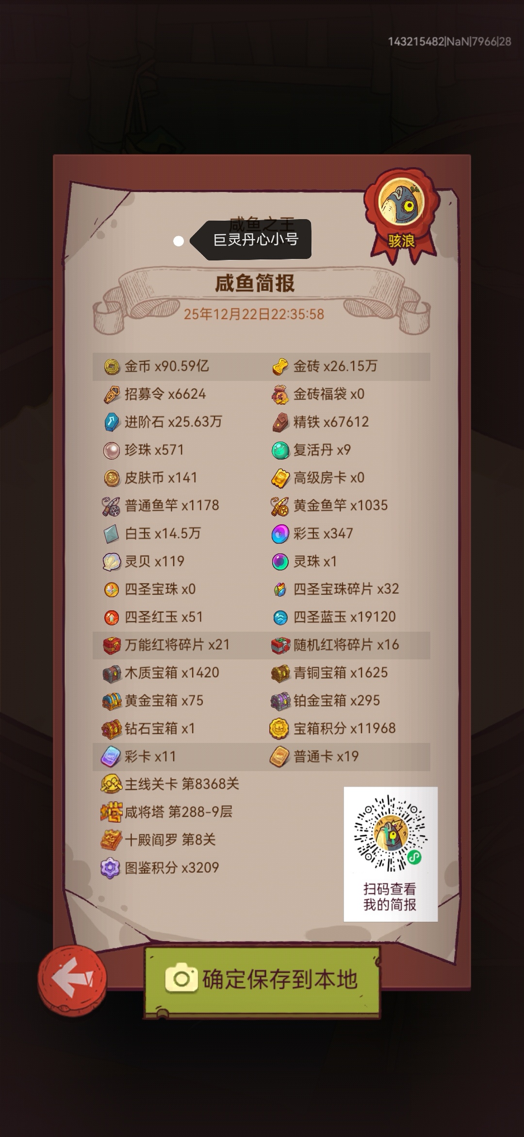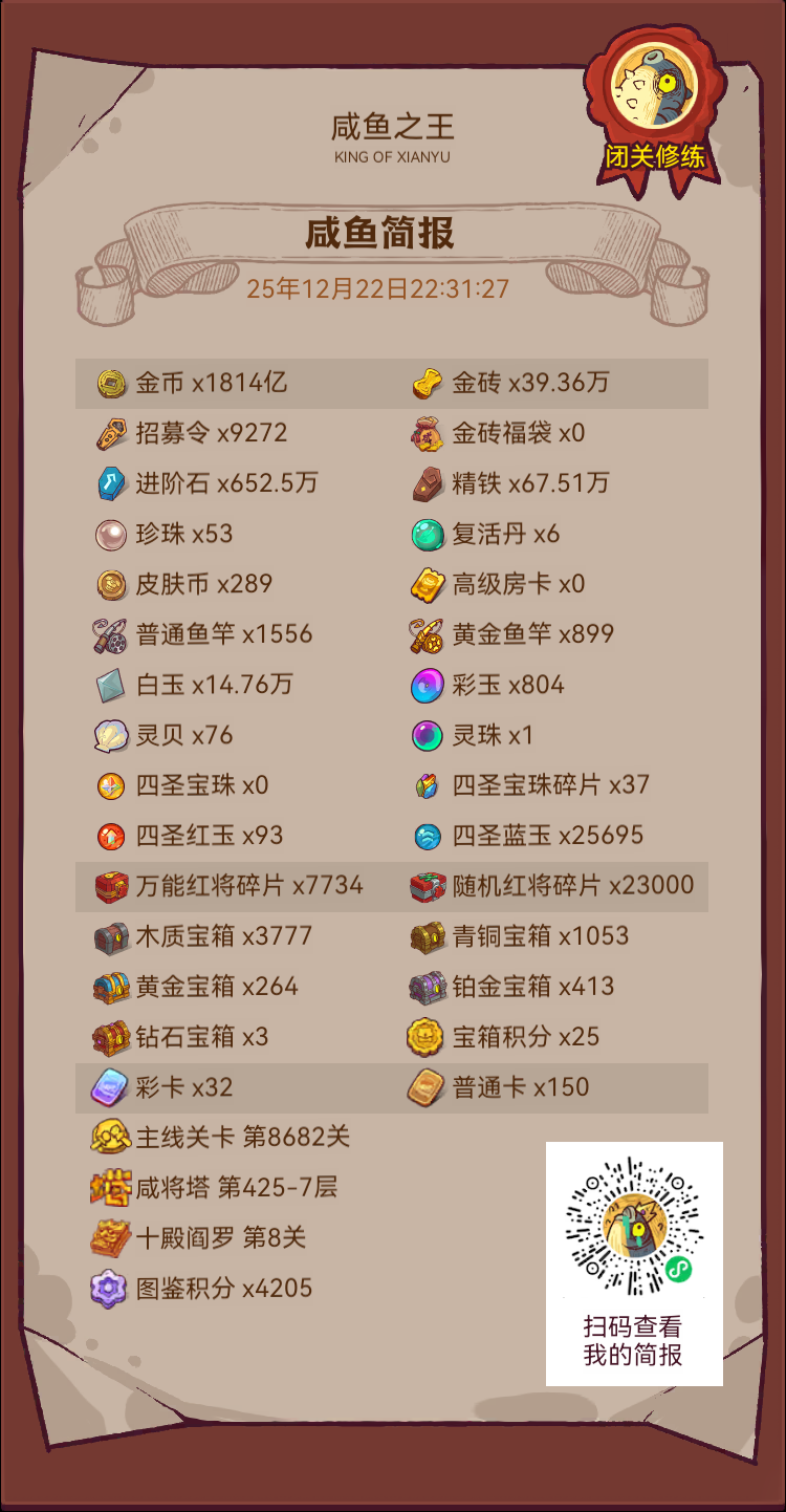 资源多6金鱼,还有8组彩玉可以洗练,送二金鱼合力小号,大号元旦7金鱼,可以免费弄永久扫码