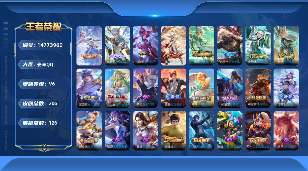 【14773960】[14773960]12月24日后可以改手机【精品号手慢无】贵族V6,性价比号,满级铭文,孙尚香星传说,最初的交响,天机白泽,李小龙,至尊宝,齐天大圣,鸣野蒿,愿照·九州拓