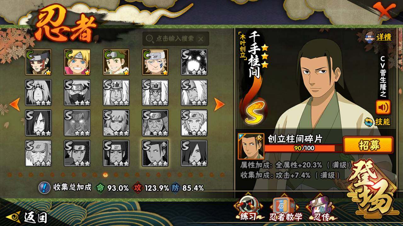 V9 1403万战力 18S-39A 创立柱间90片 止水70片 白面具52片
