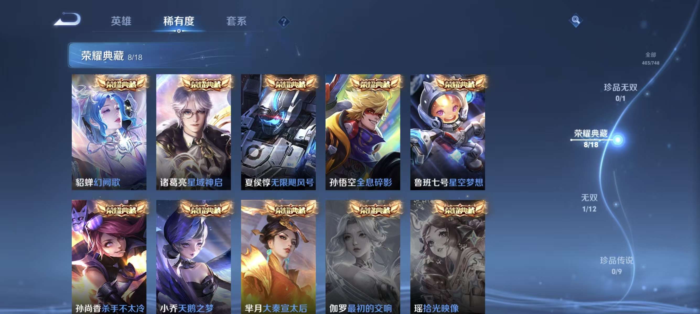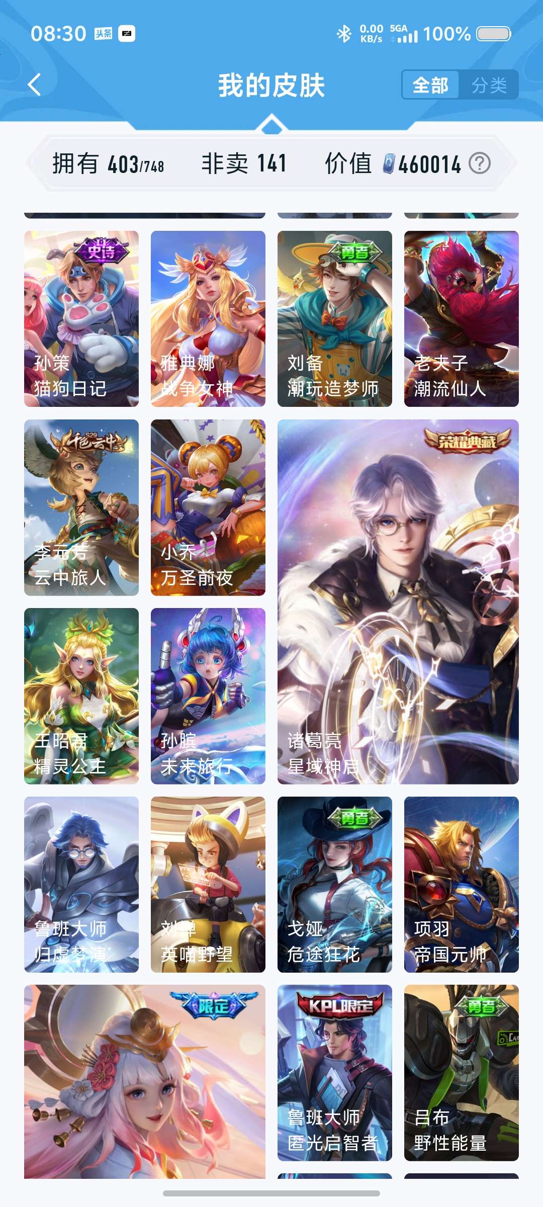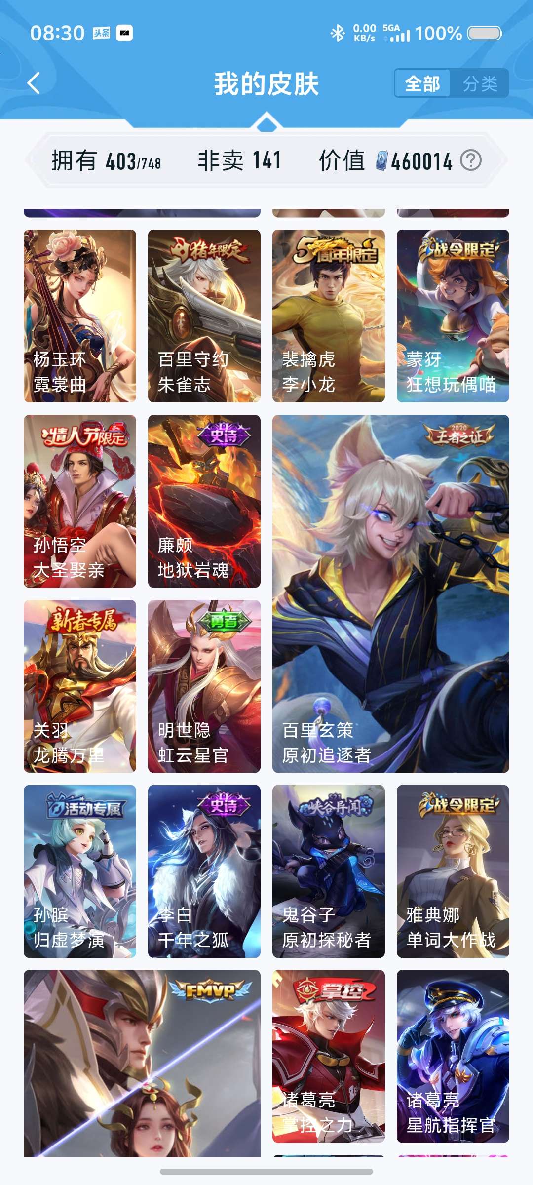 安卓微信-8典藏-45传说-1无双-403皮肤-128英雄出V10号,价格可聊,低于2000别来