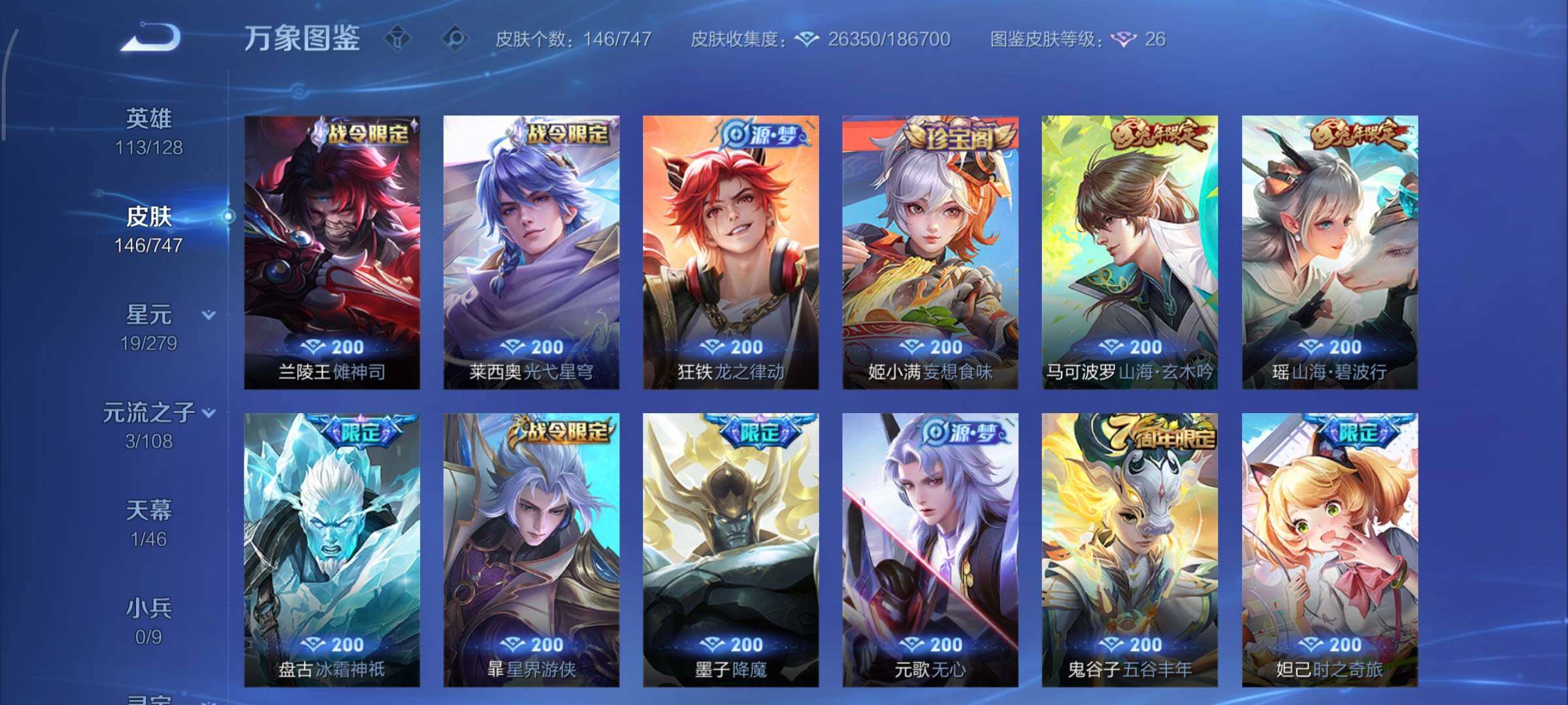 可换绑【V7精品号 四典藏 浮生妄 兔年限定 多传说限定质量号】 钱包无法注销介意勿拍 5按键 1王者印记 五级铭文70 可二次CD15376 安卓Q-V7-146皮肤-4典藏皮肤-8传说-44史诗【英雄全皮】:李信全皮,夏洛特全皮【荣耀典藏】:孙悟空全息碎影,孙尚香杀手不太冷,李白鸣剑曳影,铠银白咏叹调【传说皮肤】:夏洛特浮生妄,伽罗炽翼辉光,李信山海炽霜斩,吕