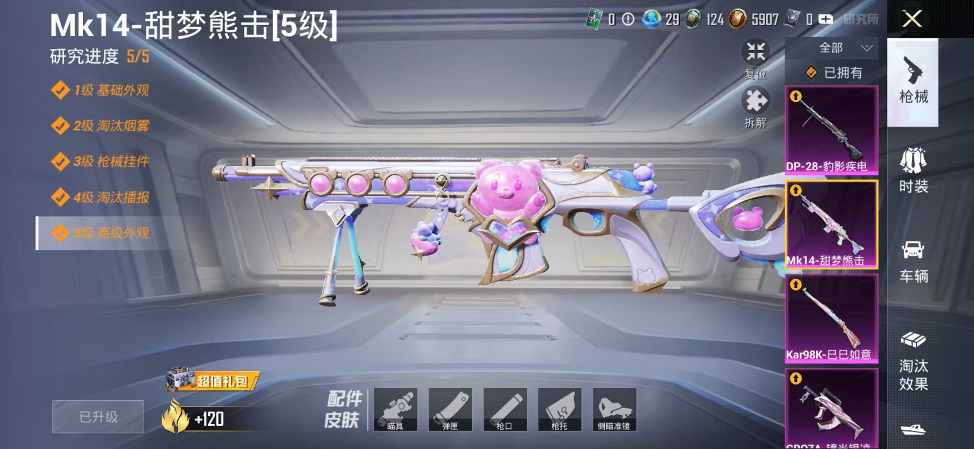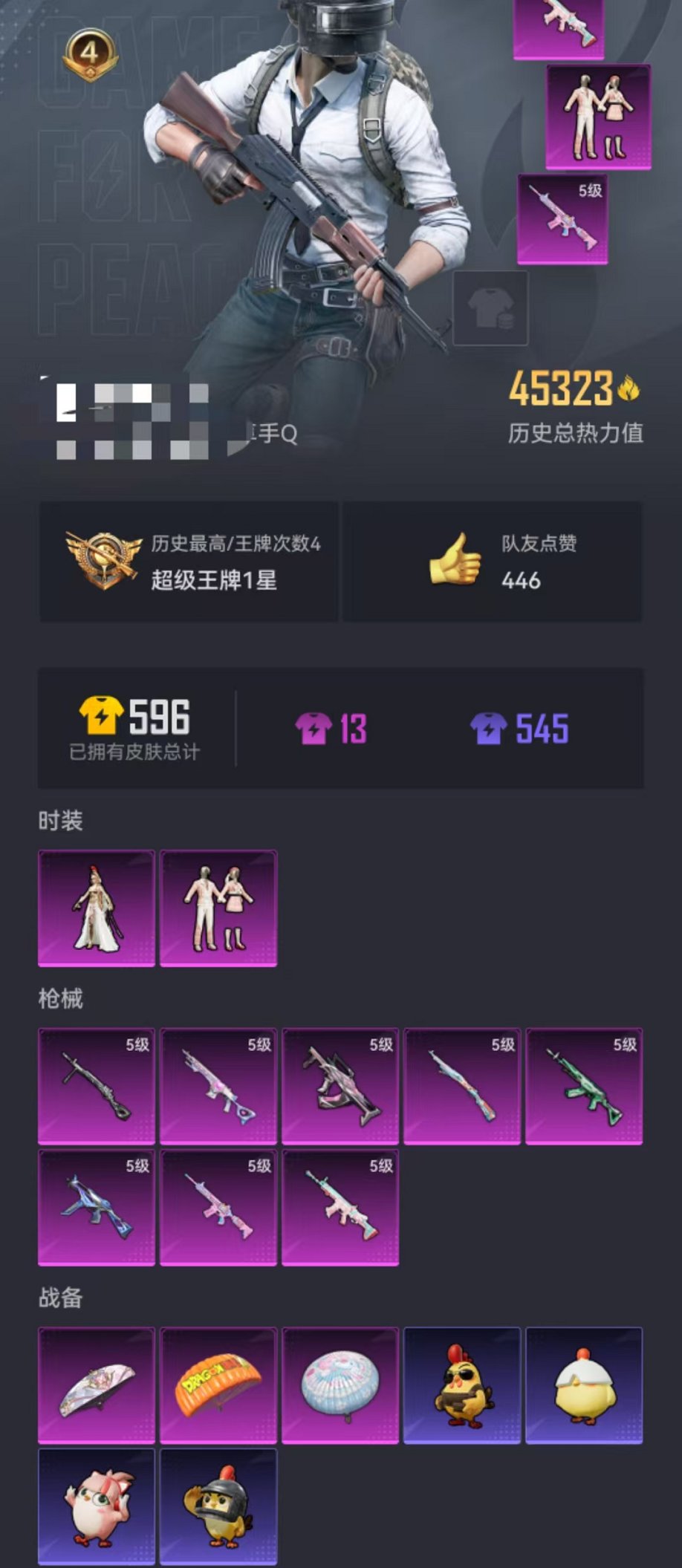 529-【女号2粉装8特效枪可秒换绑】 安卓Q区-45323热力值-4印记-128套装-180枪皮 【2粉装】 第五大道 角色-萨利娅【8特效枪】 SCAR-L-锦绣绵绵(5级) M416-电玩时刻(5级) UMP45-量子极限(5级) M762-青锋波束(5级) Mk14-甜梦熊击(5级) GROZA-镜光银凌(5级) Kar98K-巳巳如意(5级) DP-28-豹影疾电(5级)【29热门】 M416-蓝色火焰 GROZA-彩虹符号 长空猛禽 甜蜜熊情侣 牛气冲天 霓虹街区 懵萌河马 S686