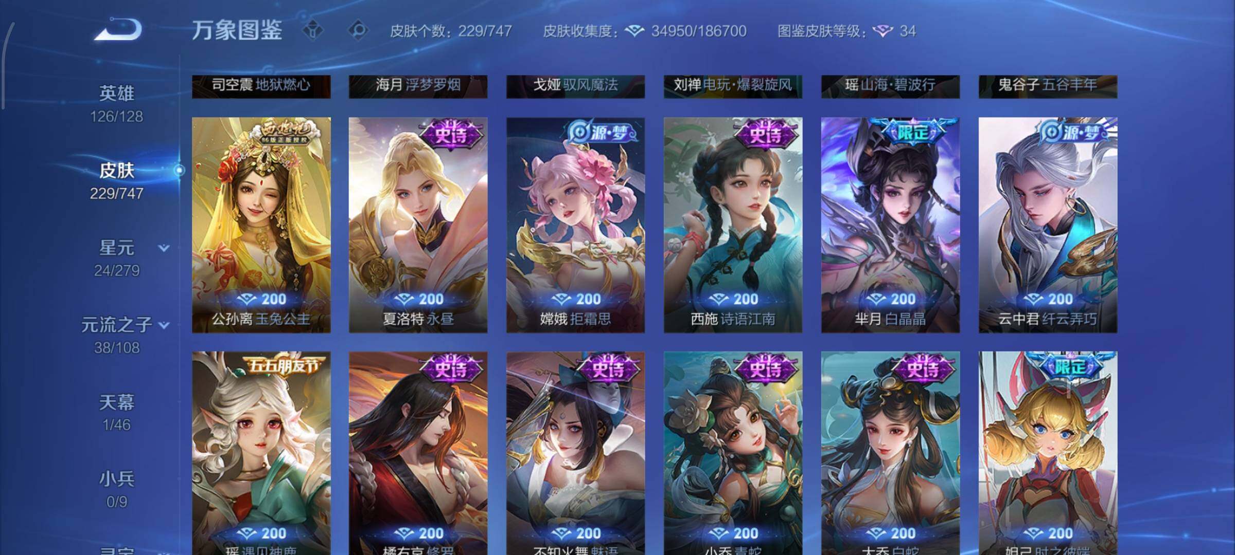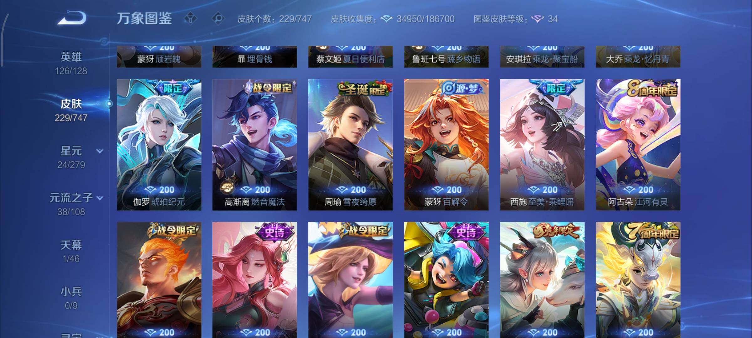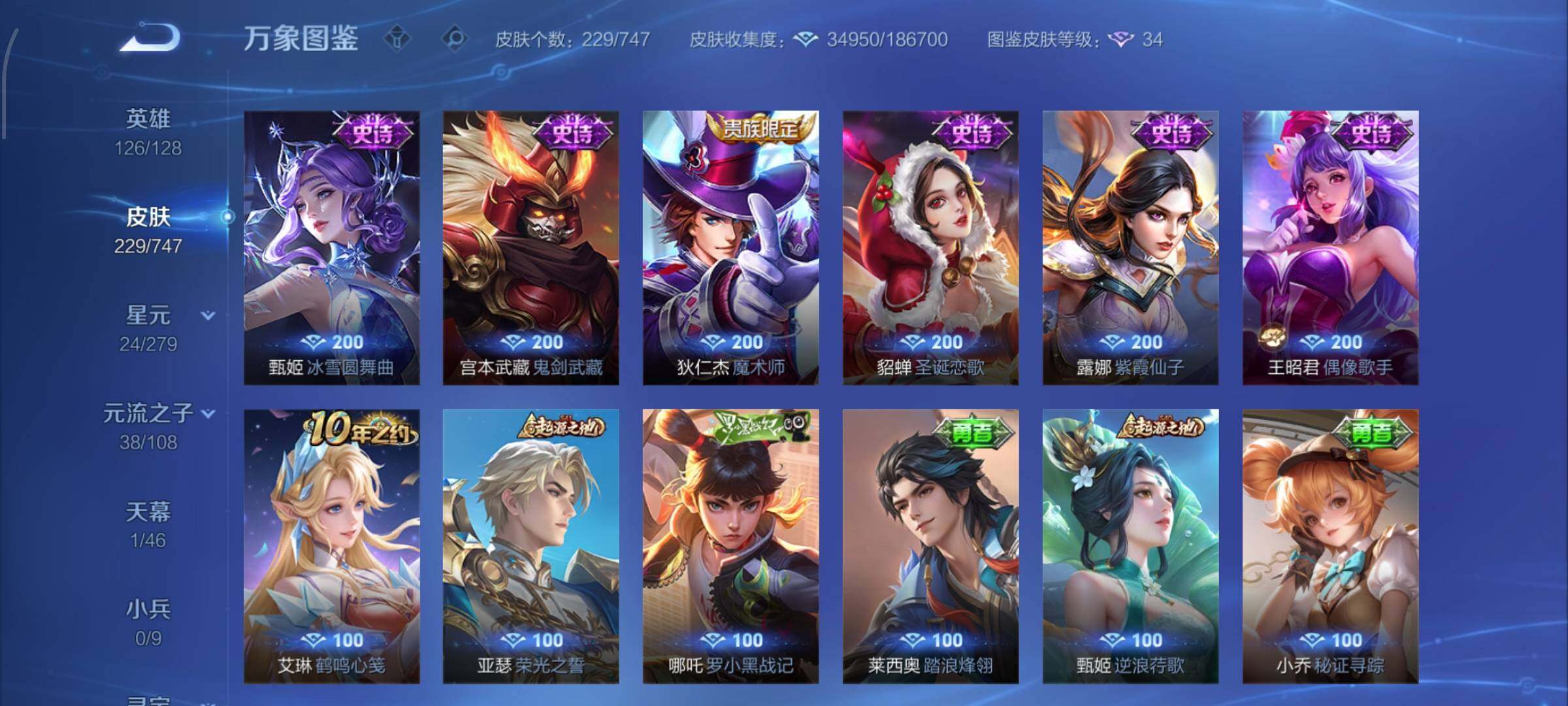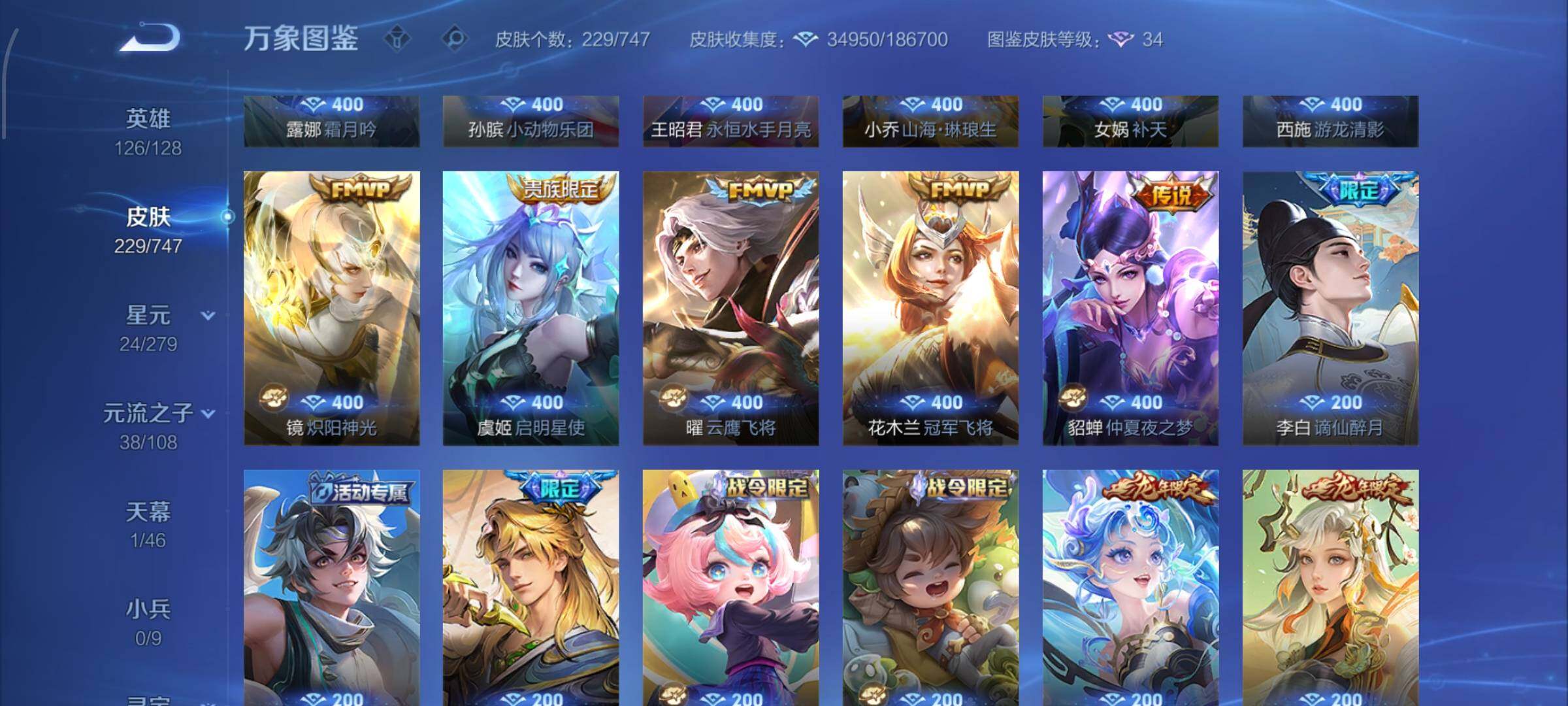 安卓Q-126英雄-229皮肤-3王者印记-100铭文-贵族积分6w【贵族8