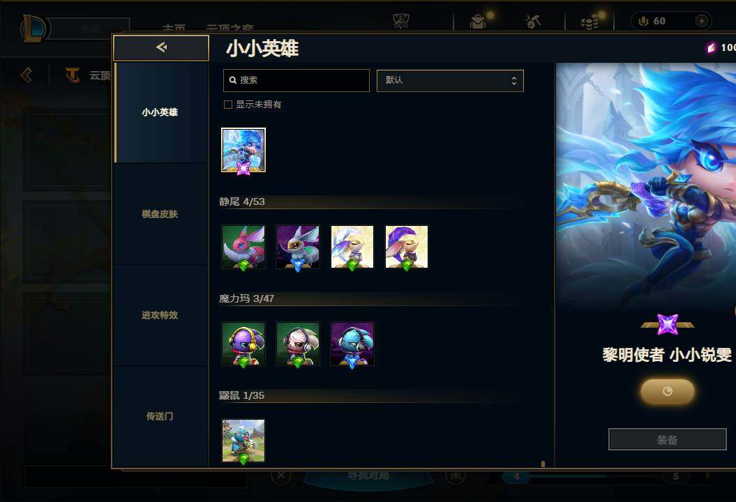 172英雄/503皮肤/9神话/55限定/15臻彩/224炫彩/48传说/142史诗/未定级账号等级:521/