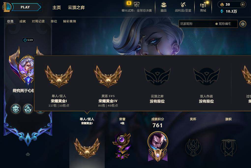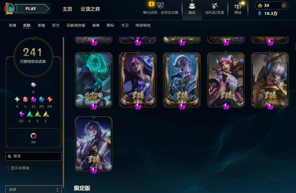 168英雄/241皮肤/1终极/11神话/26限定/7臻彩/66炫彩/26传说/52史诗/黄金账号等级:539/