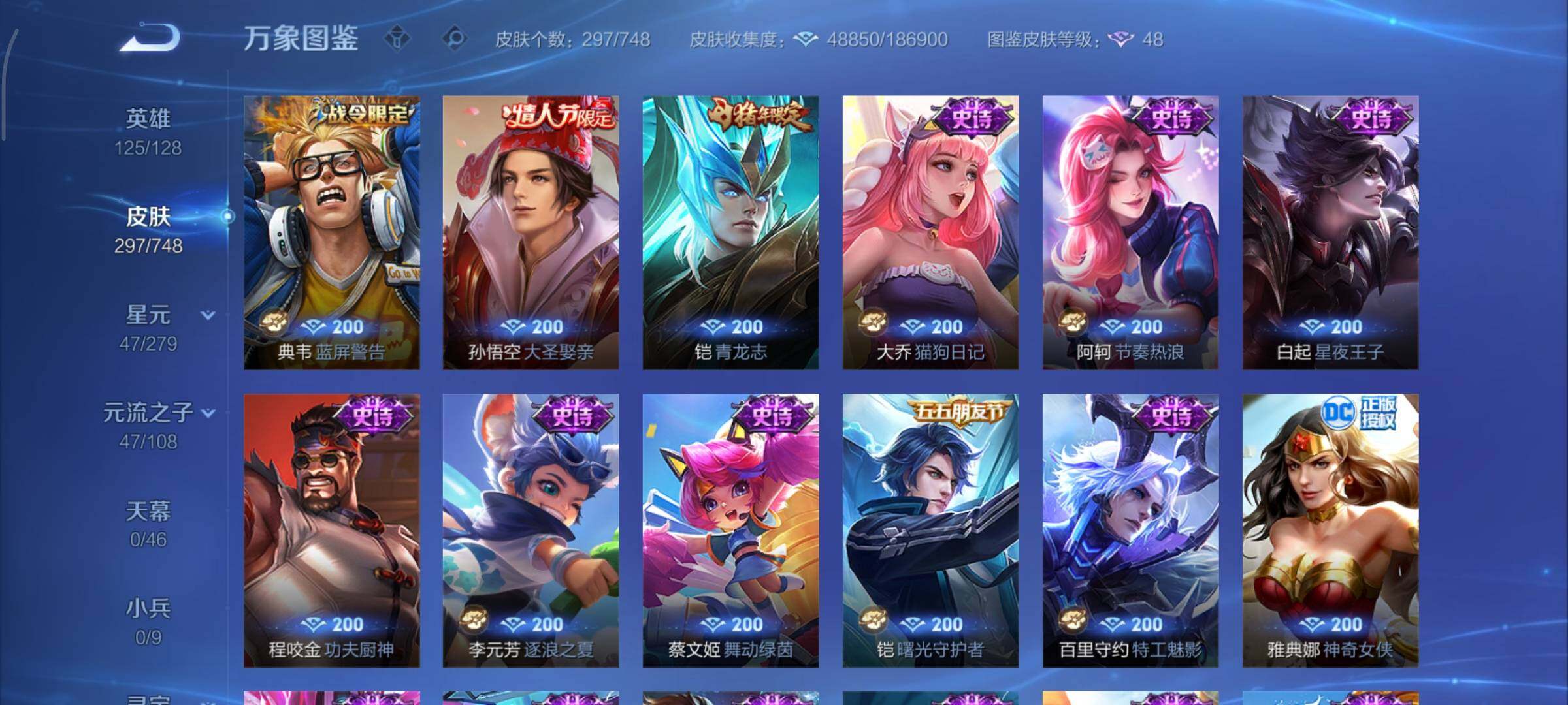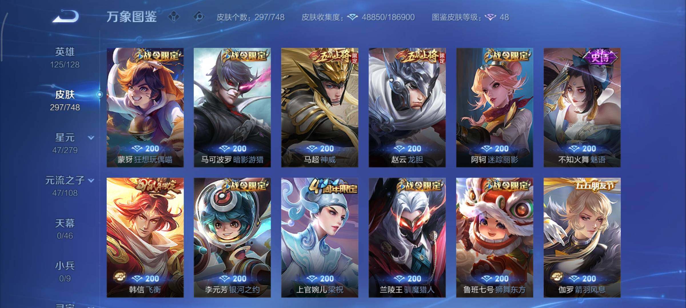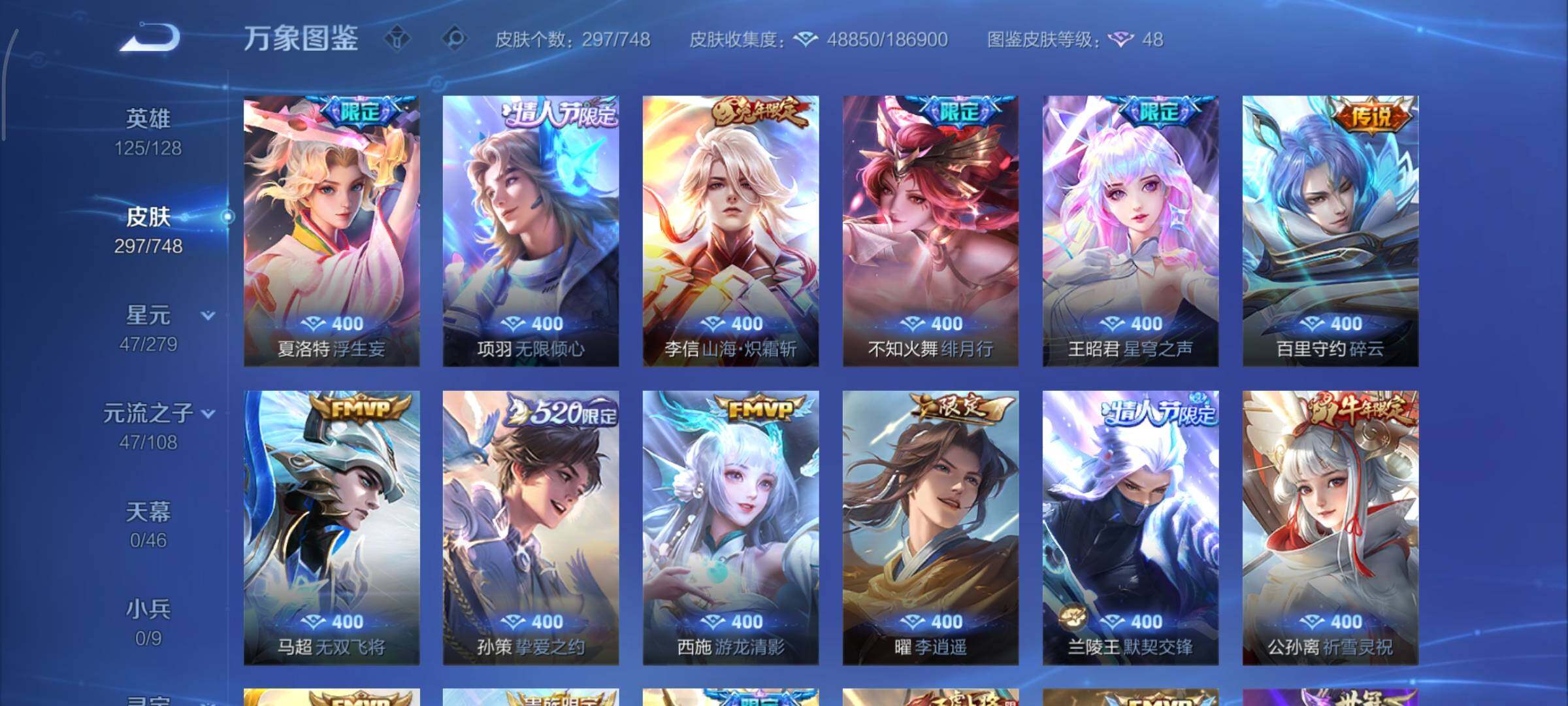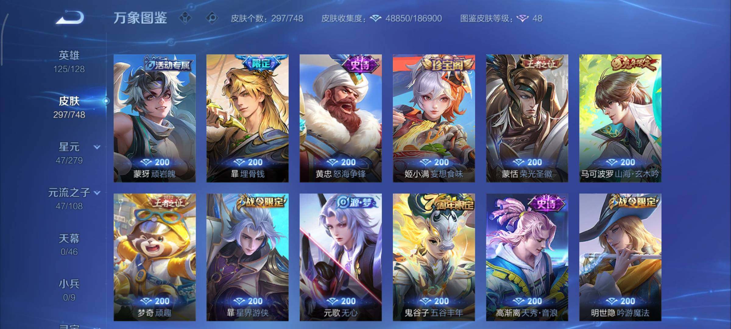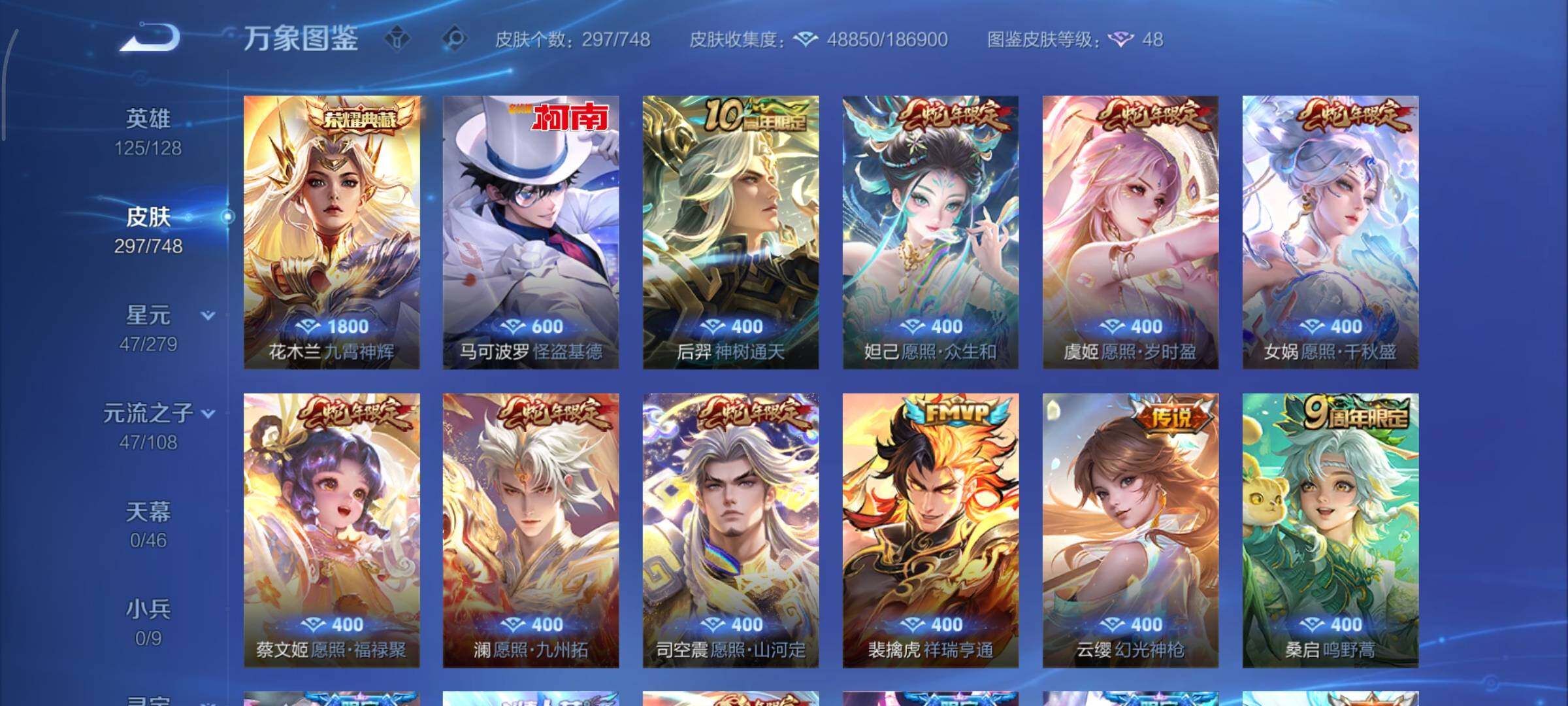 可换绑【V8精品号 花木兰典藏 怪盗基德 生肖限定13个 李逍遥 祈雪灵祝 浮生妄 白虎志 凤求凰 神威 多传说限定质量号】 18按键,2星传说,12王者印记,五级铭文290,可二次KK6871,安卓Q-V8-297皮肤-1典藏皮肤-1珍品传说-35传说-91史诗【英雄全皮】:孙权全皮,鬼谷子全皮,李信全皮,蒙恬全皮,夏洛特全皮,少司缘全皮【荣耀典藏】:花木兰九霄