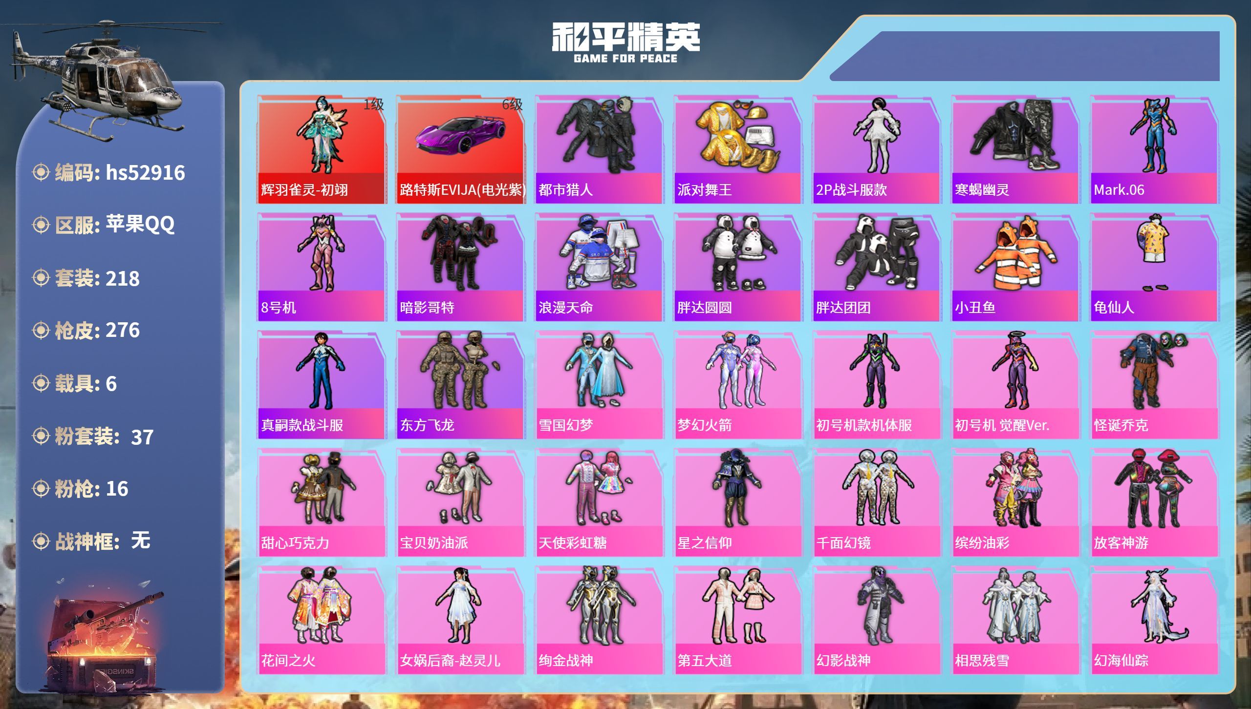 a4185/苹果v/精品身法号/-12王牌印记-2红装-50粉装-41特效枪-6载具-151126
