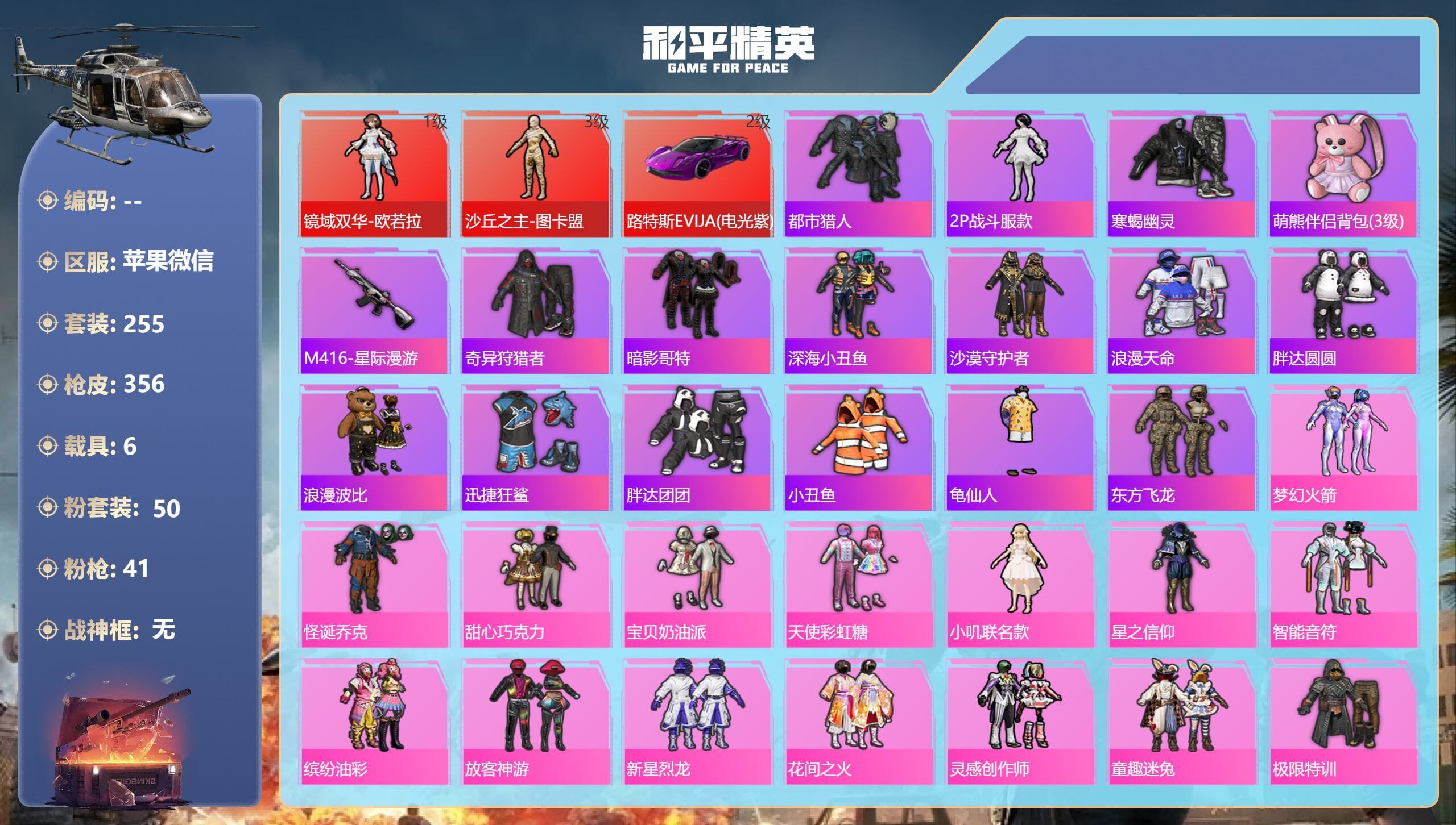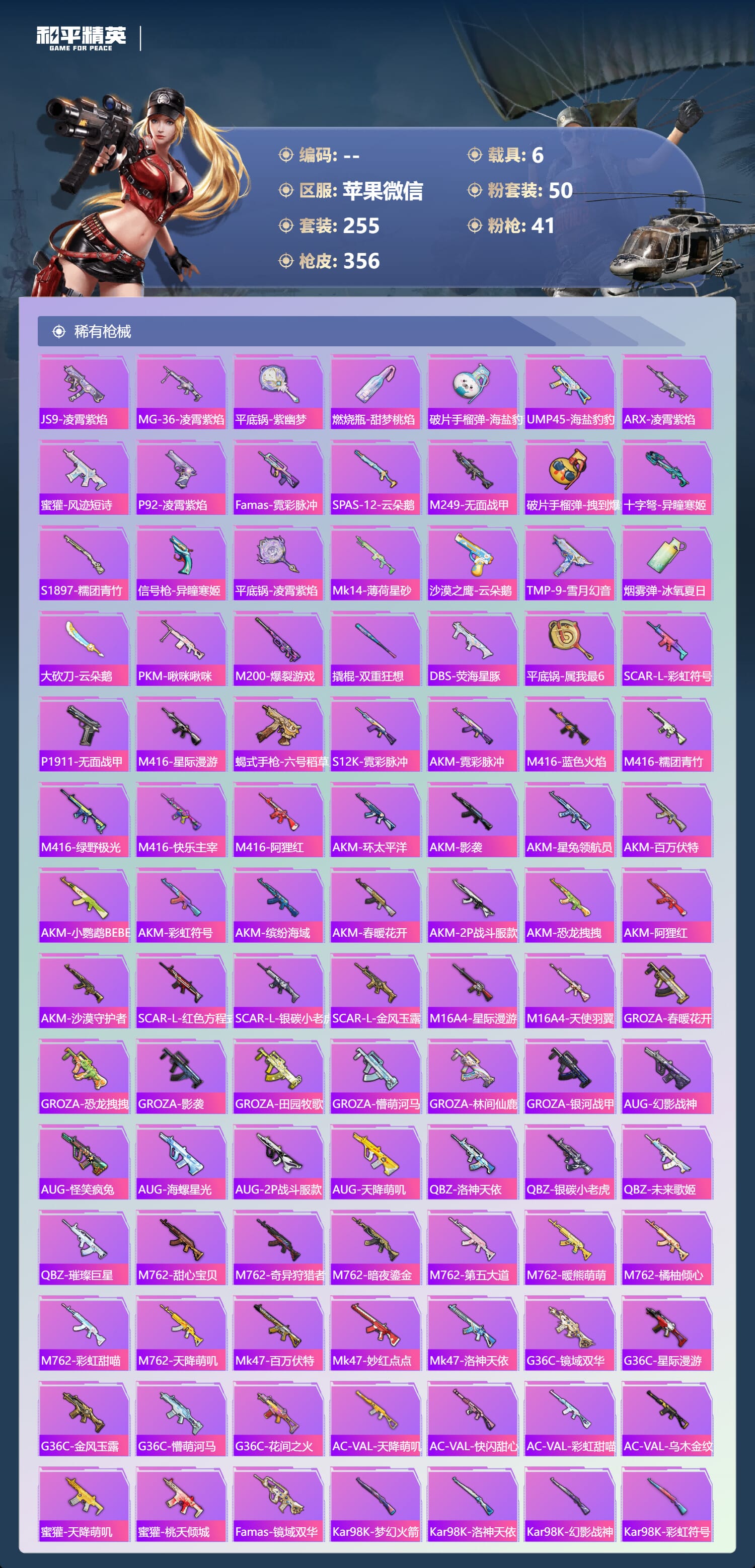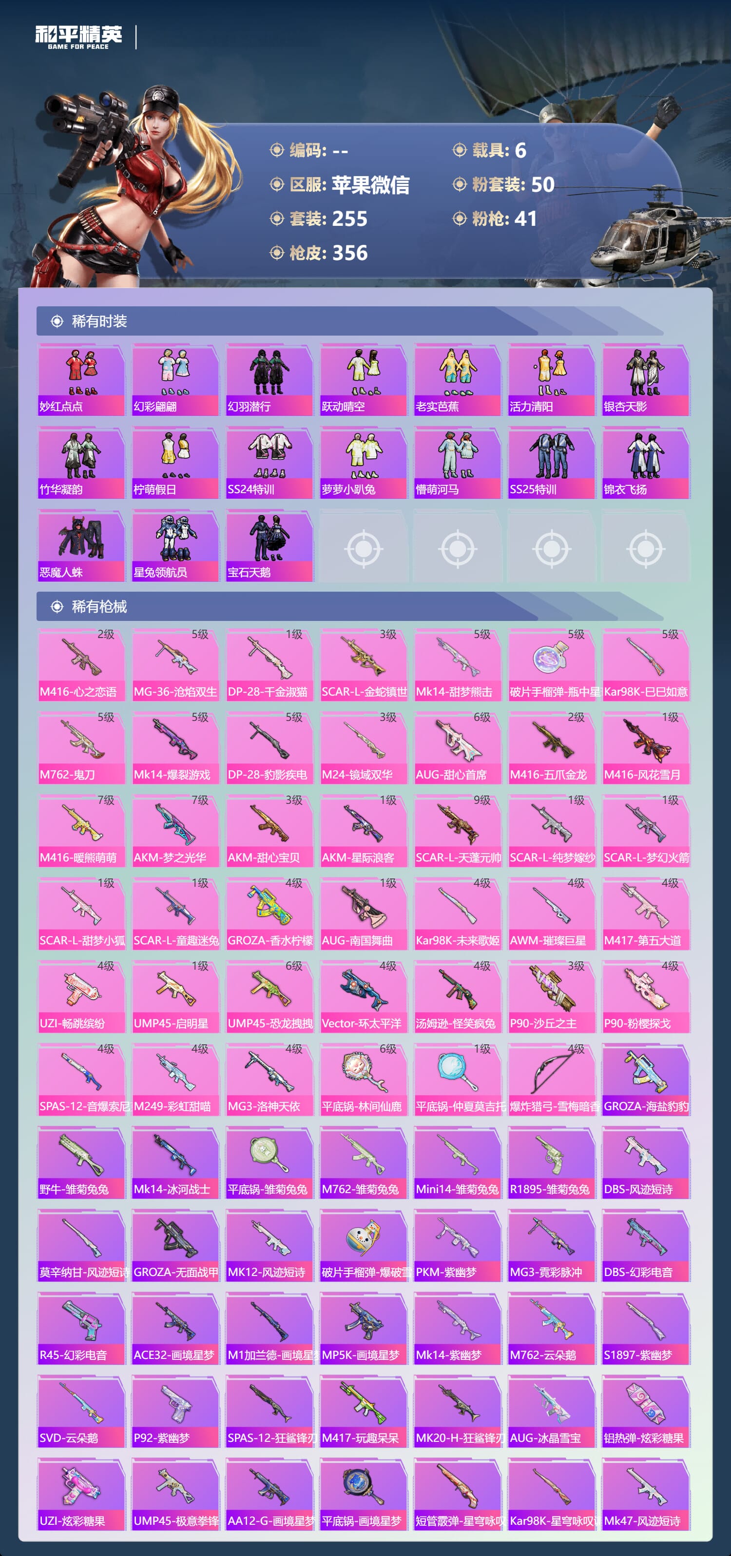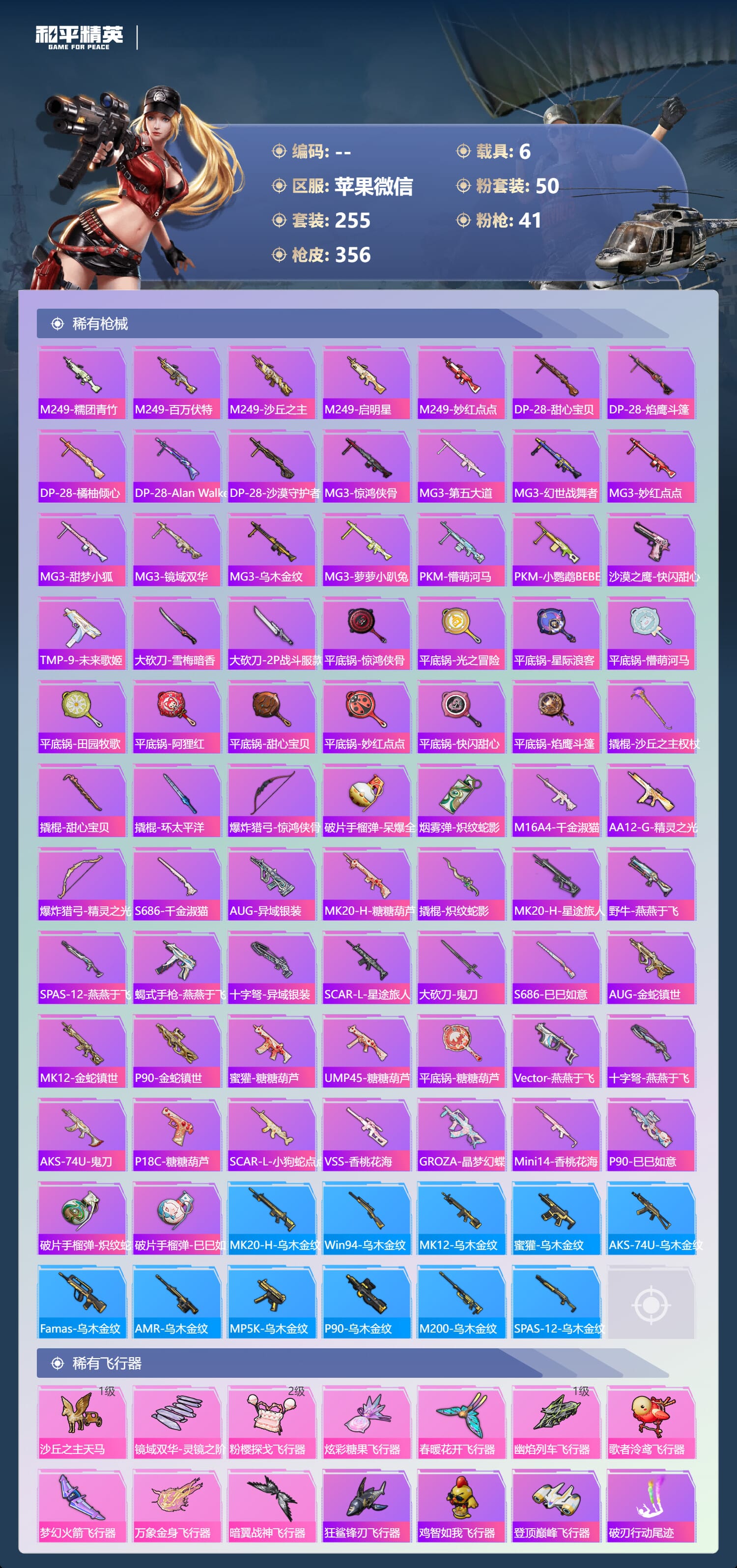 a4185/苹果微/精品身法号/-12王牌印记-2红装-50粉装-41特效枪-6载具-151126
