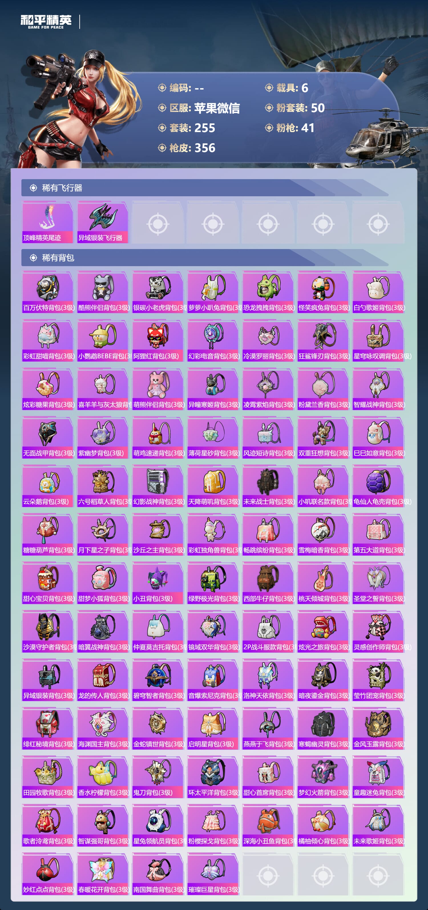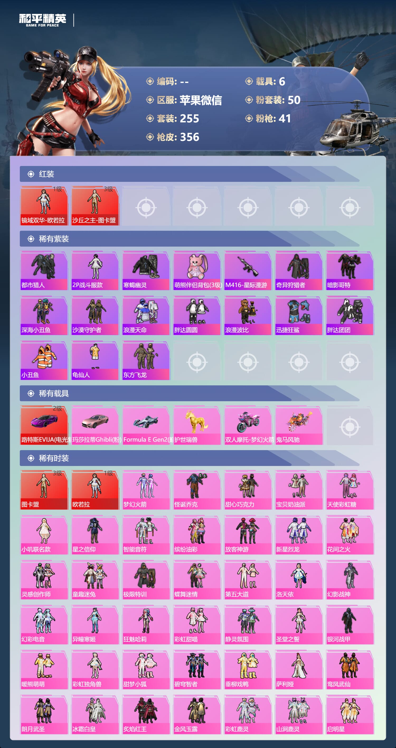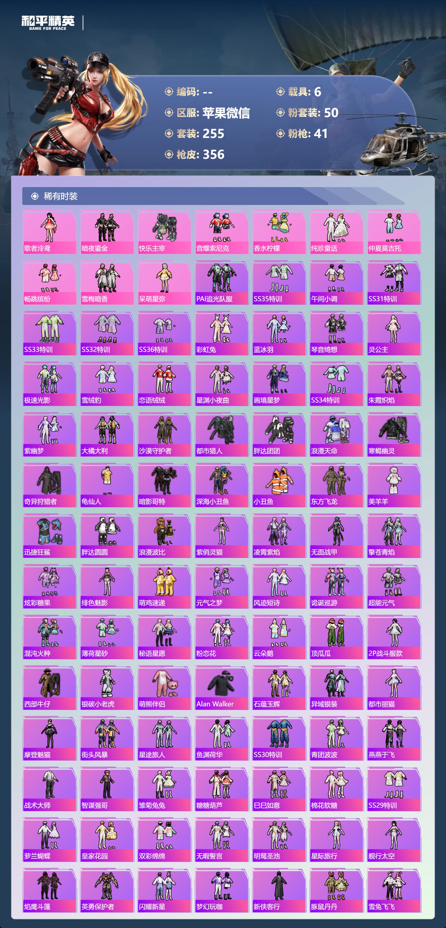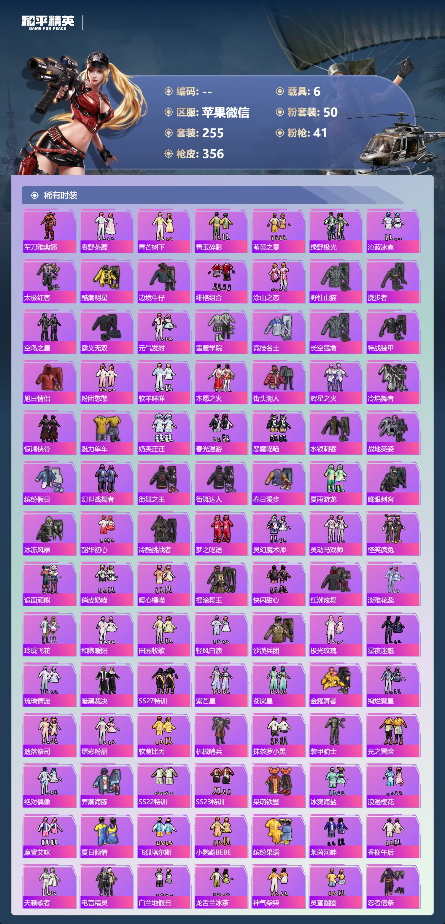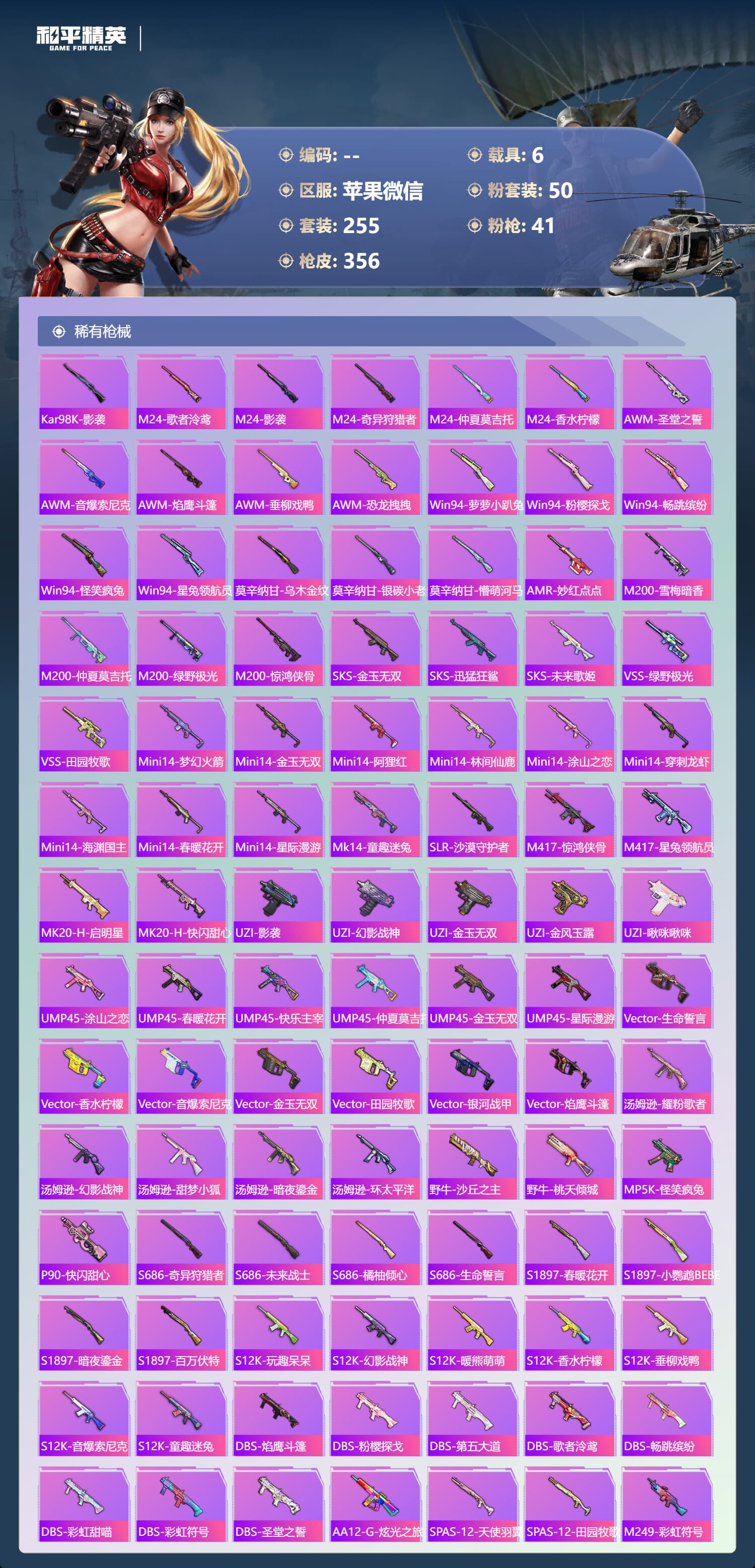 a4185/苹果微/精品身法号/-12王牌印记-2红装-50粉装-41特效枪-6载具-151126