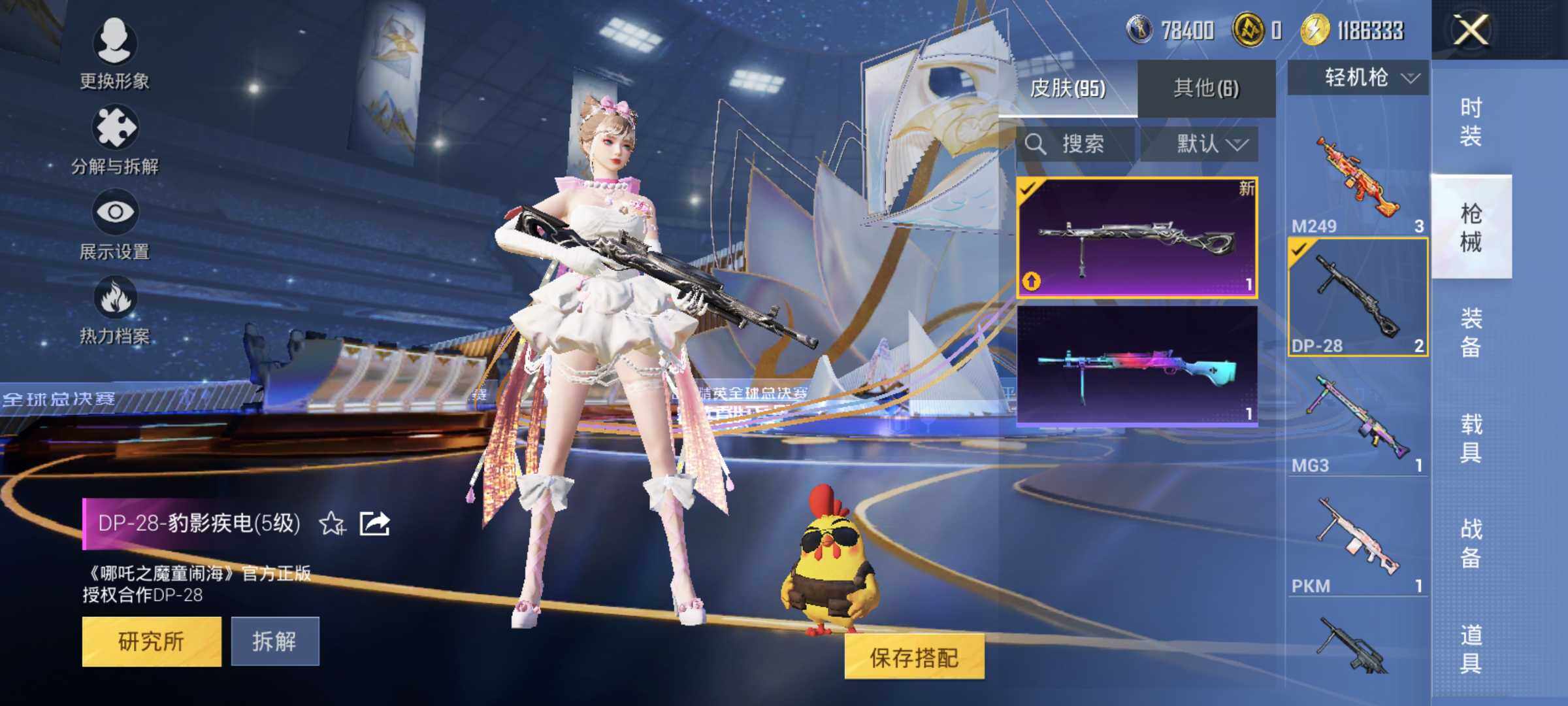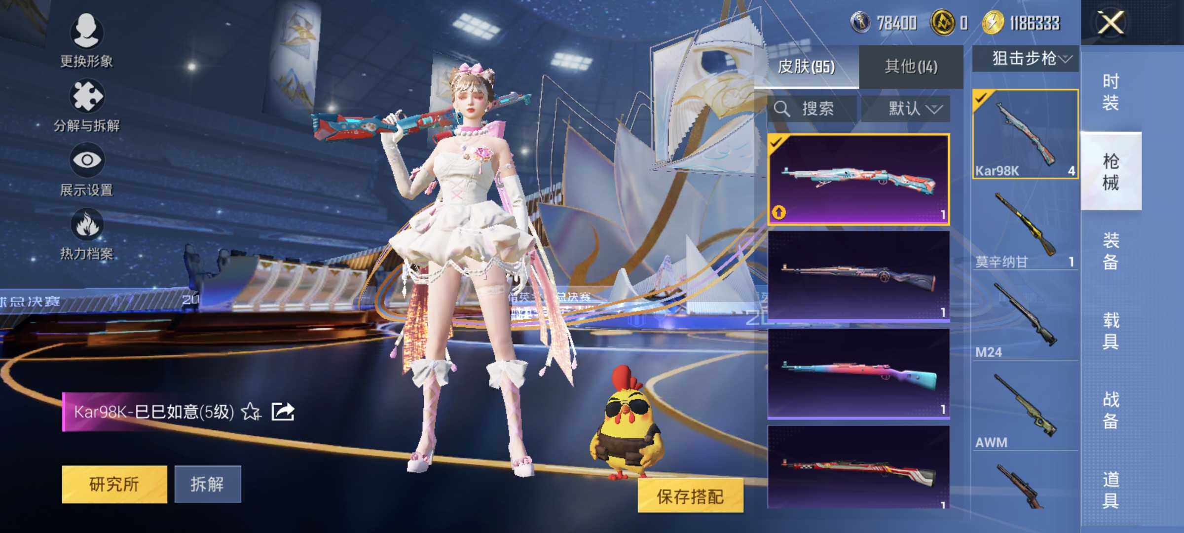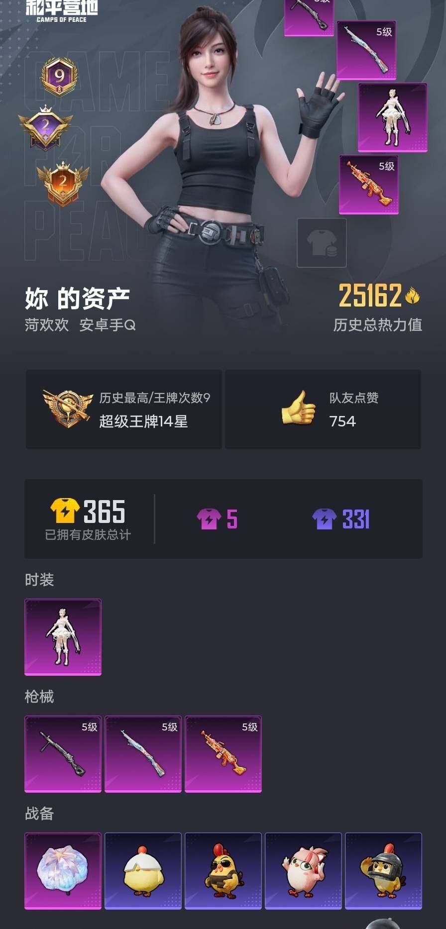 83套装/枪械3/装备101/战备87/王牌印记9/热力值25162/五级Kar98K-巳巳如意/五级M249-猪猪侠/五级DP-28-豹影疾电/套装-龟仙人/角色-千金淑猫/Kar98K-巳巳如意/M249-猪猪侠/DP-28-豹影疾电/荧海星豚降落伞/龟仙人/绒宝小鹅/巳巳如意/套装-小鸟芋圆/套装-超能元气/套装-蓝海鲸歌/AKM-霓虹街区/SCAR-L-玉兔迎春/M416-糯团青竹/AU